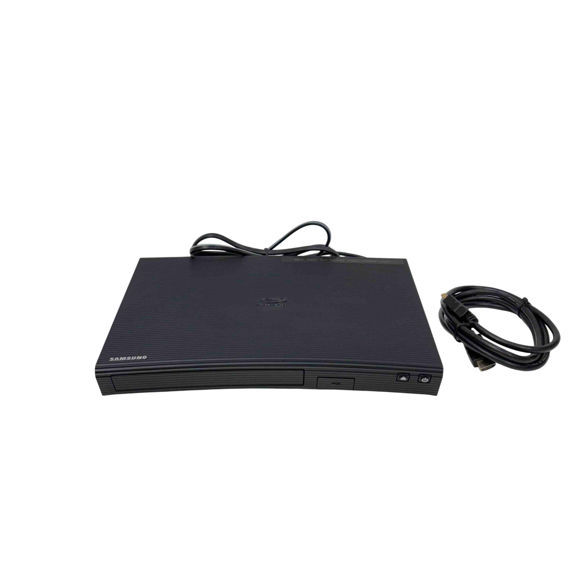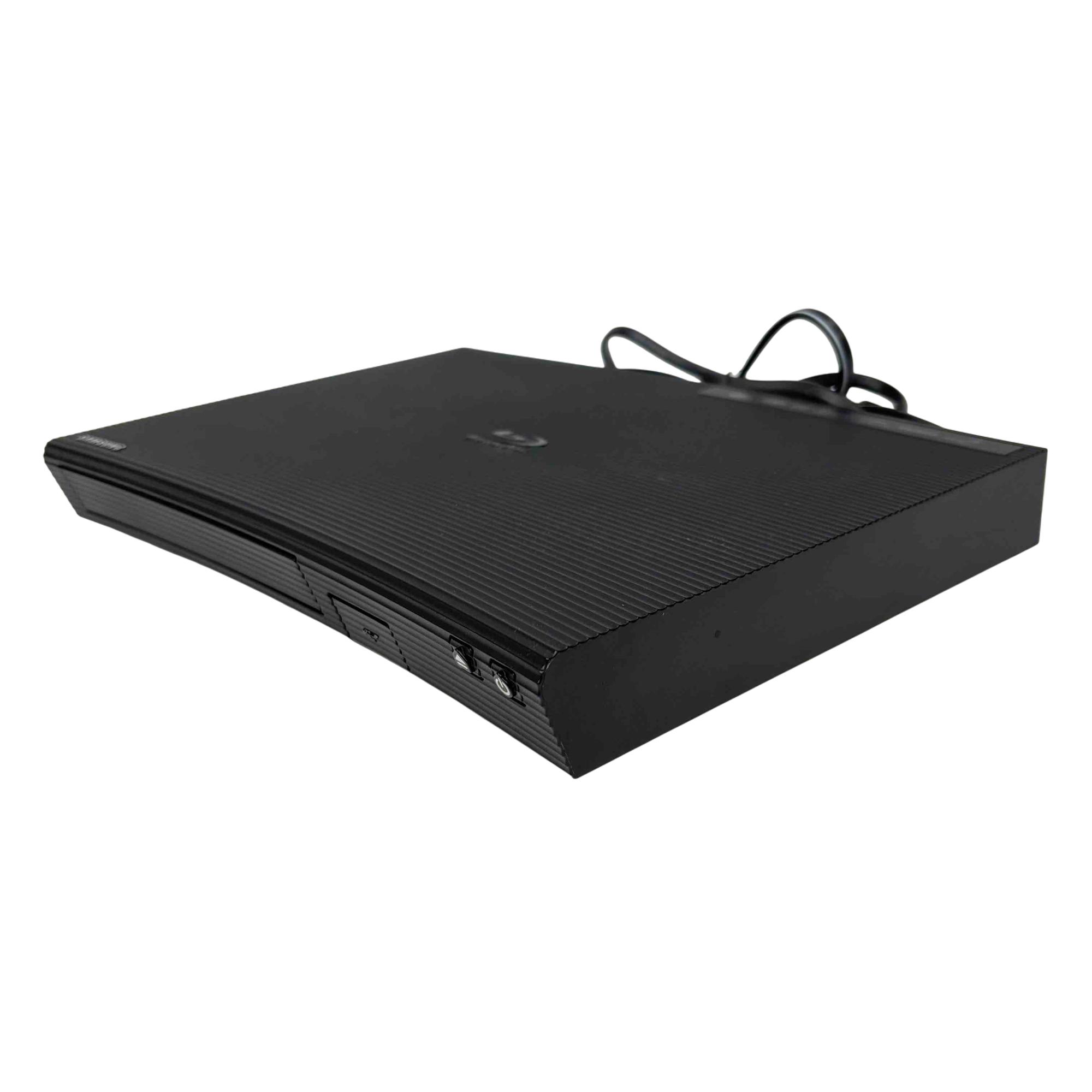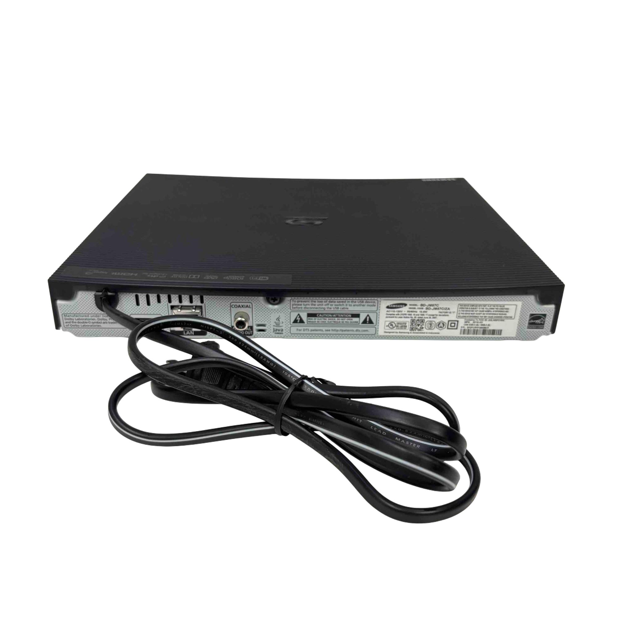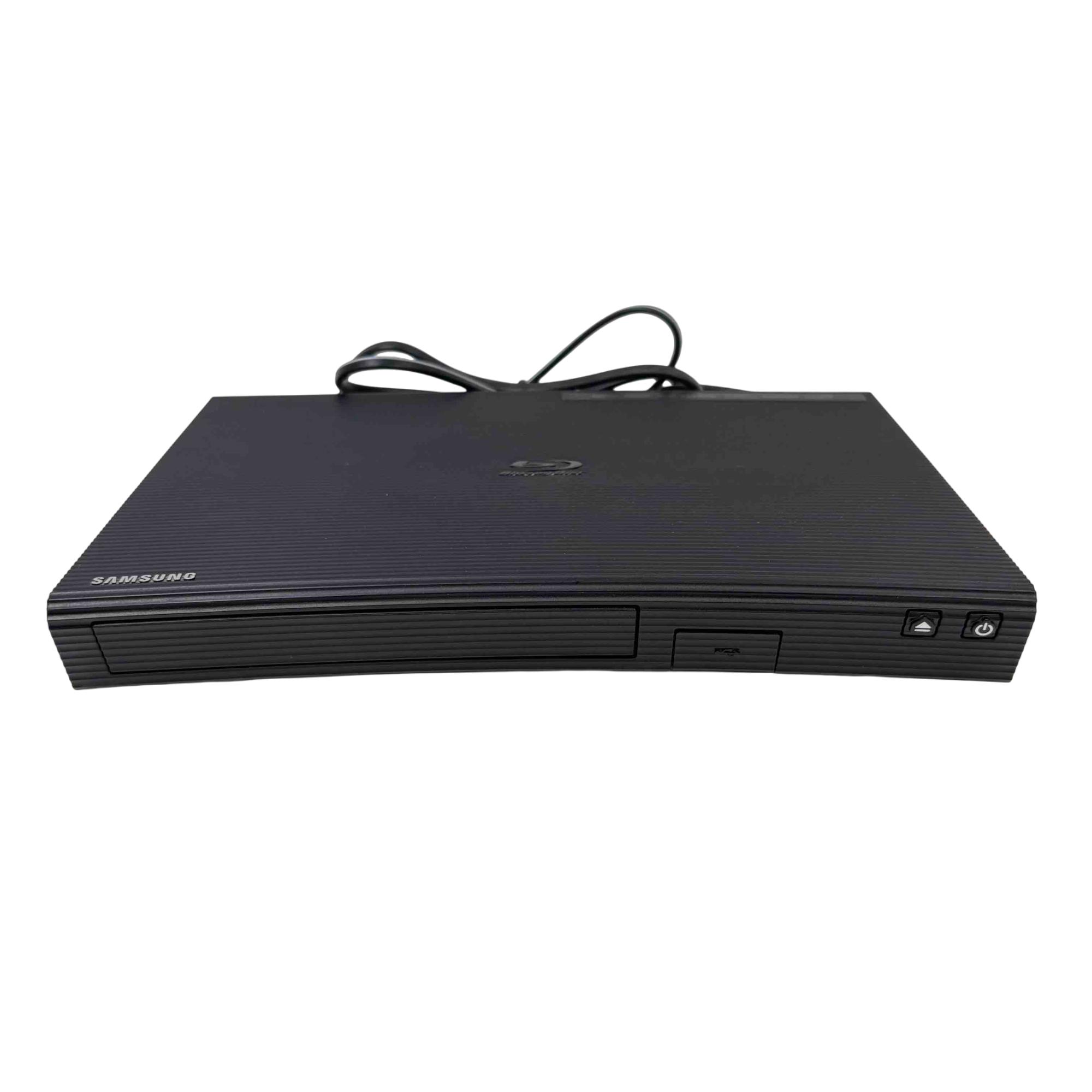 Experience high-quality entertainment with the Samsung BD-JM57C Blu-ray & DVD Player, featuring built-in Wi-Fi for seamless streaming of your favorite content. This sleek, black device supports both Blu-ray and DVD formats, ensuring compatibility with a wide range of discs. The compact design and included controller make it a perfect addition to any home theater setup.