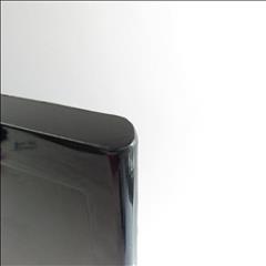 Slim design with high-gloss black finish and innovative T-shaped stand