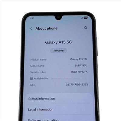The Samsung Galaxy A15 5G SM-A156U offers reliable performance with 128GB of storage and a 6.5-inch LCD display. Running on Android, it provides smooth connectivity with 5G support and is designed for use on Metro by T-Mobile.