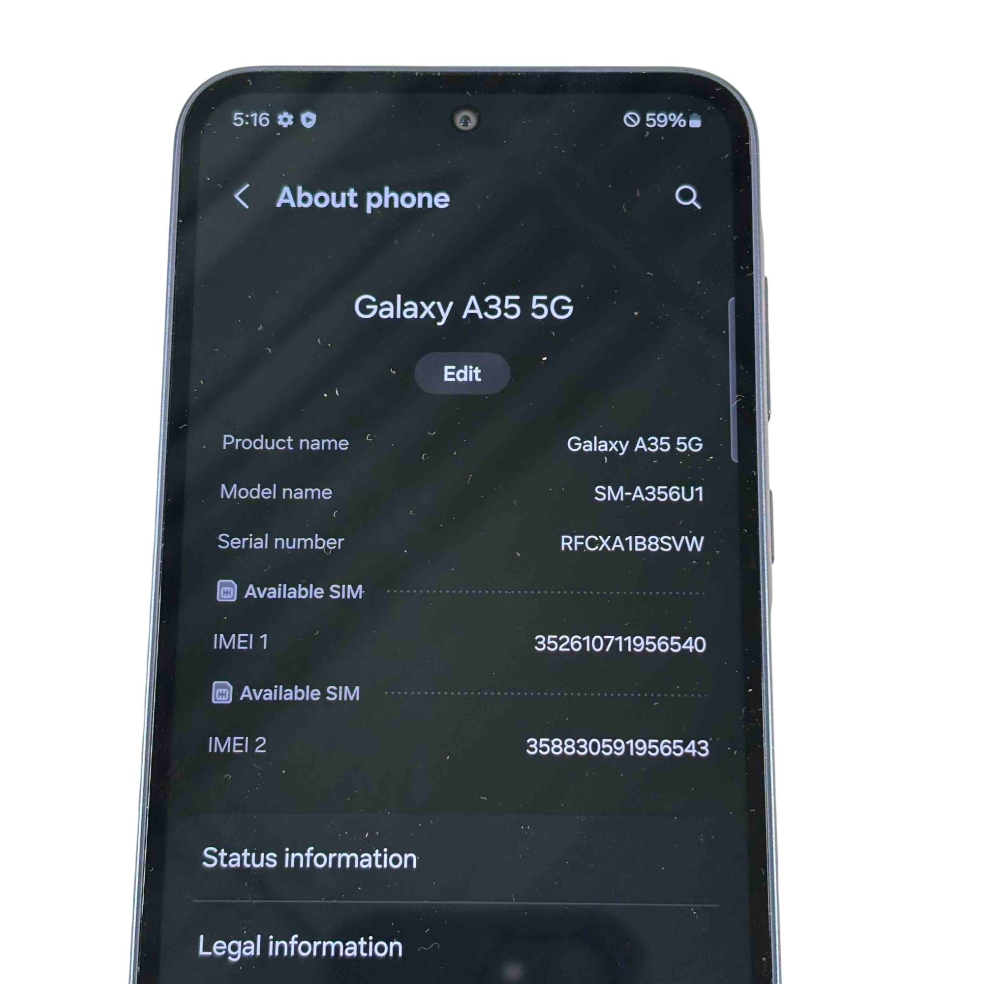 Model: Galaxy A35 5G SM-A356U1