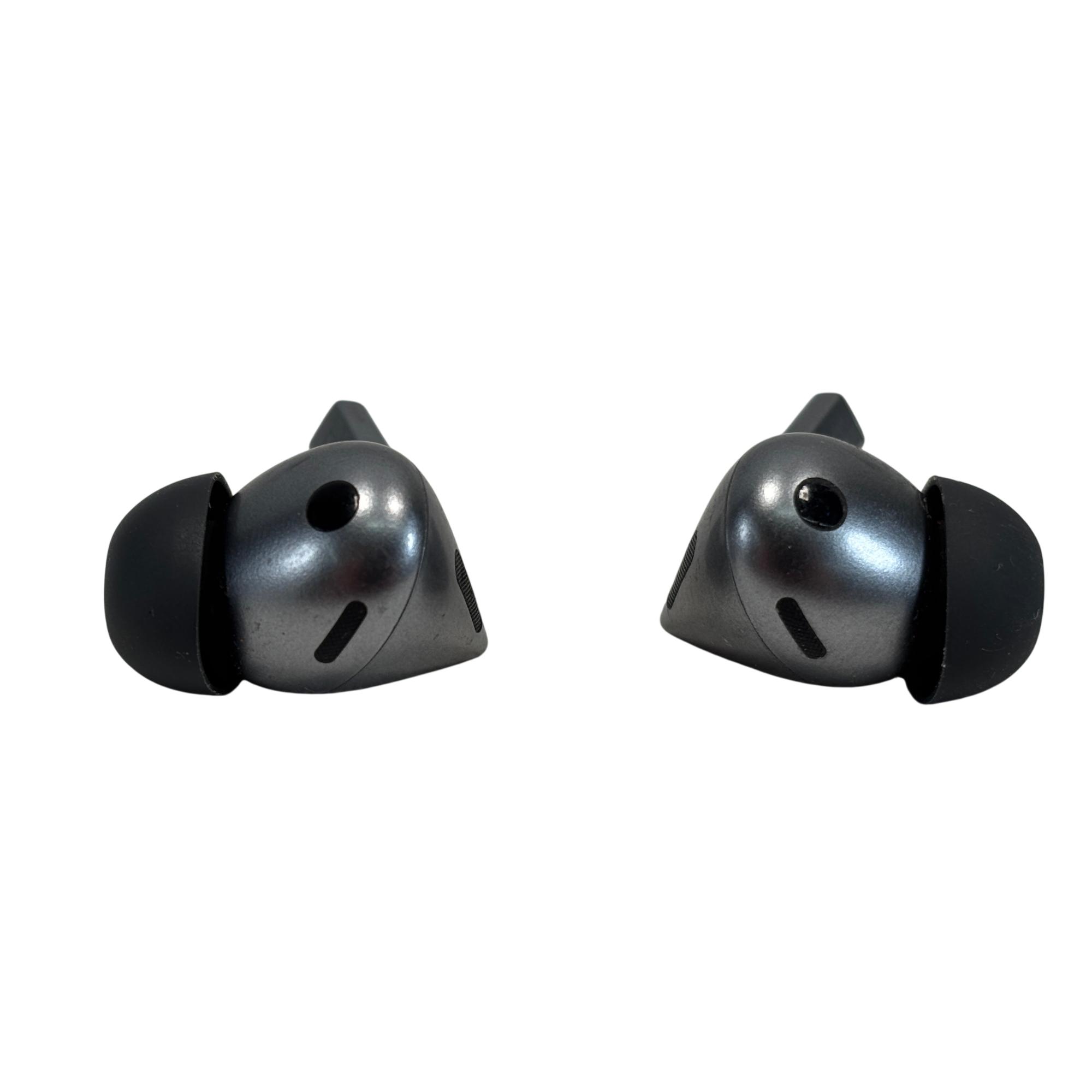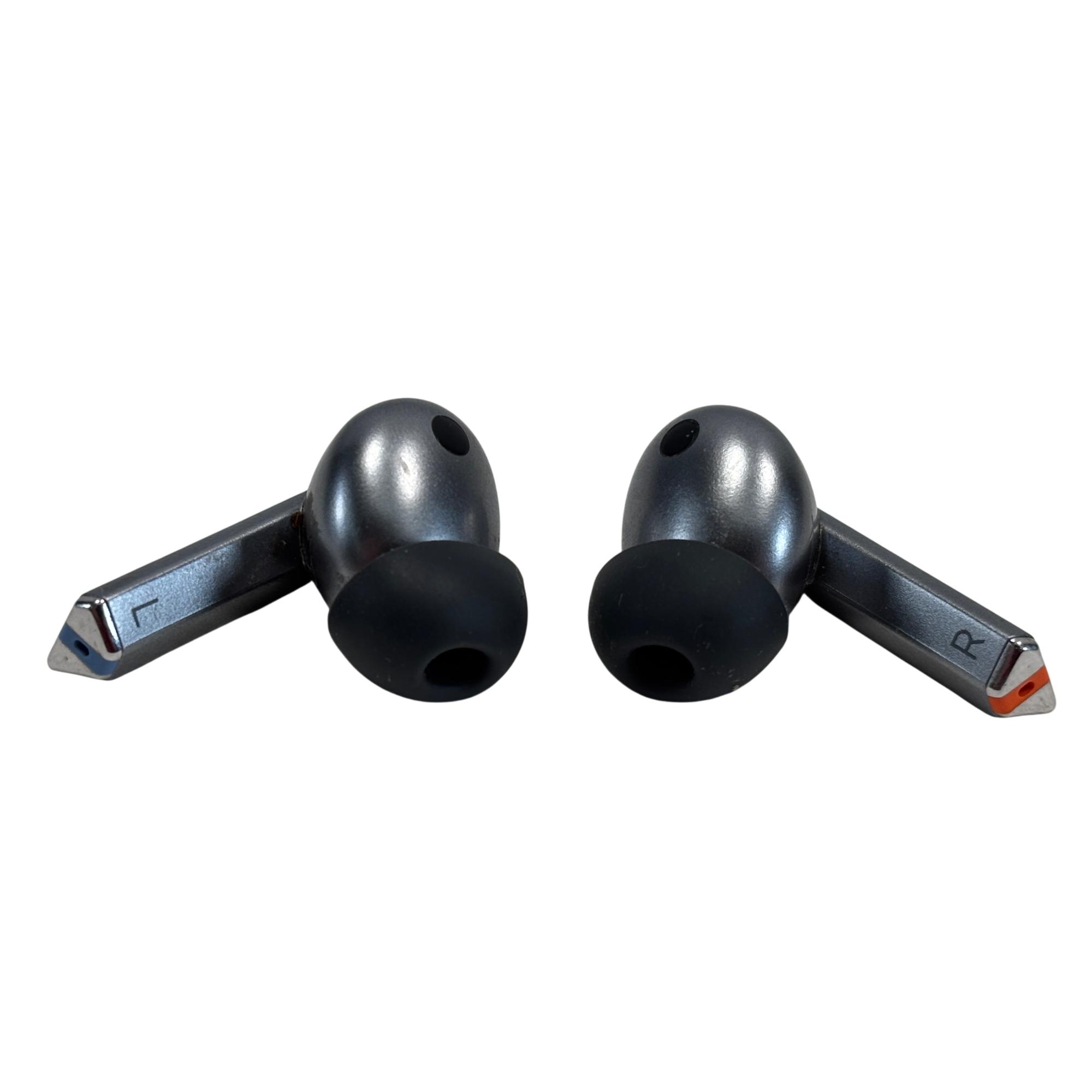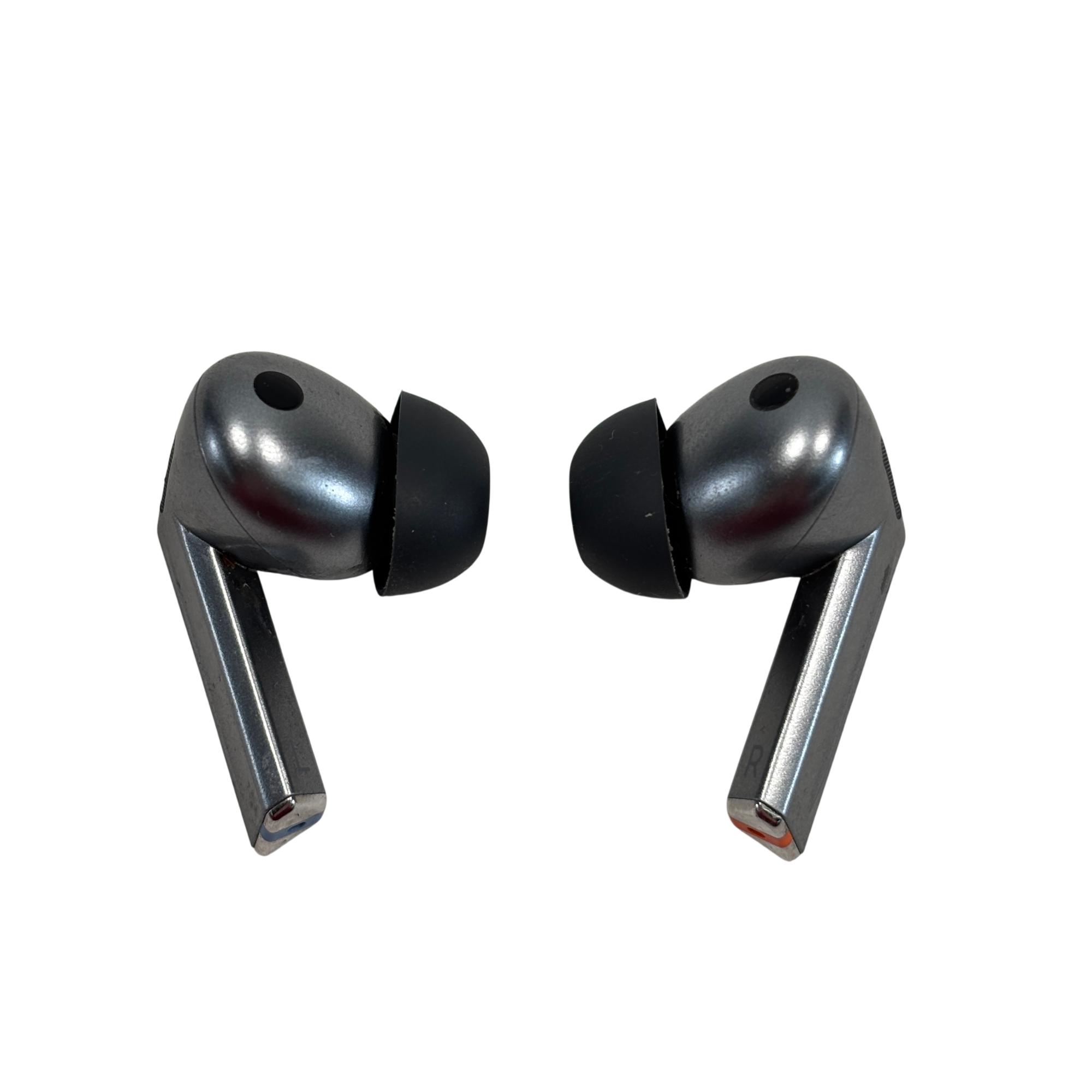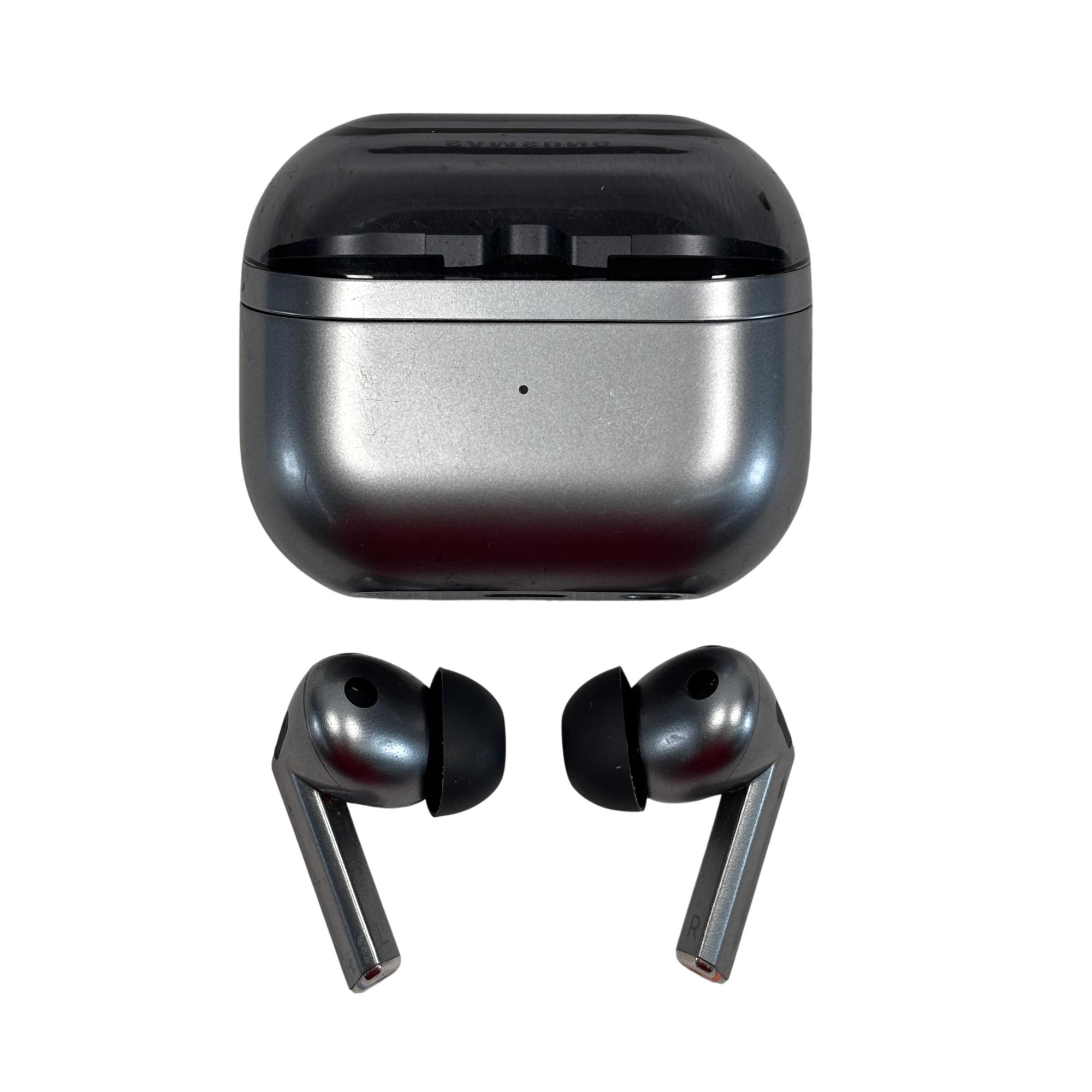 The Samsung Galaxy Buds3 Pro SM-R630 Silver Wireless Earbuds offer advanced active noise cancellation and a sleek, ergonomic design for a comfortable in-ear fit. These earbuds deliver high-quality sound with balanced bass and crisp treble, enhanced by a compact case available in silver and black finishes. Designed for seamless connectivity, they provide an immersive audio experience suitable for various indoor and outdoor environments.