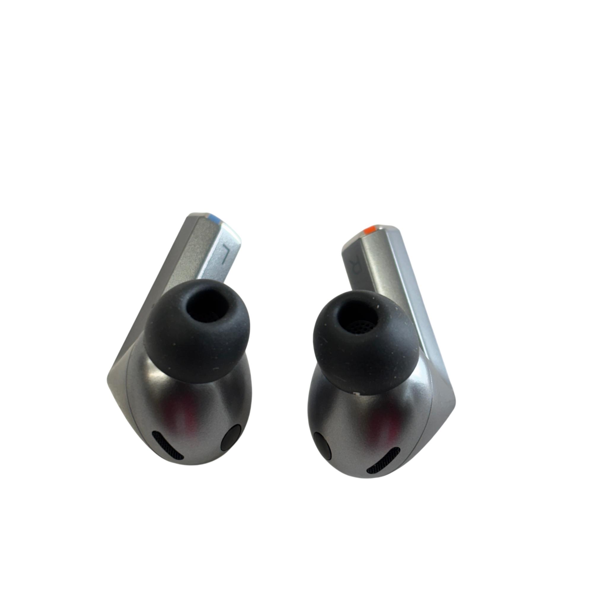 Samsung Galaxy Buds3 Pro (2024, Silver) Wireless Noise Cancelling Earbuds deliver immersive sound quality with advanced active noise cancellation technology. These sleek earbuds feature a comfortable design and superior audio performance, making them ideal for seamless wireless listening experiences.