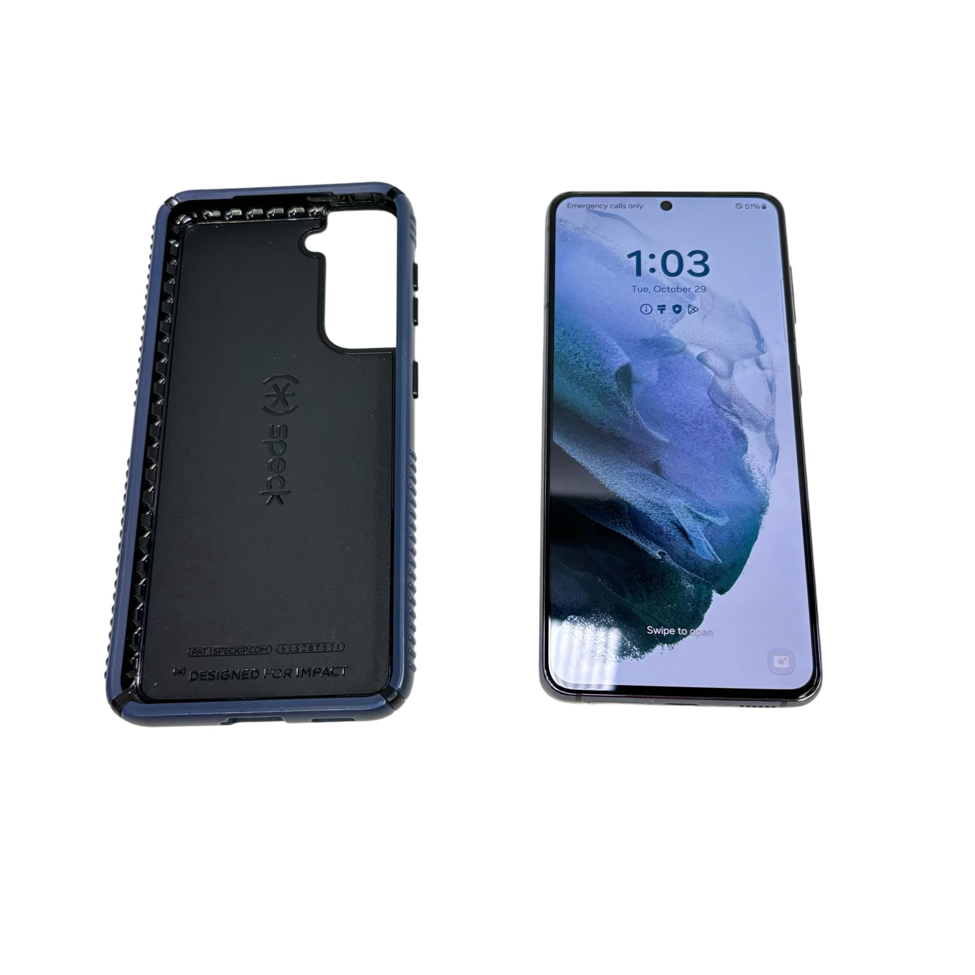 Experience the cutting-edge performance and sleek design of the Samsung Galaxy S21 5G. This smartphone features 128GB of storage, allowing you to store all your essential apps, photos, and videos with ease. The included blue case not only adds a touch of style but also provides robust protection for your device, ensuring it is safe from everyday bumps and drops. Perfect for those who demand both functionality and fashion, the Galaxy S21 5G is engineered for impact and ready to elevate your mobile experience.