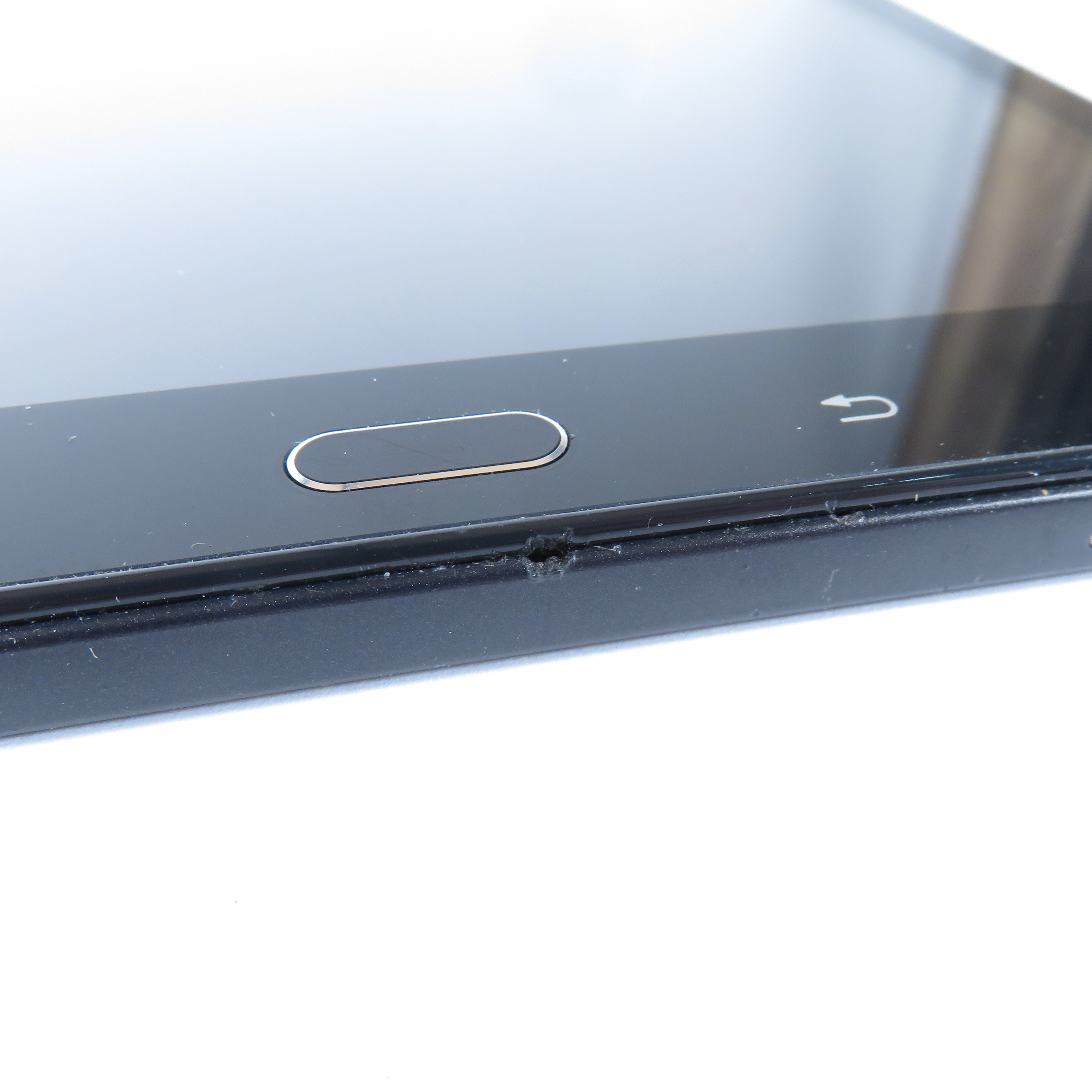 This tablet is previously owned and inspected fully. There are surface marks and wear on the body and screen from regular use. There is some plastic damage along the bottom edge. There is plastic damage on one side near the micro SD port. There are scratches on the back. Factory reset, works well. See images for details.