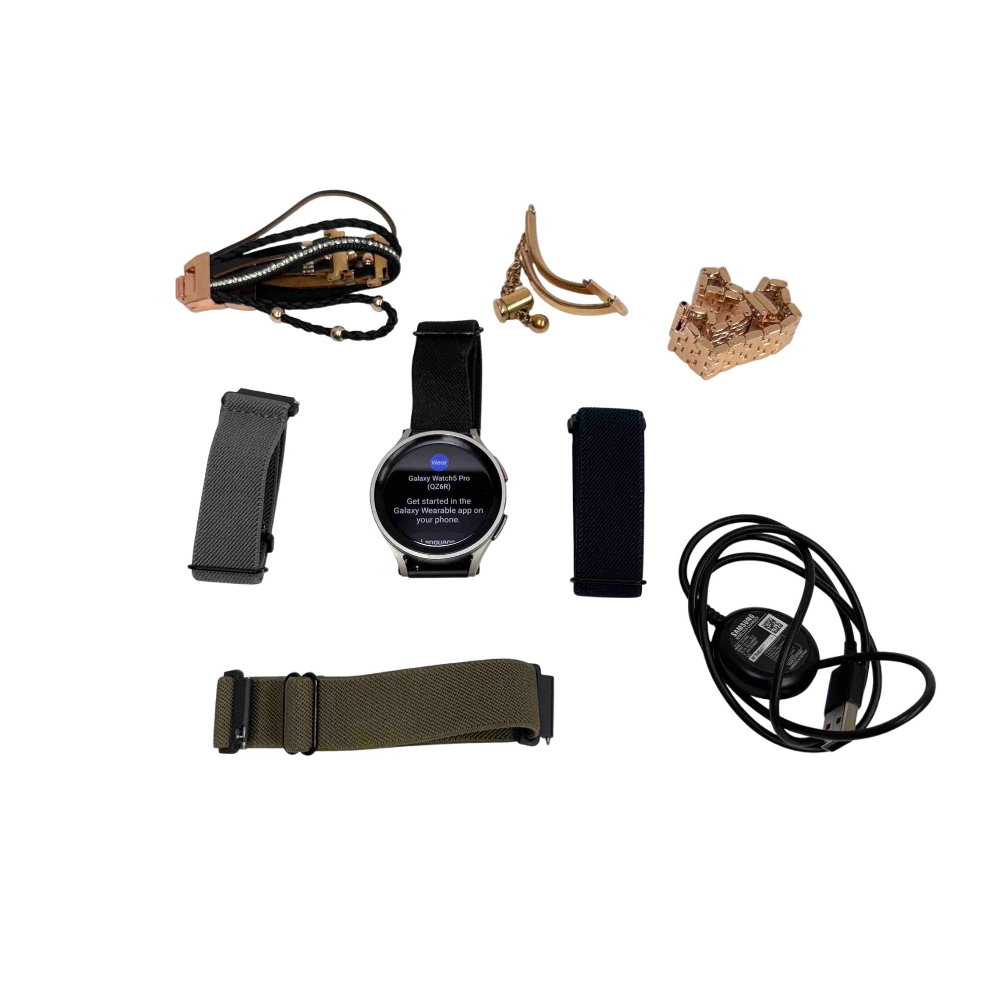 Elevate your lifestyle with the Samsung Galaxy Watch5 Pro SM-R920 Smartwatch. This sleek and sophisticated watch not only tells time but integrates seamlessly with your digital life, offering fitness tracking, notifications, and more. Included with extra wrist bands, its flexible for any style or occasion, making it a must-have accessory for tech-savvy individuals.