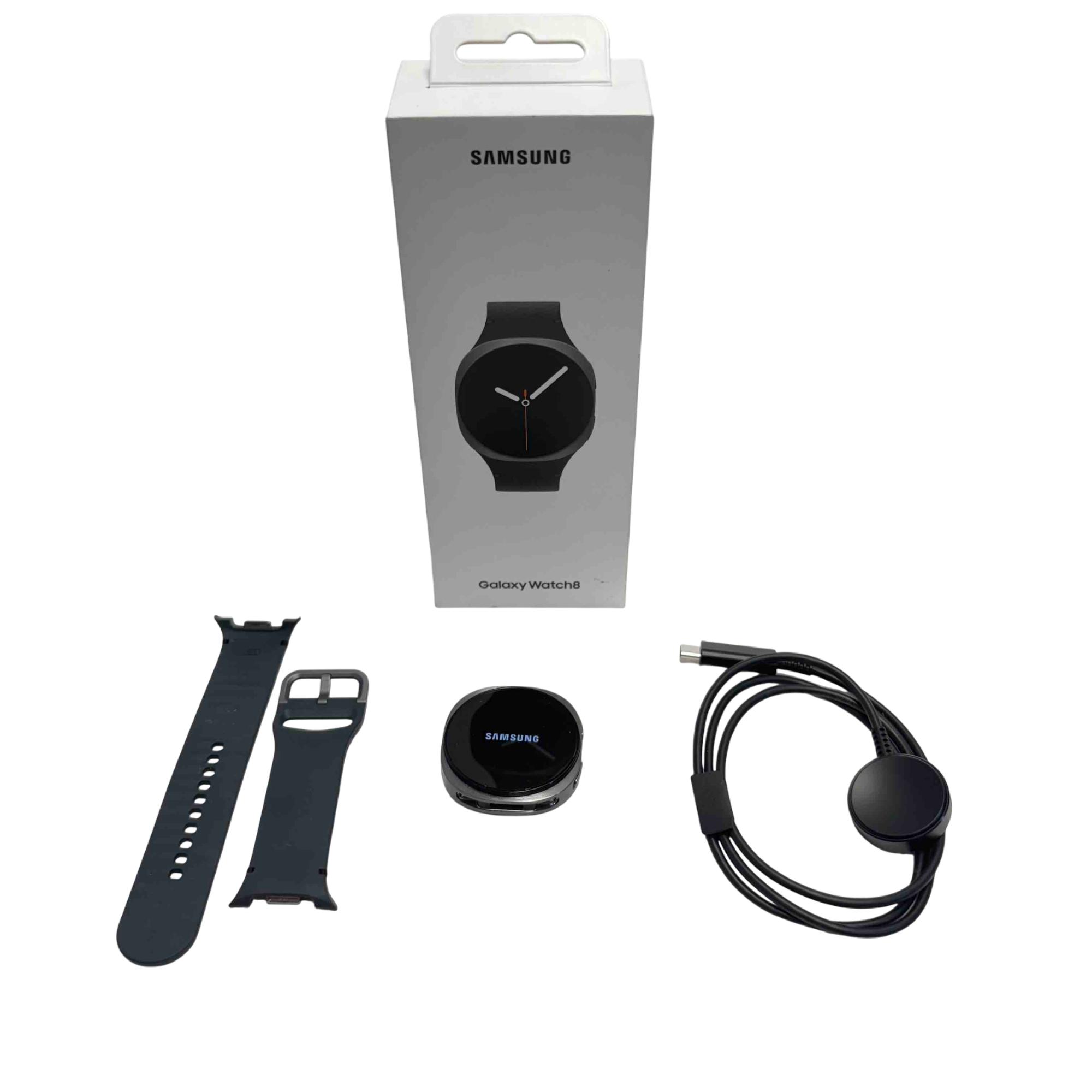 The Samsung Galaxy Watch 8 44mm Graphite Bluetooth Smartwatch features a sleek graphite aluminum case with a crisp AMOLED display and advanced health monitoring sensors. This smartwatch offers Bluetooth connectivity for seamless pairing with your Galaxy phone, delivering real-time notifications, fitness tracking, and customizable watch faces. Designed for durability and style, it combines cutting-edge technology with a comfortable black strap for all-day wear.