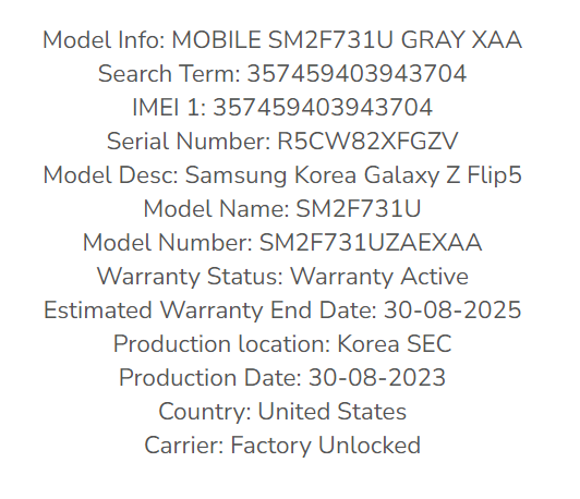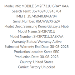 Model: Galaxy Z Flip5 SM-F731U1