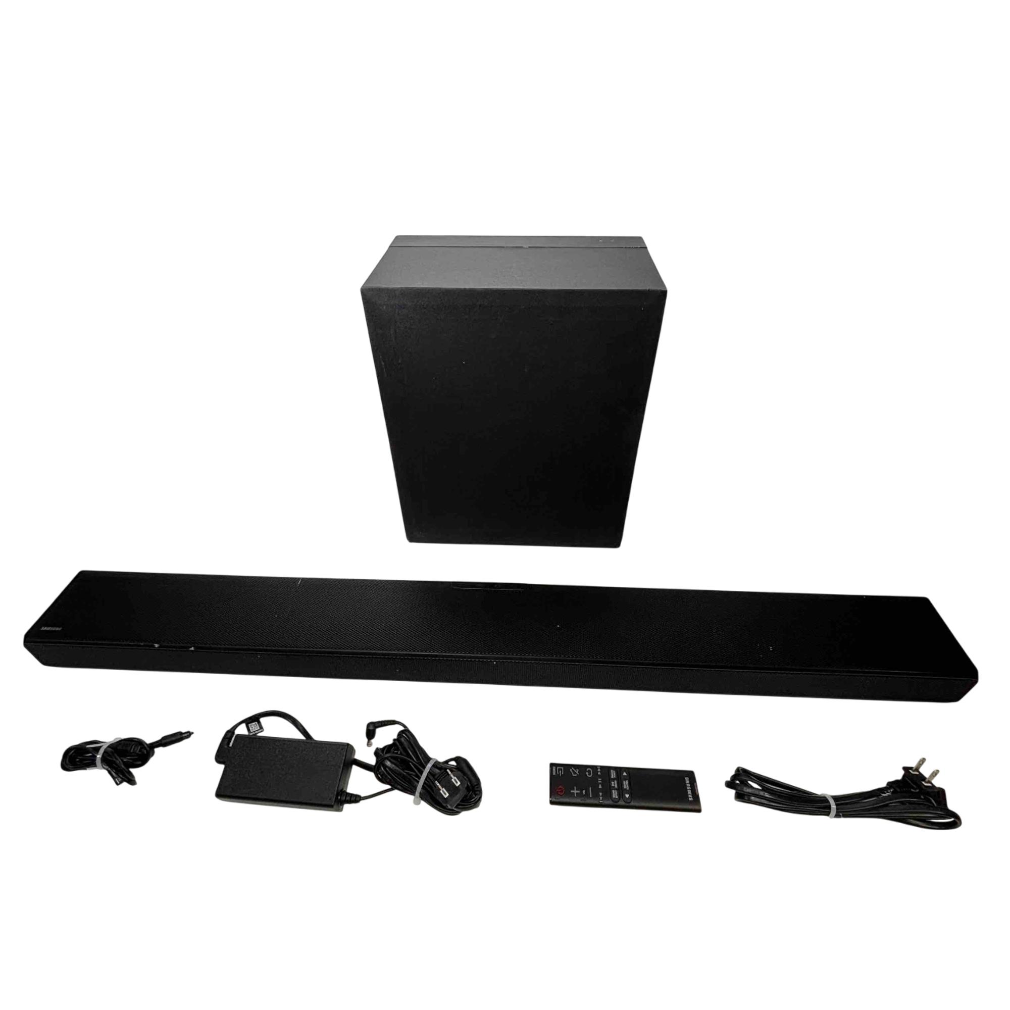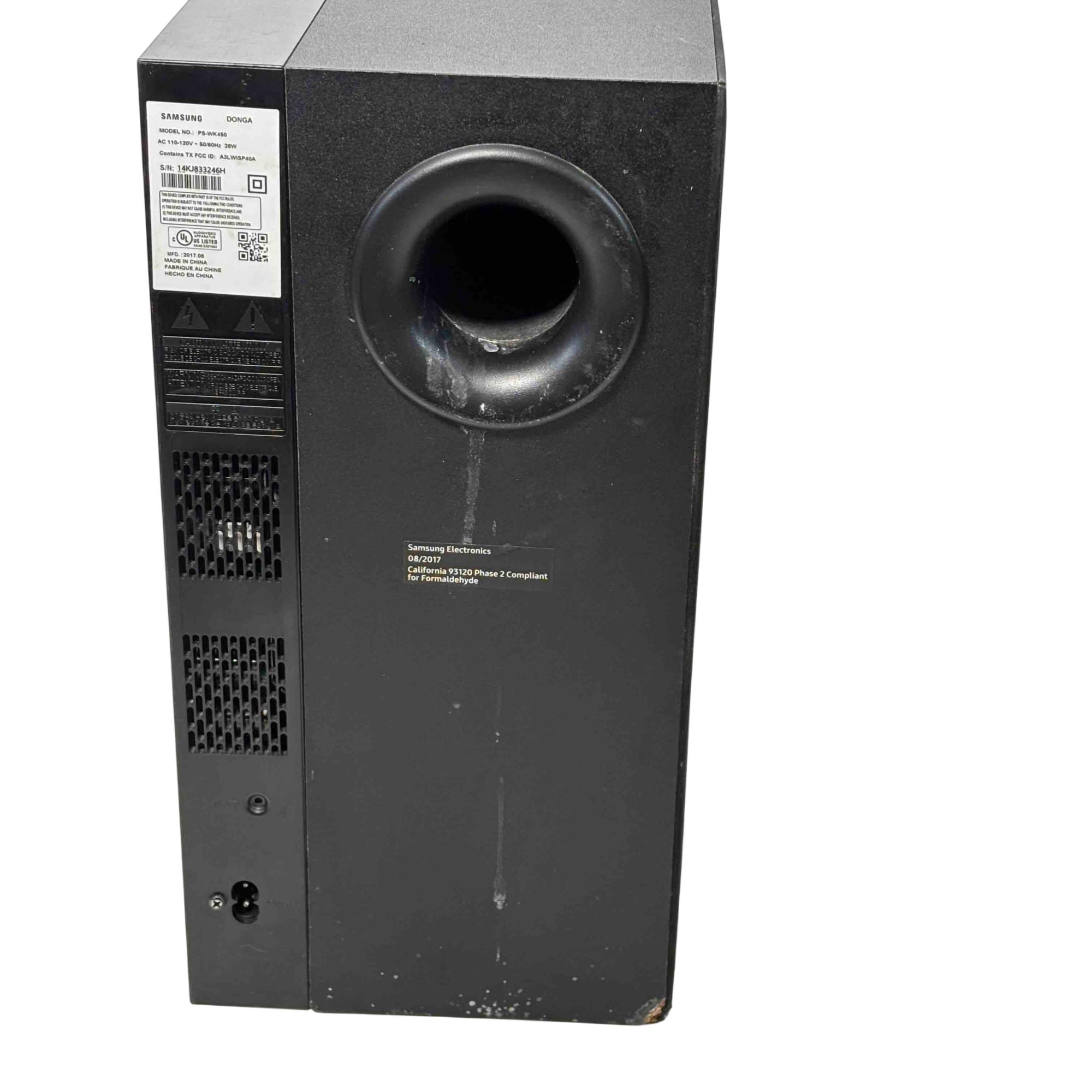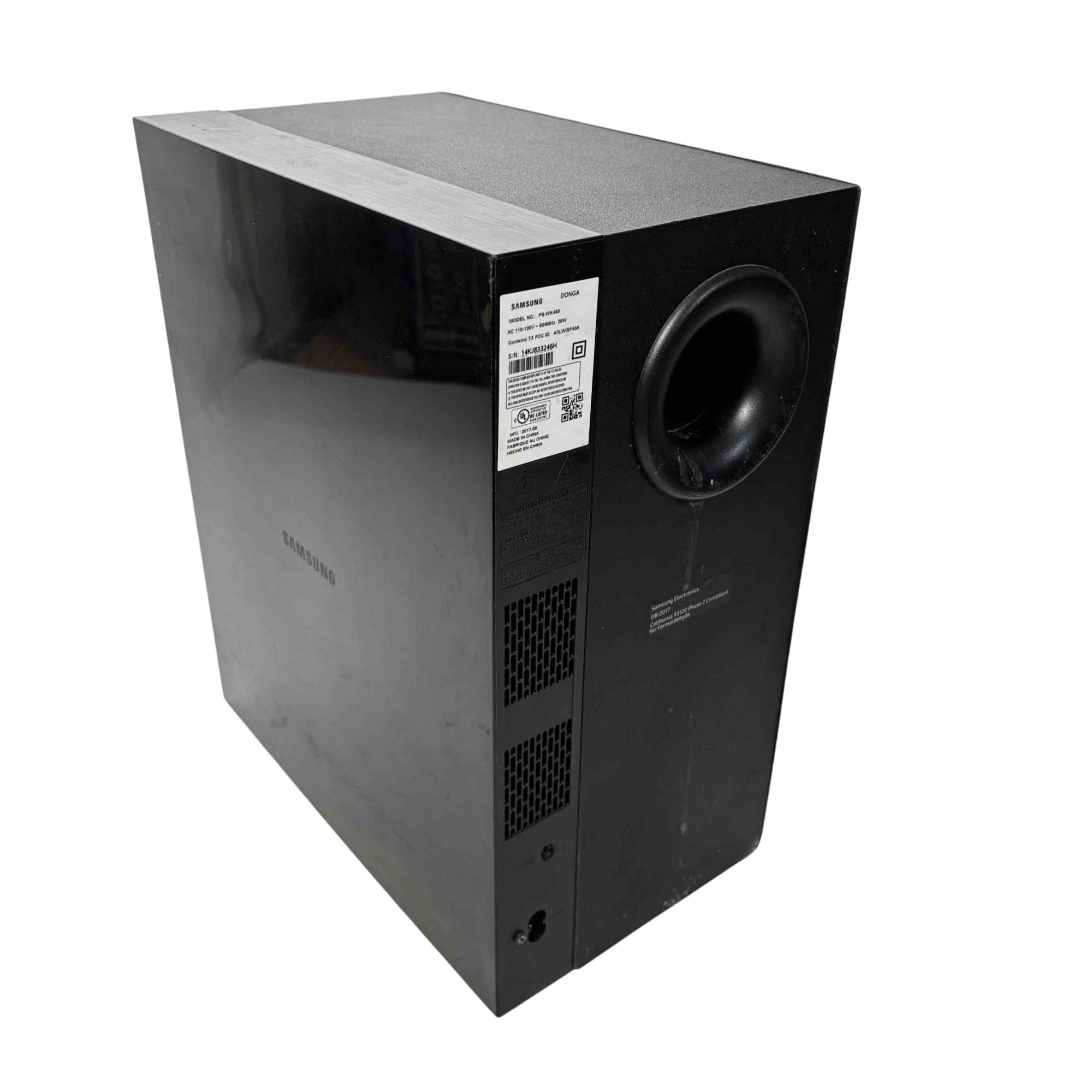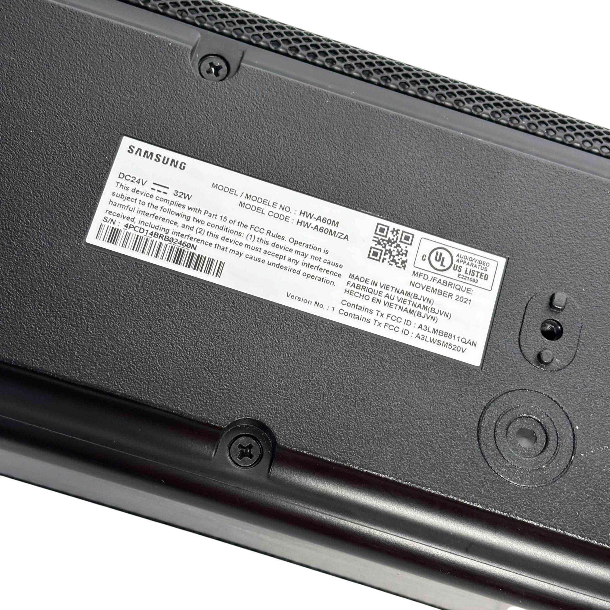 Elevate your audio experience with the Samsung HW-A60M Soundbar and wireless subwoofer. Featuring Dolby Audio, this sleek black soundbar delivers immersive sound, enhancing both movies and music with powerful bass and clear dialogue. Upgrade your home theater setup with this modern, stylish sound system.