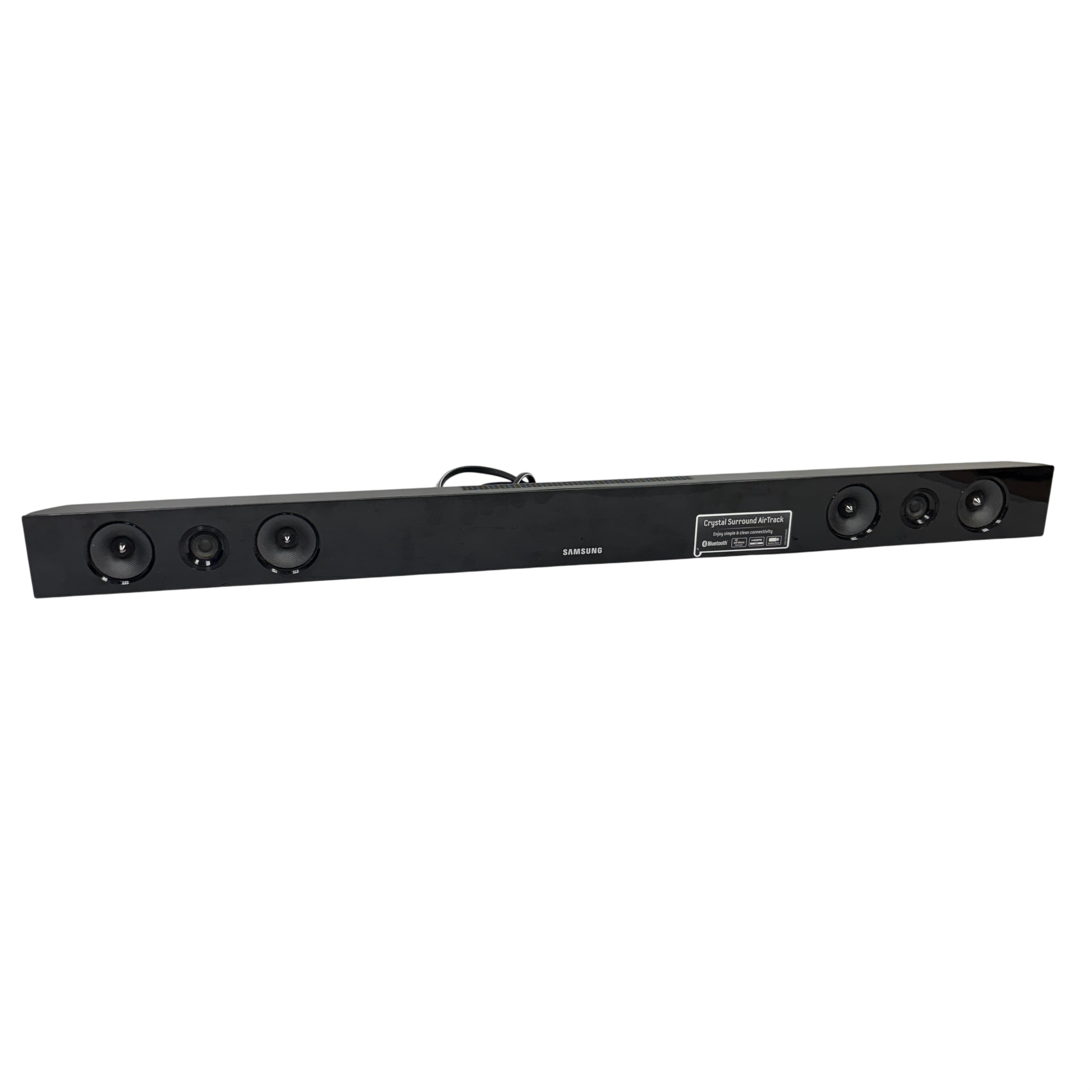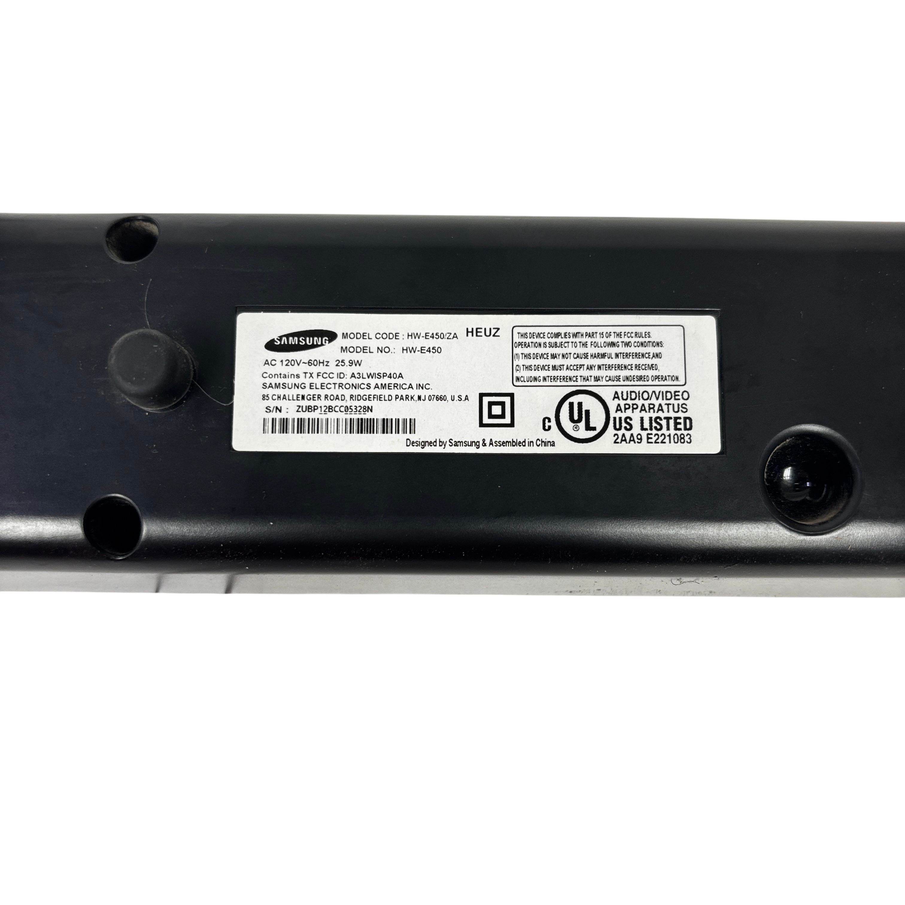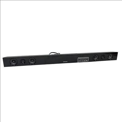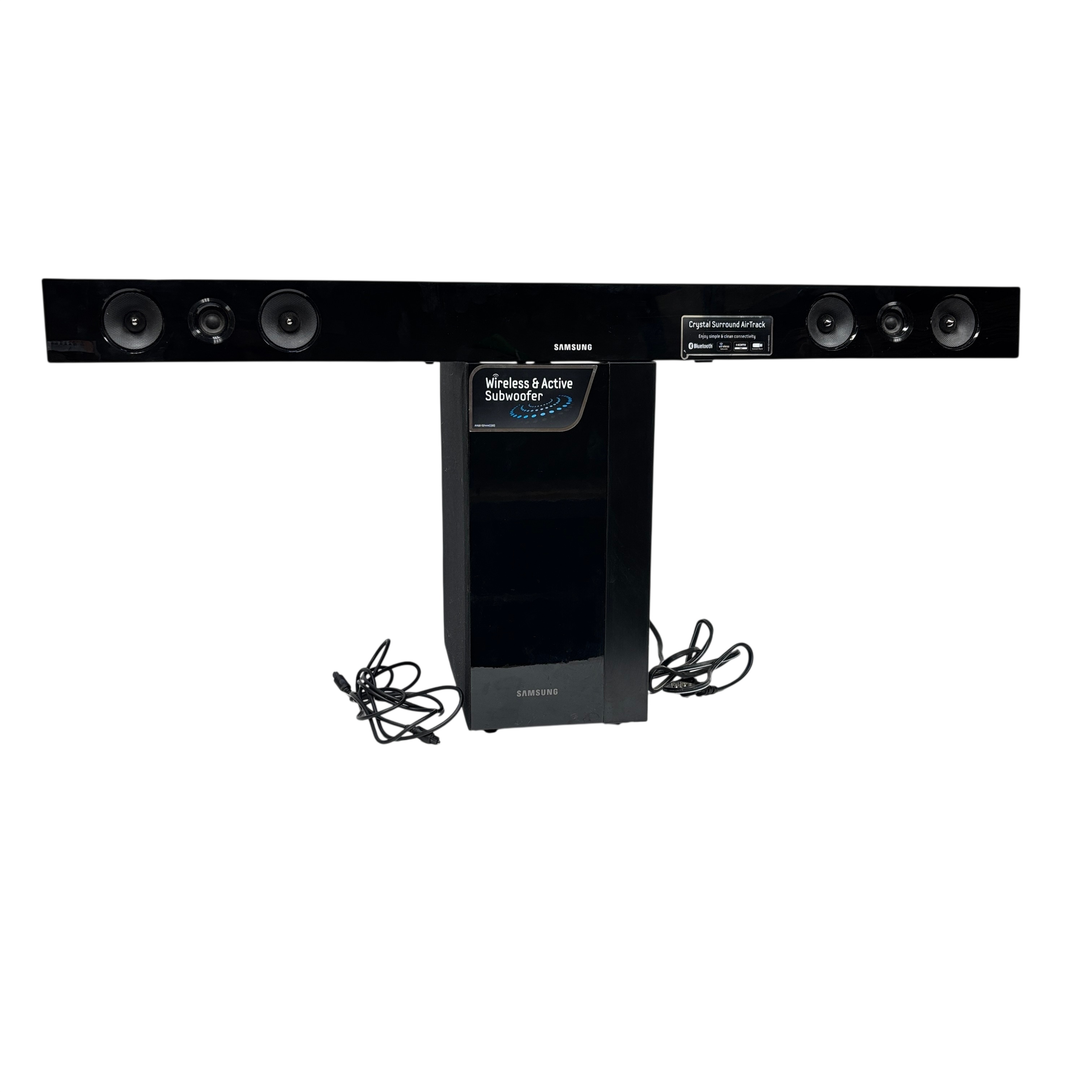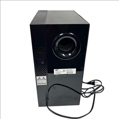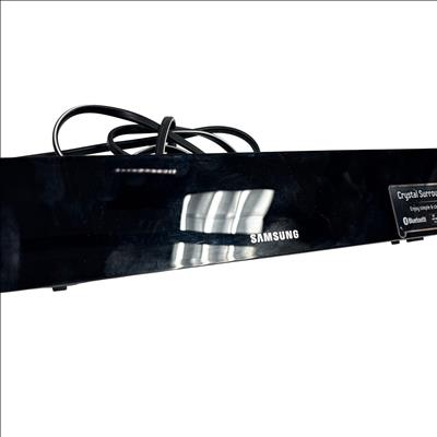 The Samsung HW-E450 Soundbar and Wireless Active Subwoofer deliver immersive audio with Crystal Surround AirTrack technology for enhanced sound clarity. This model HW-E450 features Bluetooth connectivity for wireless streaming and a powerful wireless subwoofer for deep bass response. Designed for easy setup and sleek integration into your home entertainment system, it operates on standard AC power and includes all necessary cables and a remote control. Ideal for enhancing TV audio and music playback with a stylish black finish and compact dimensions.