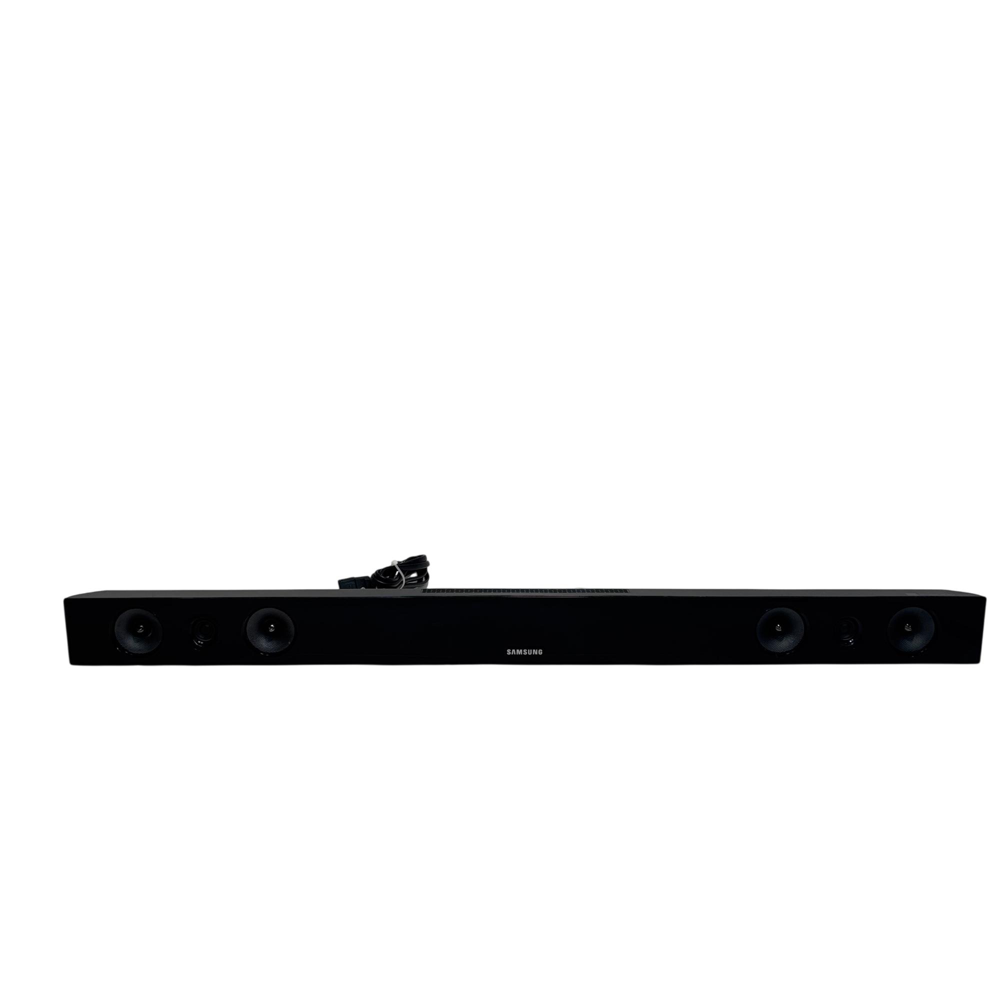 Samsung HW-F450 2.1 Channel 280W Bluetooth Soundbar delivers powerful audio performance with rich bass and clear sound reproduction. Featuring Bluetooth connectivity, this sleek black soundbar enhances your home entertainment experience with immersive Dolby Digital audio support and multiple input options for seamless integration.
