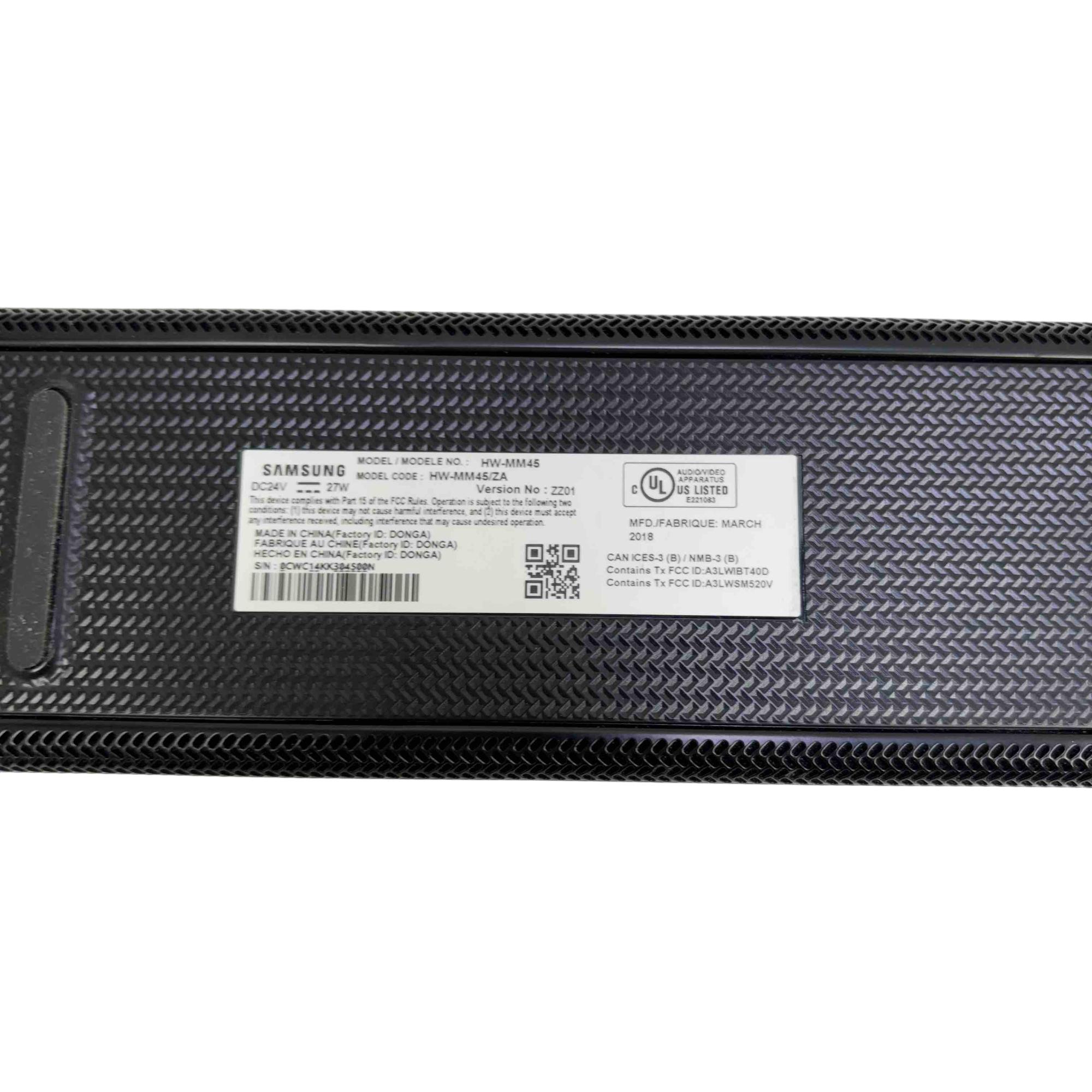 Enhance your home audio experience with the Samsung HW-MM45 Soundbar, featuring dynamic sound quality and sleek design. This soundbar comes with HDMI connectivity for easy setup and control, and includes a convenient remote for effortless operation. Transform your living room into a mini-theater with its powerful sound projection and enjoy immersive, high-quality audio for your favorite movies and music.