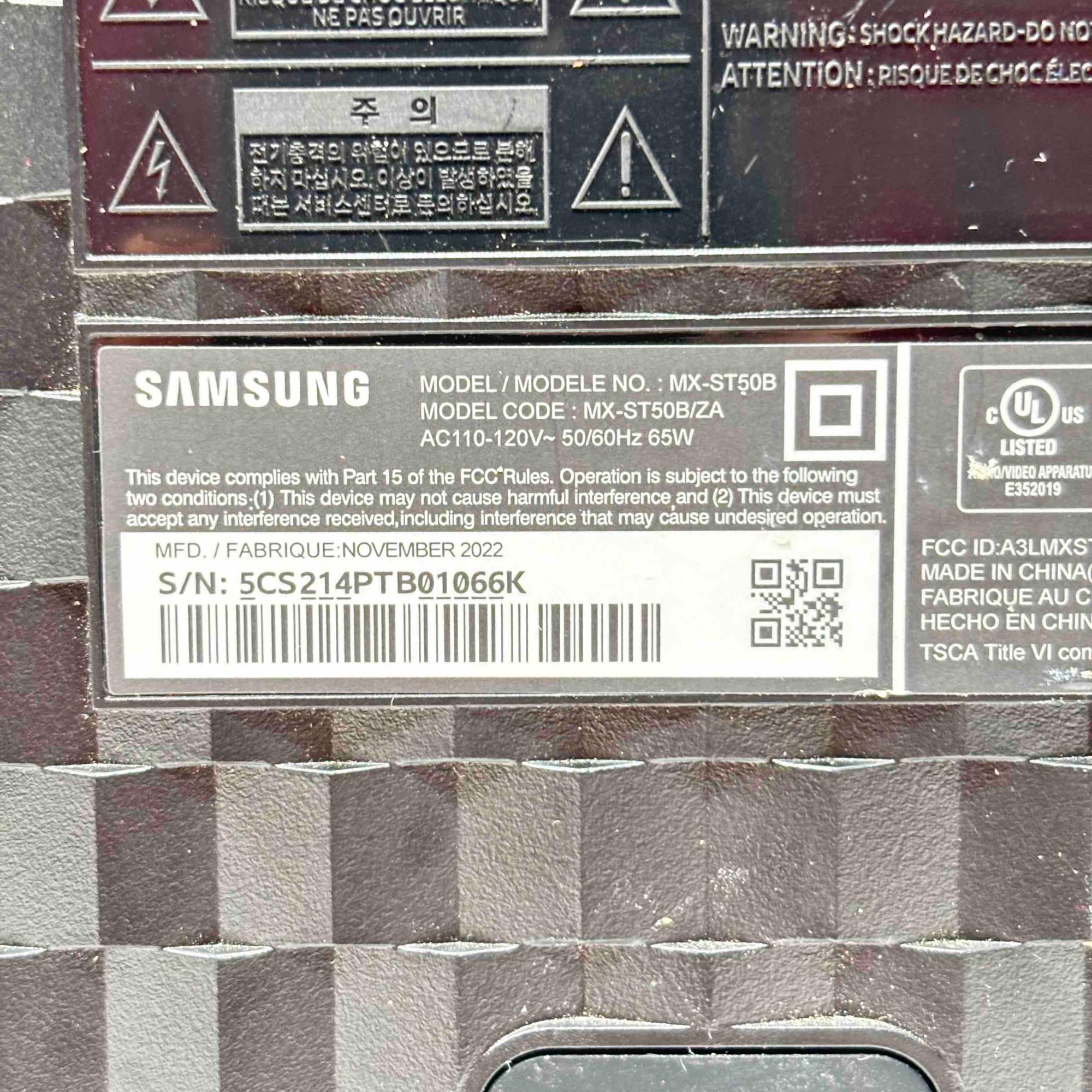 Experience powerful sound and dynamic audio with the Samsung MX-ST50B, a high power portable Bluetooth speaker perfect for parties, events, or home entertainment. With features like Group Play, wireless connectivity, and rugged build, this speaker lets you bring your music anywhere and keep the party going all night. Includes a convenient power cord so youre always ready to play.