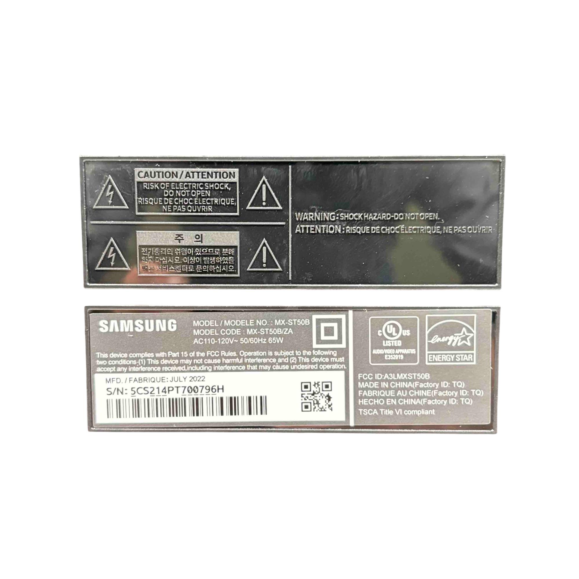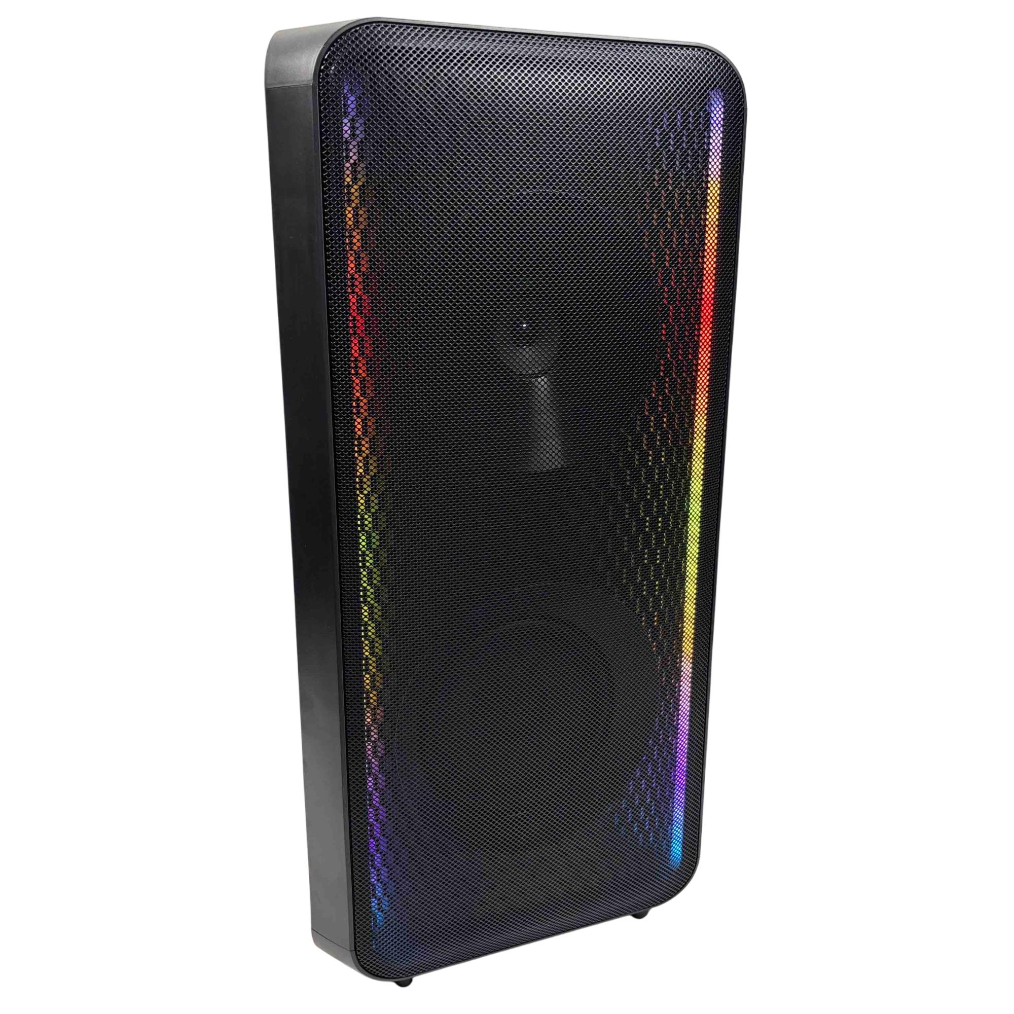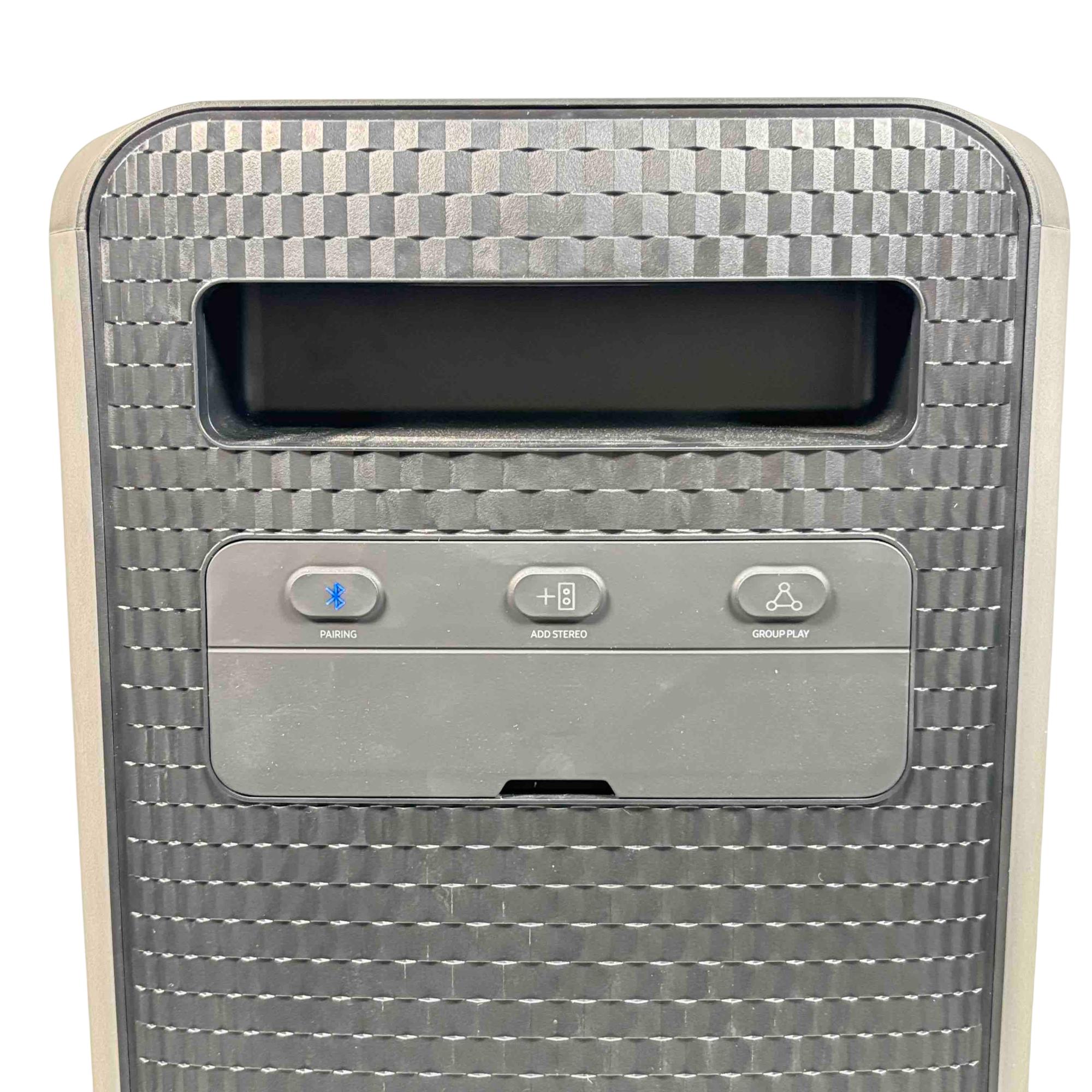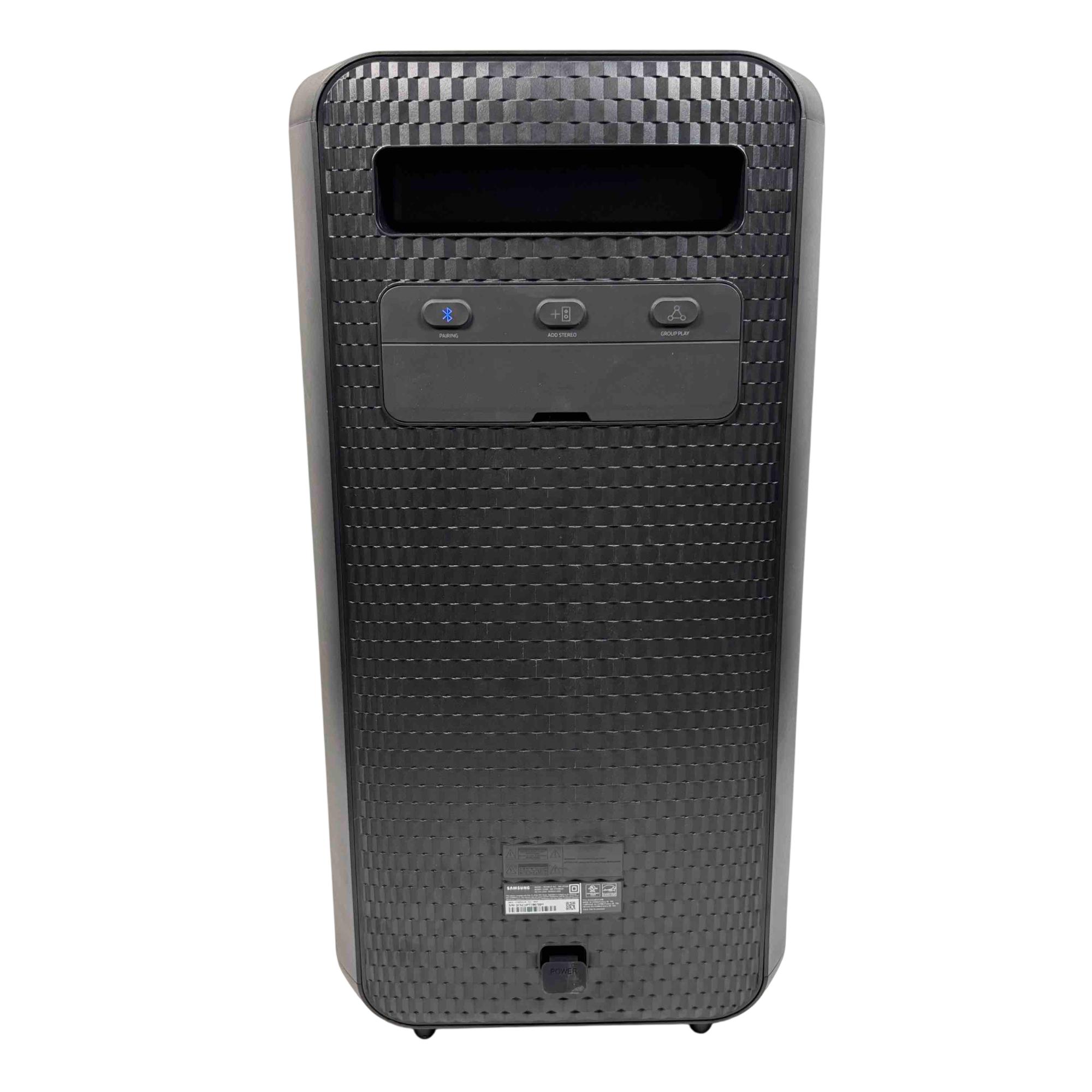 Elevate your parties with the Samsung MX-ST50B/ZA Sound Tower, a powerful 240W portable Bluetooth speaker. Featuring vibrant rainbow LED lights and an impressive built-in battery, this speaker delivers dynamic sound and a visually captivating experience, perfect for any event.