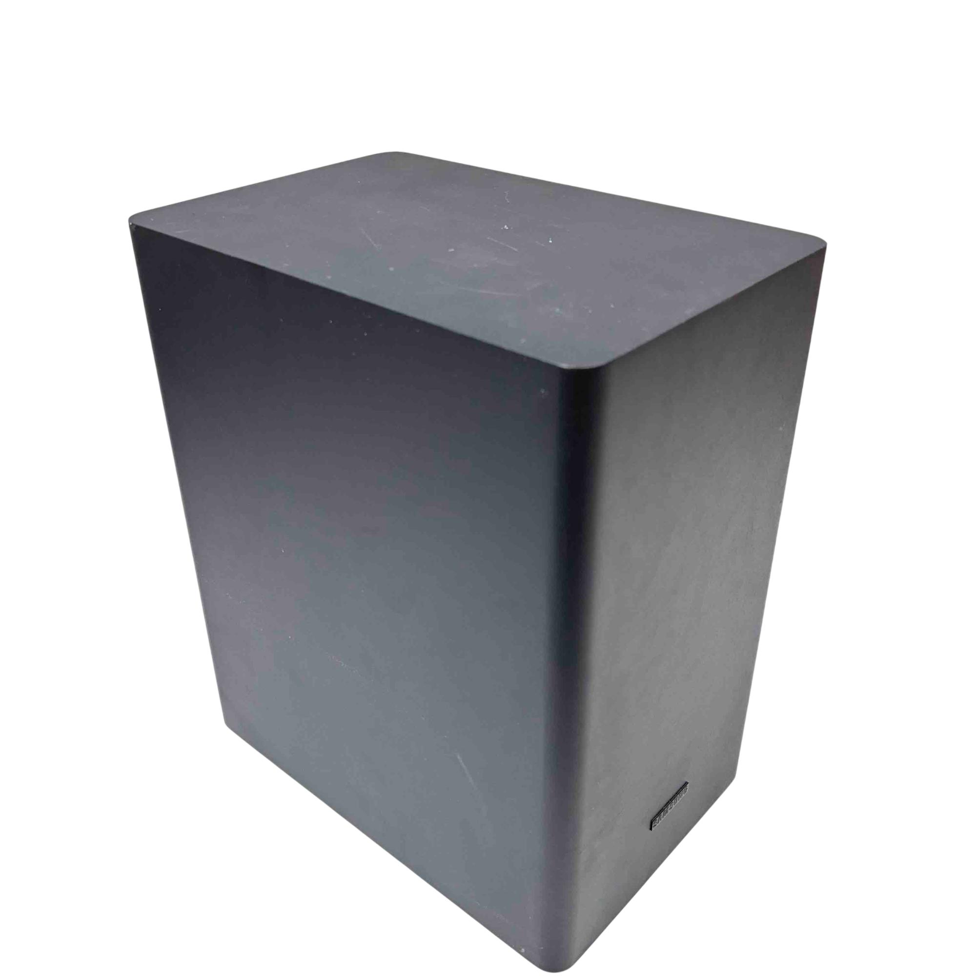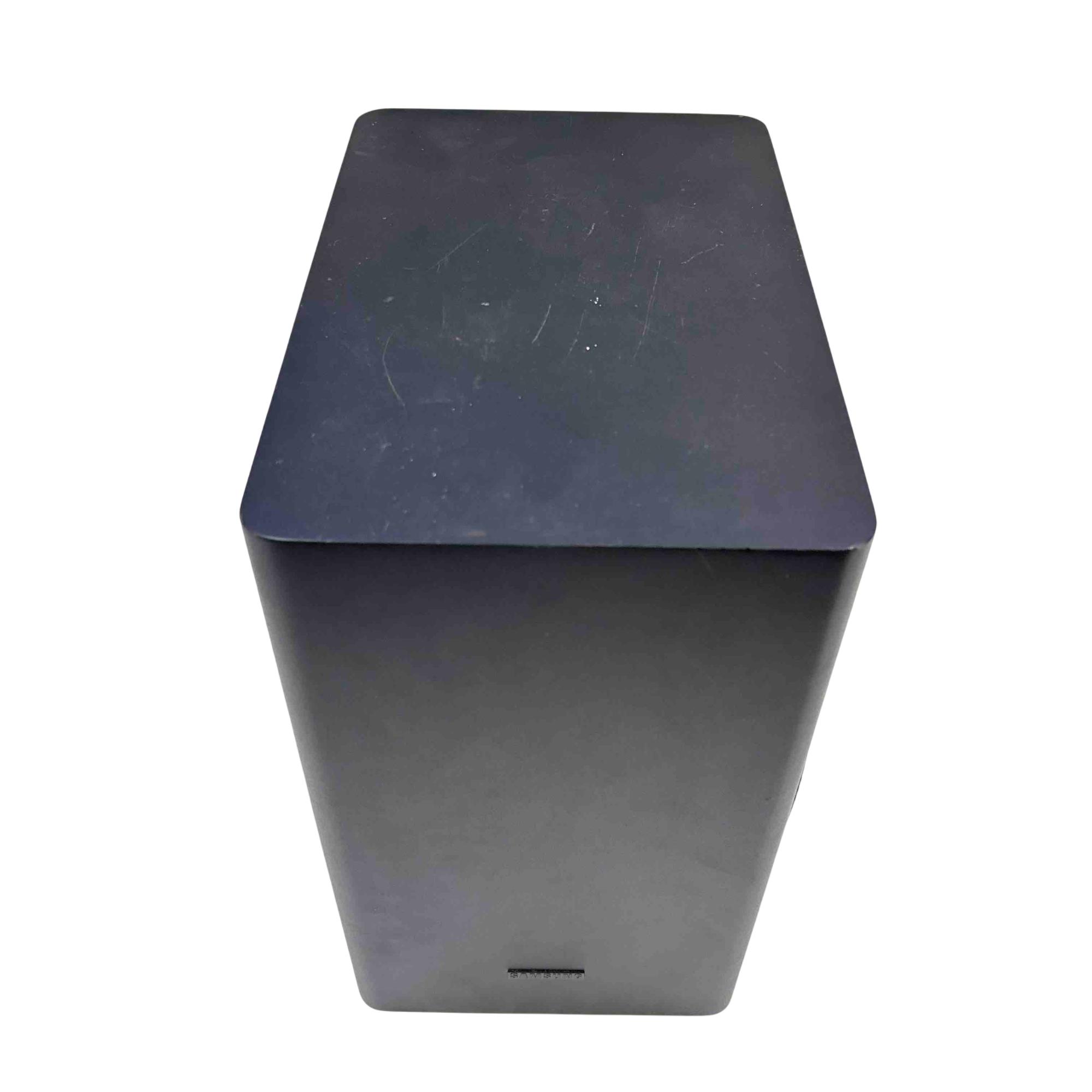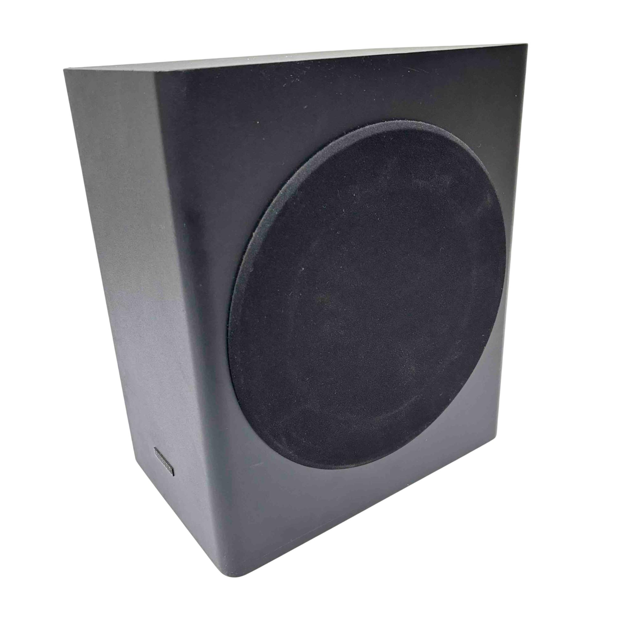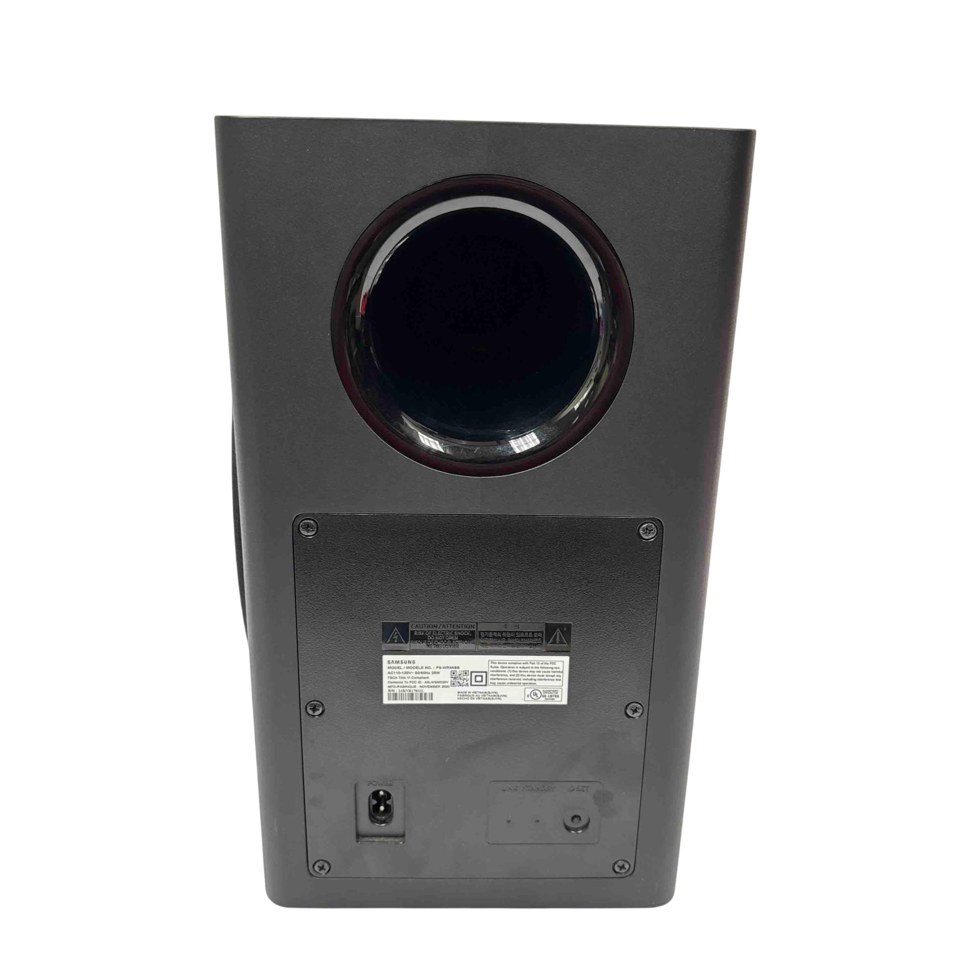 Experience immersive audio with the Samsung PS-WR65BB soundbar and subwoofer set. Sleek and powerful, this black sound system is designed to deliver cinematic sound quality for your home entertainment, complete with all essential power and audio cables. Elevate your TV or movie nights with Samsung's trusted clarity and deep bass in a compact, stylish package.