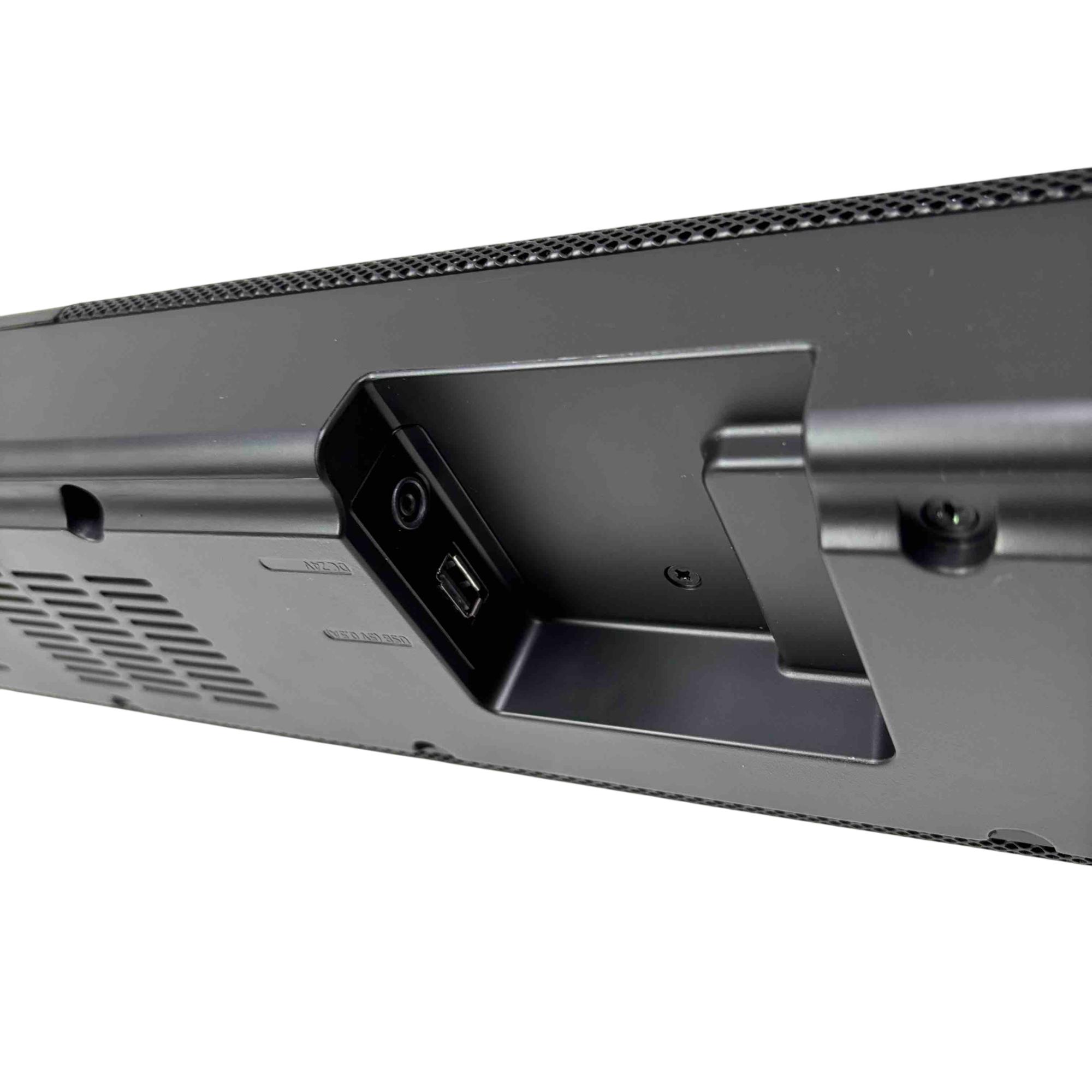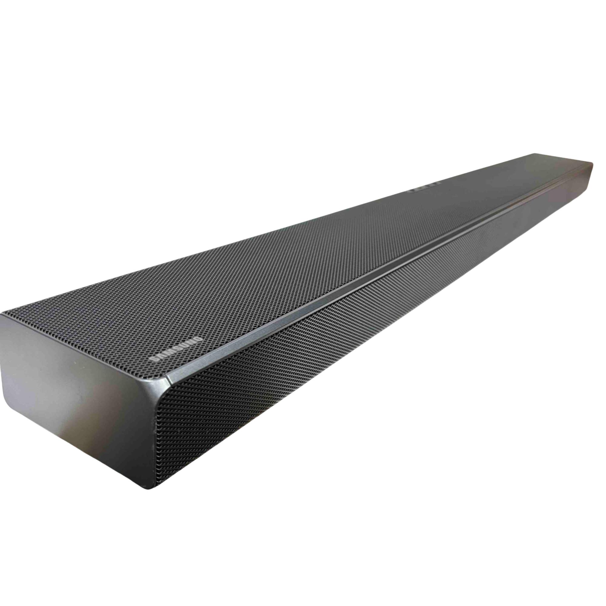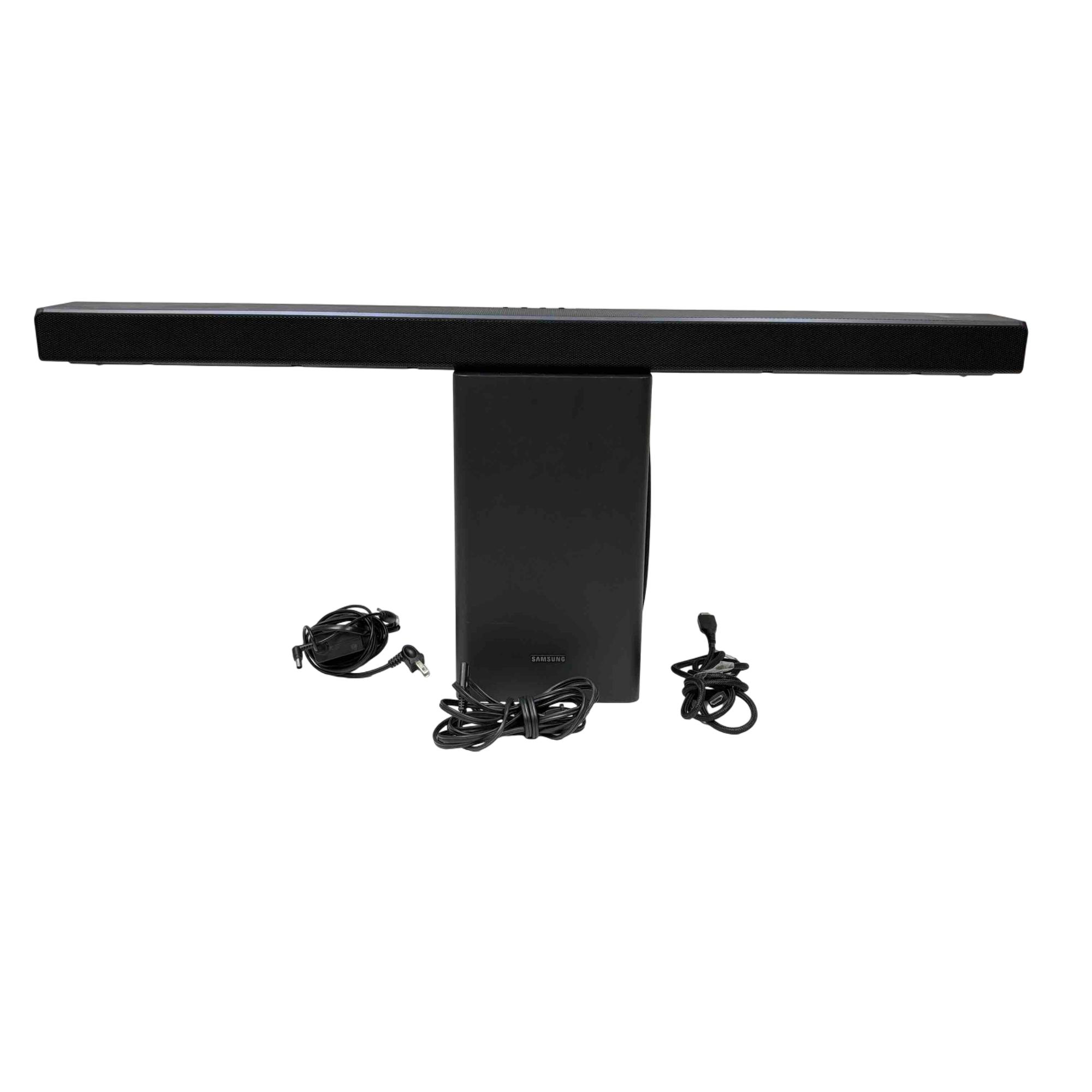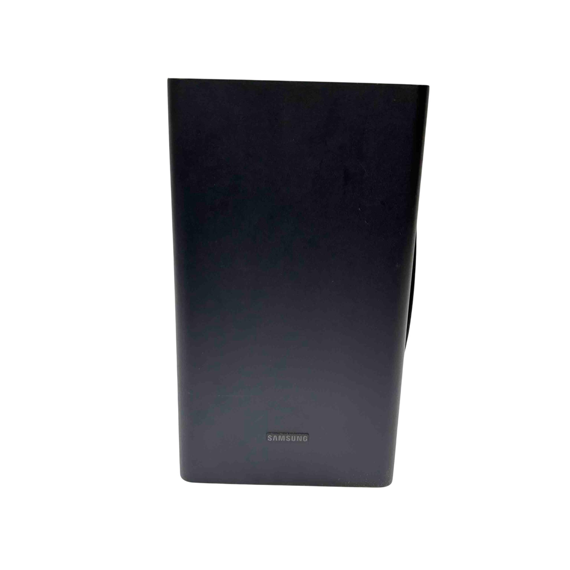 Experience immersive audio with the Samsung PS-WR65BB soundbar and subwoofer set. Sleek and powerful, this black sound system is designed to deliver cinematic sound quality for your home entertainment, complete with all essential power and audio cables. Elevate your TV or movie nights with Samsung's trusted clarity and deep bass in a compact, stylish package.