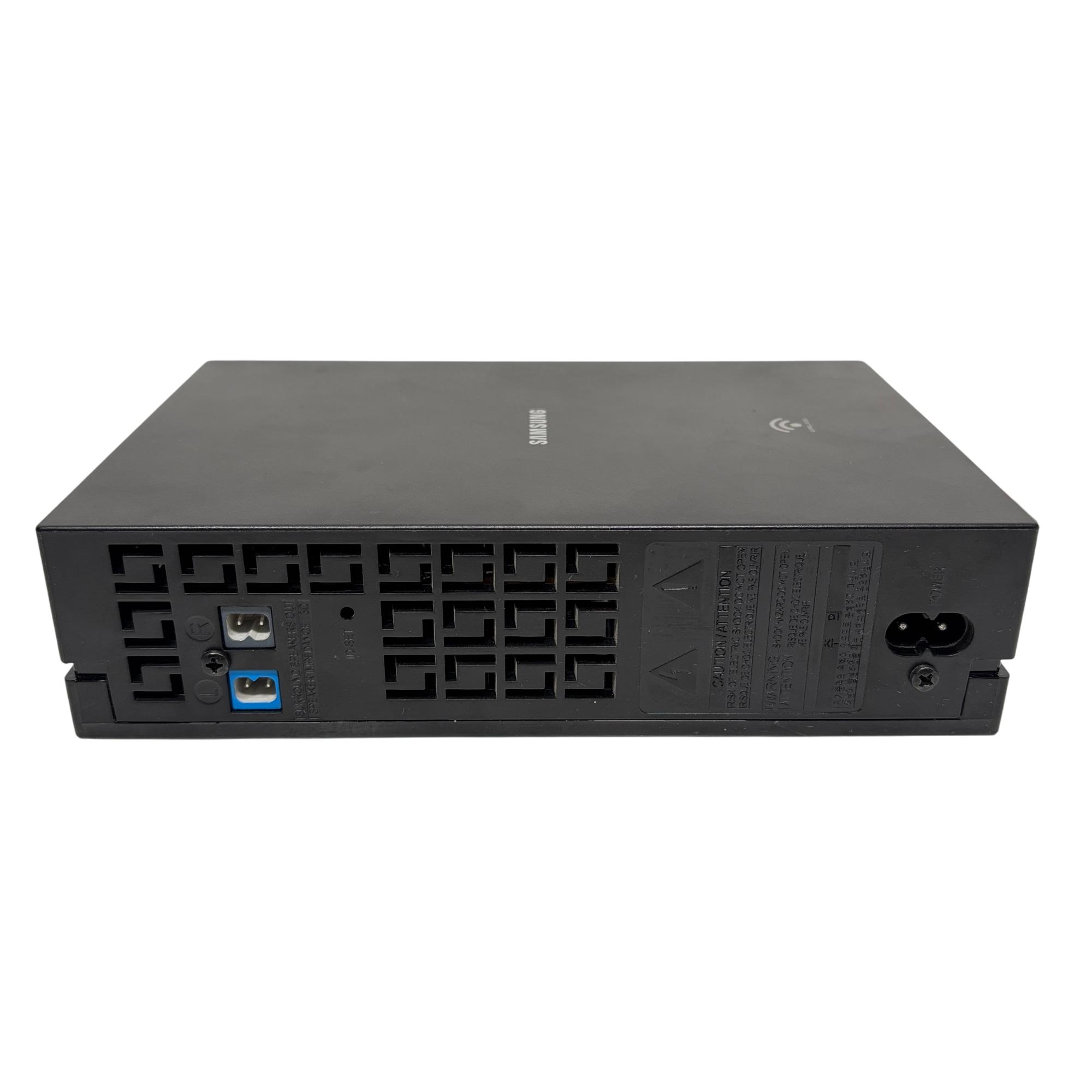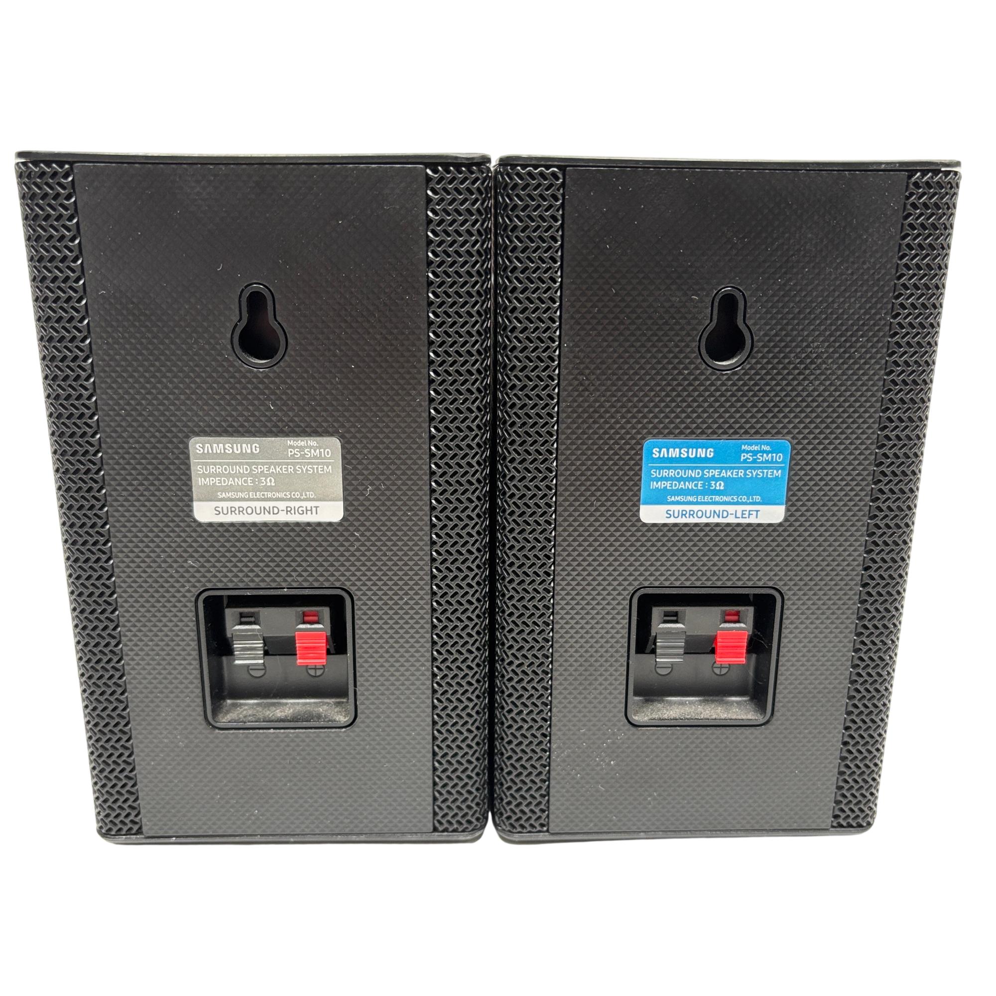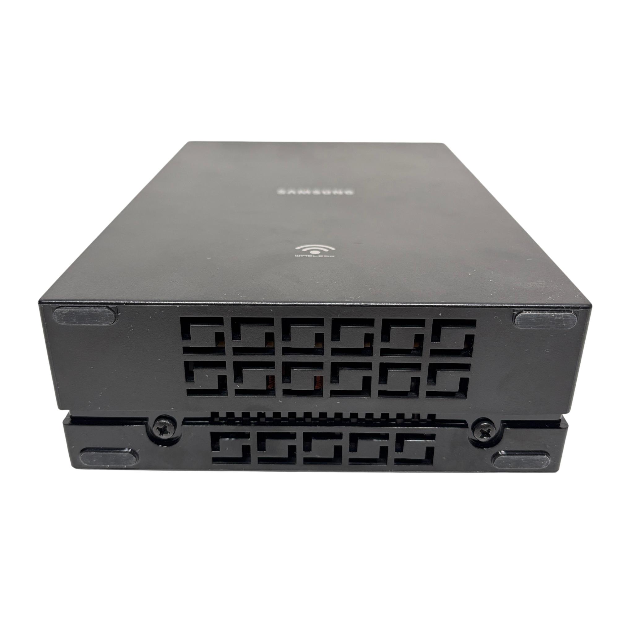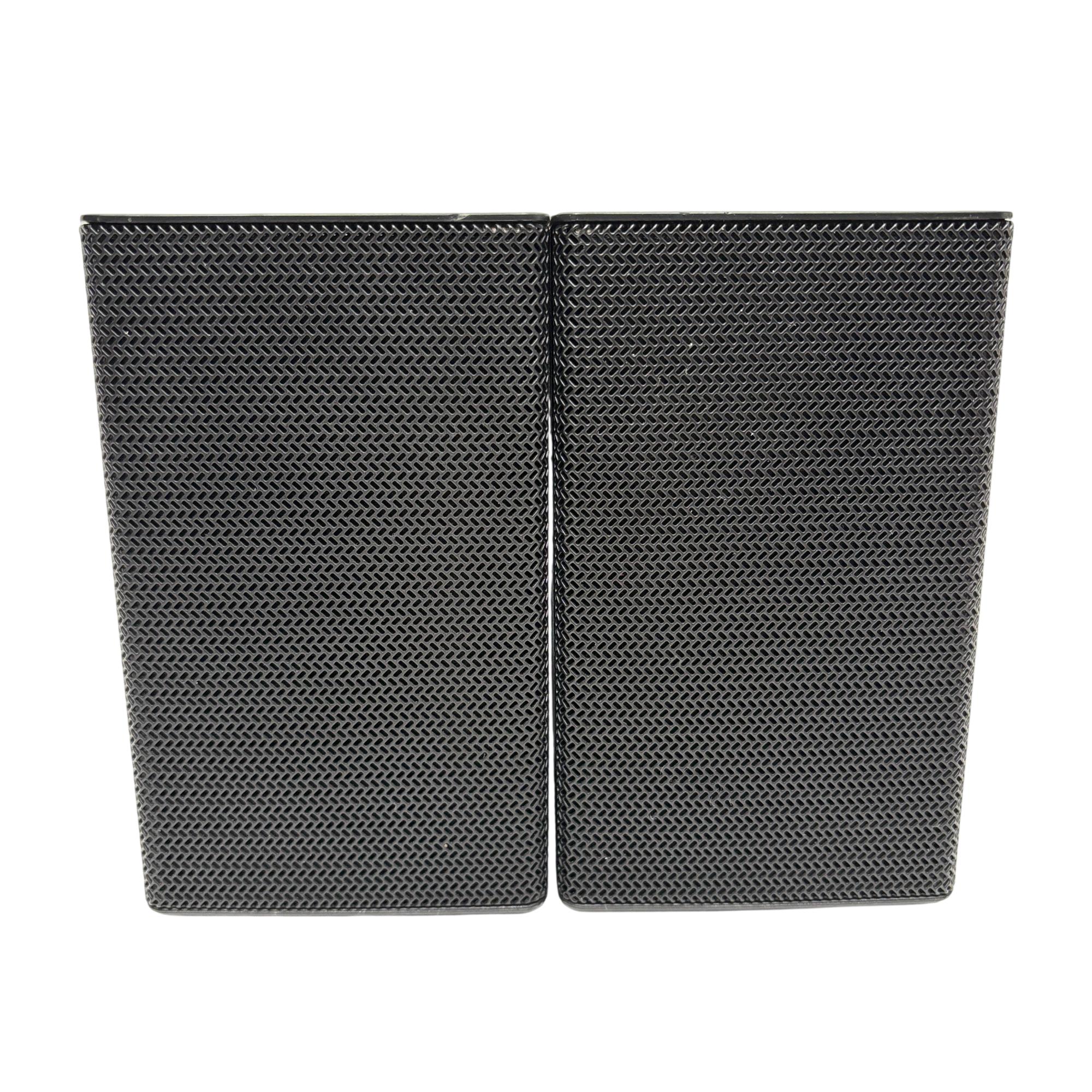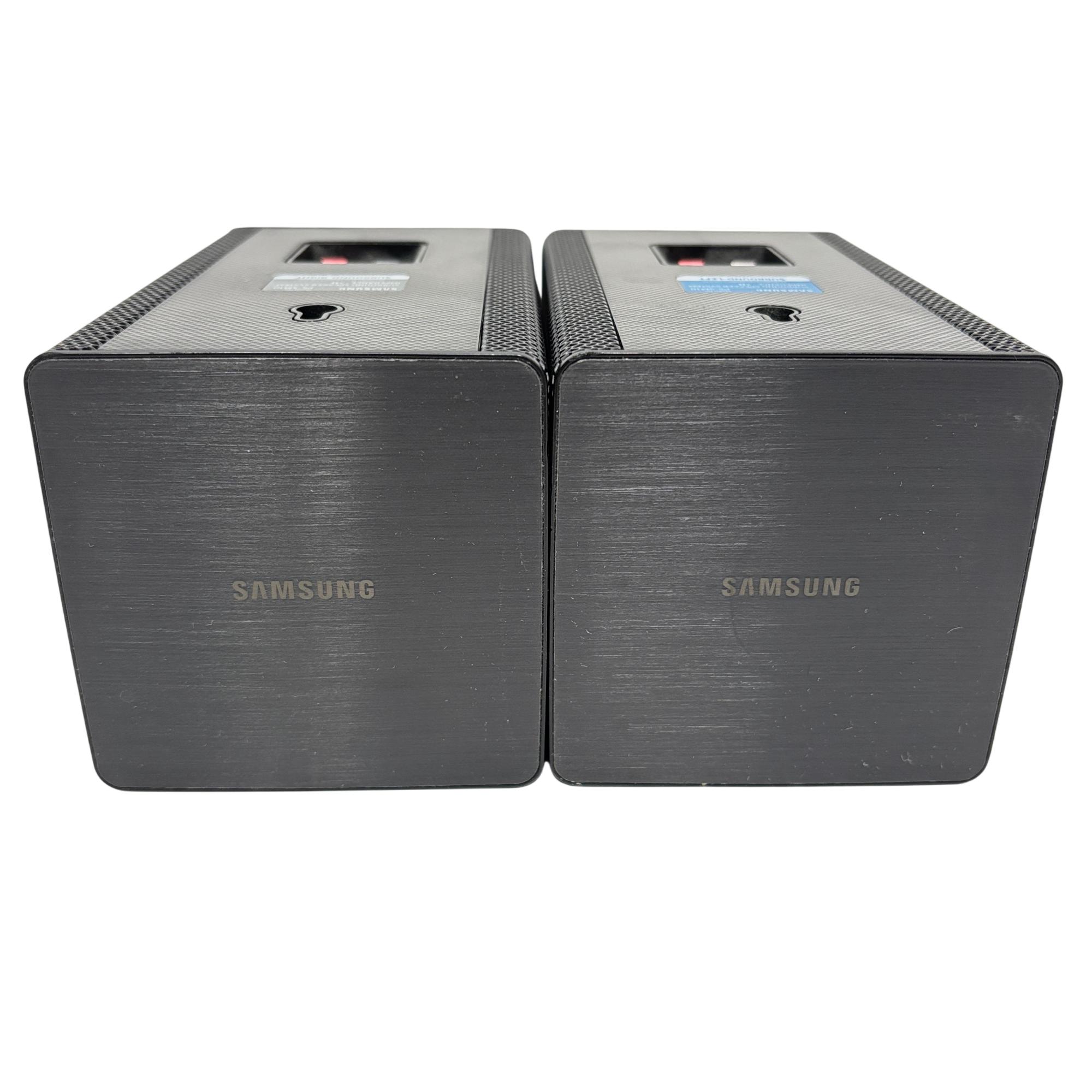 Samsung SWA-9000S Wireless Rear Surround Speaker Kit with Receiver (Left & Right) delivers immersive surround sound through wireless connectivity, enhancing home theater audio with powerful and clear rear channel output. Designed to seamlessly integrate with compatible Samsung soundbars, this set features sleek black rectangular speakers with a distinctive maze pattern and easy installation for an upgraded audio experience.