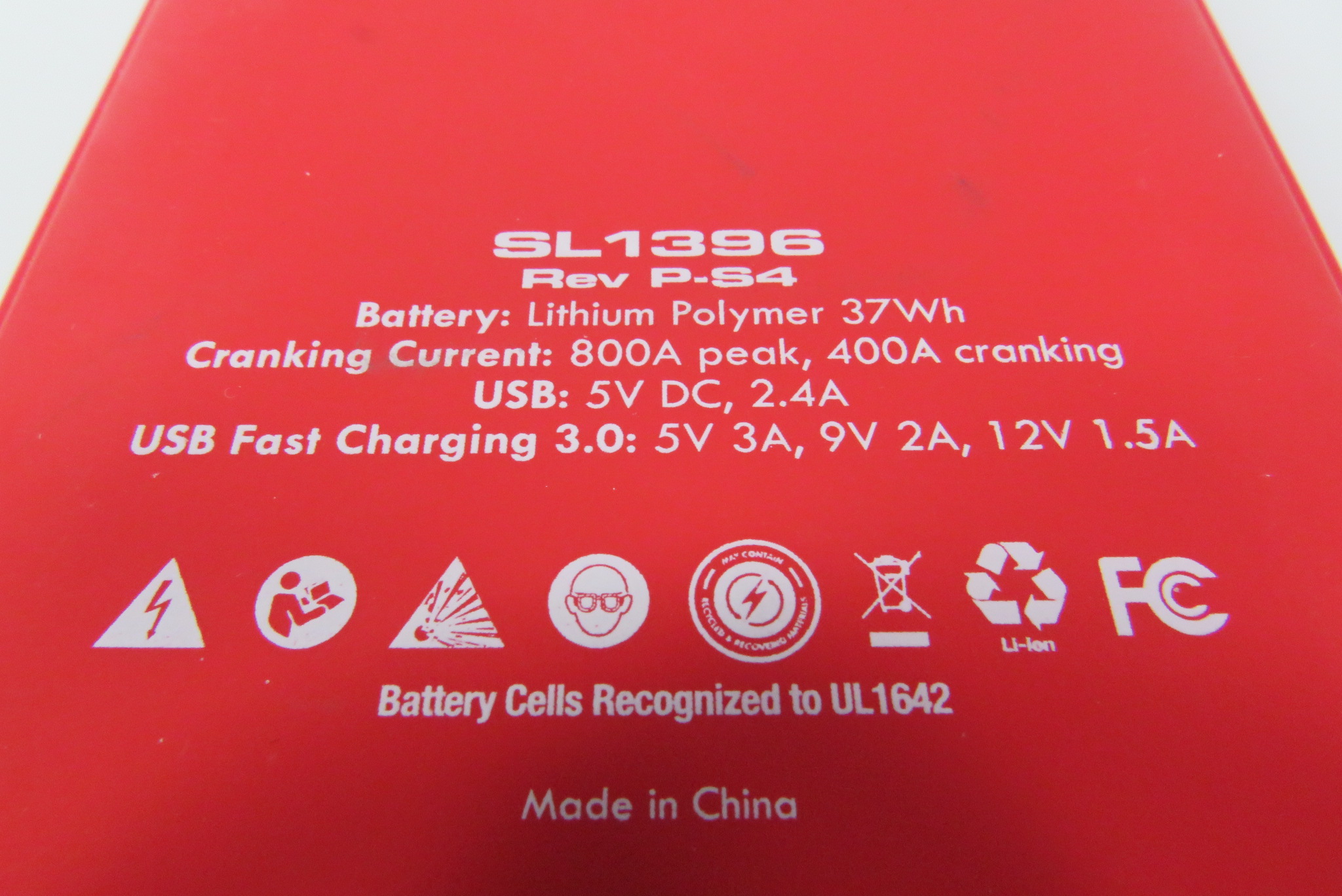 12V output voltage to charge 8-cylinder cars and 5V/3A, 9V/2A, and 12V/1.5A USB devices. Lightweight and compact, the unit features a lithium polymer battery that allows for a longer life and additional charge cycles.