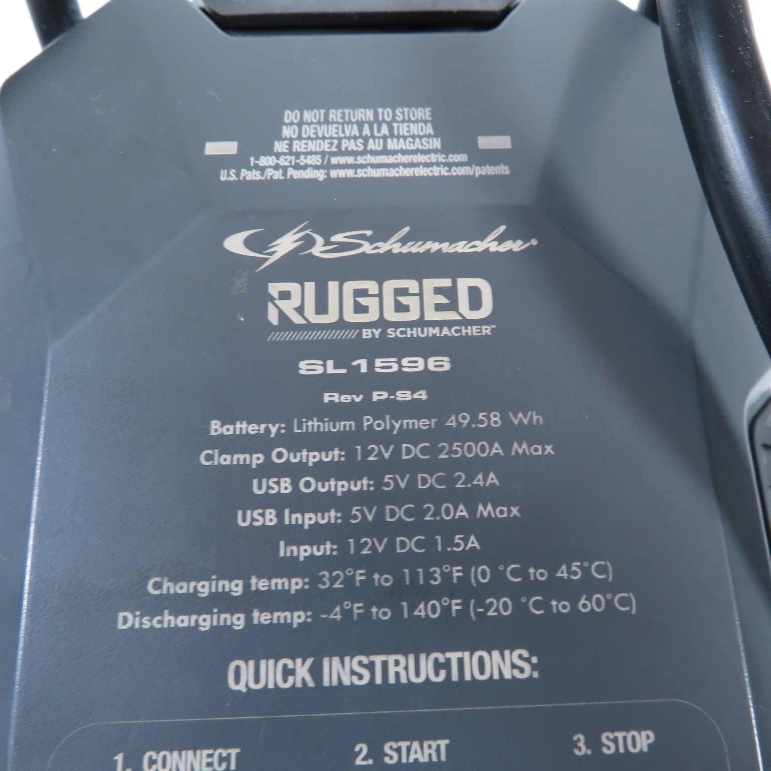 Built-in, 36-inch jumper cable with heavy-duty clamps