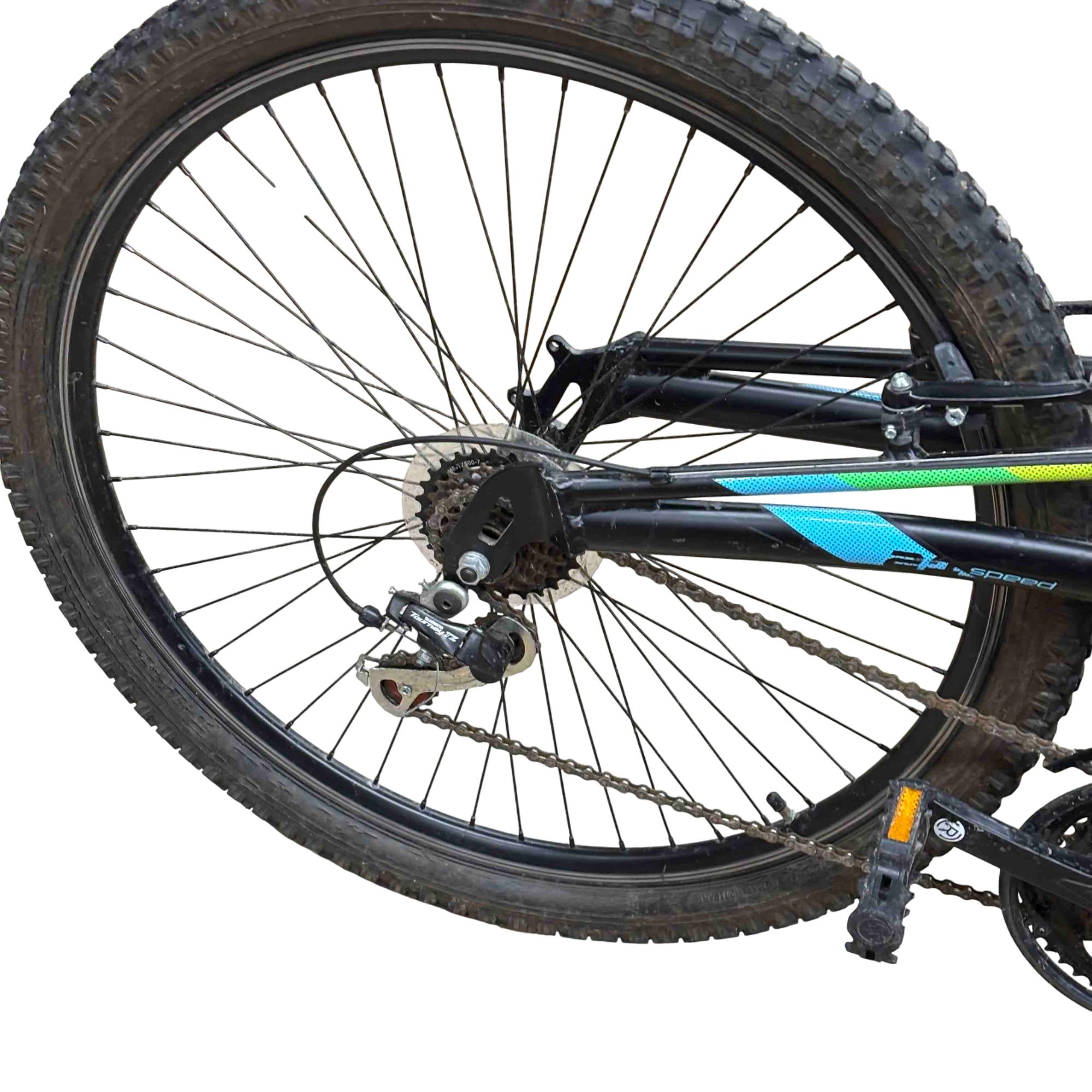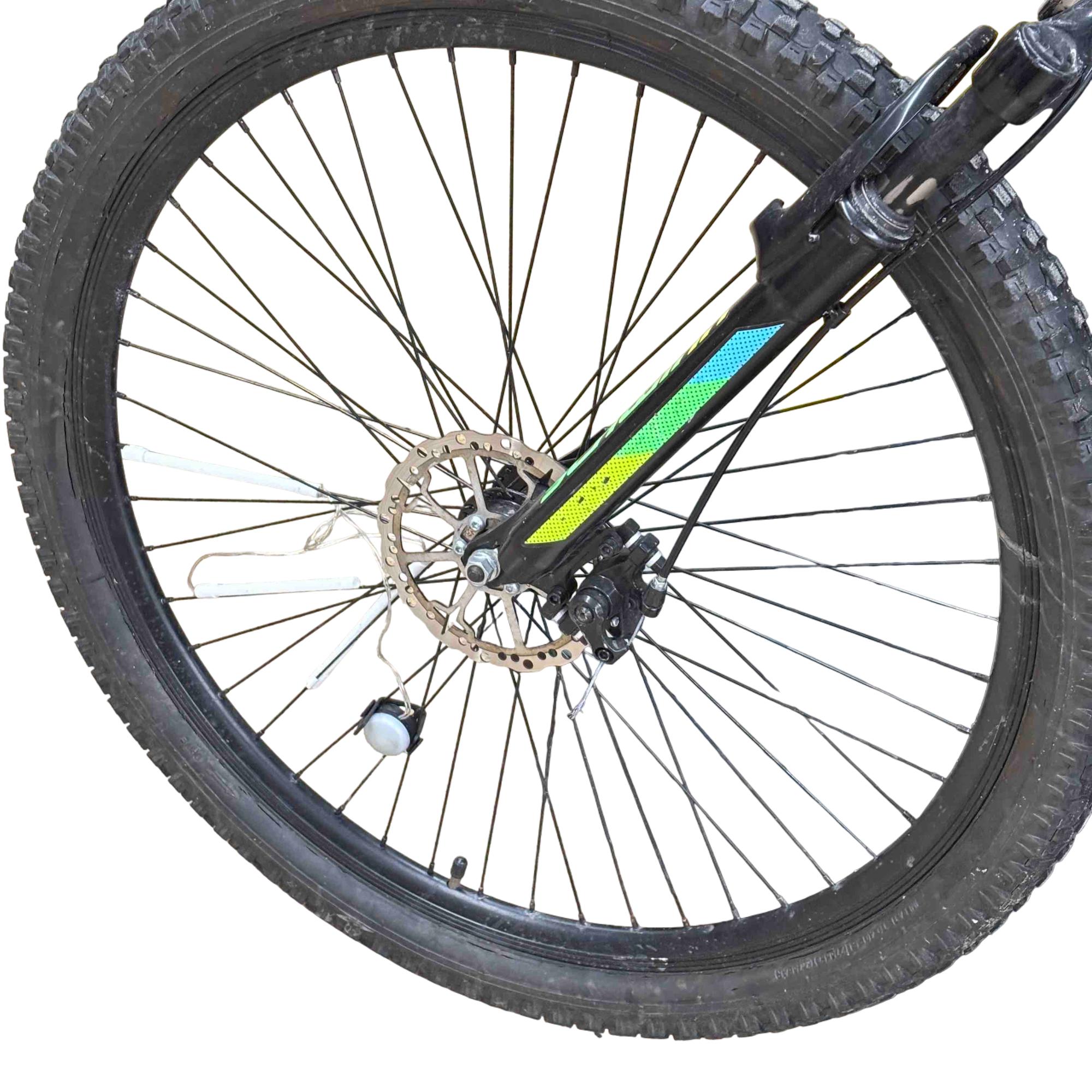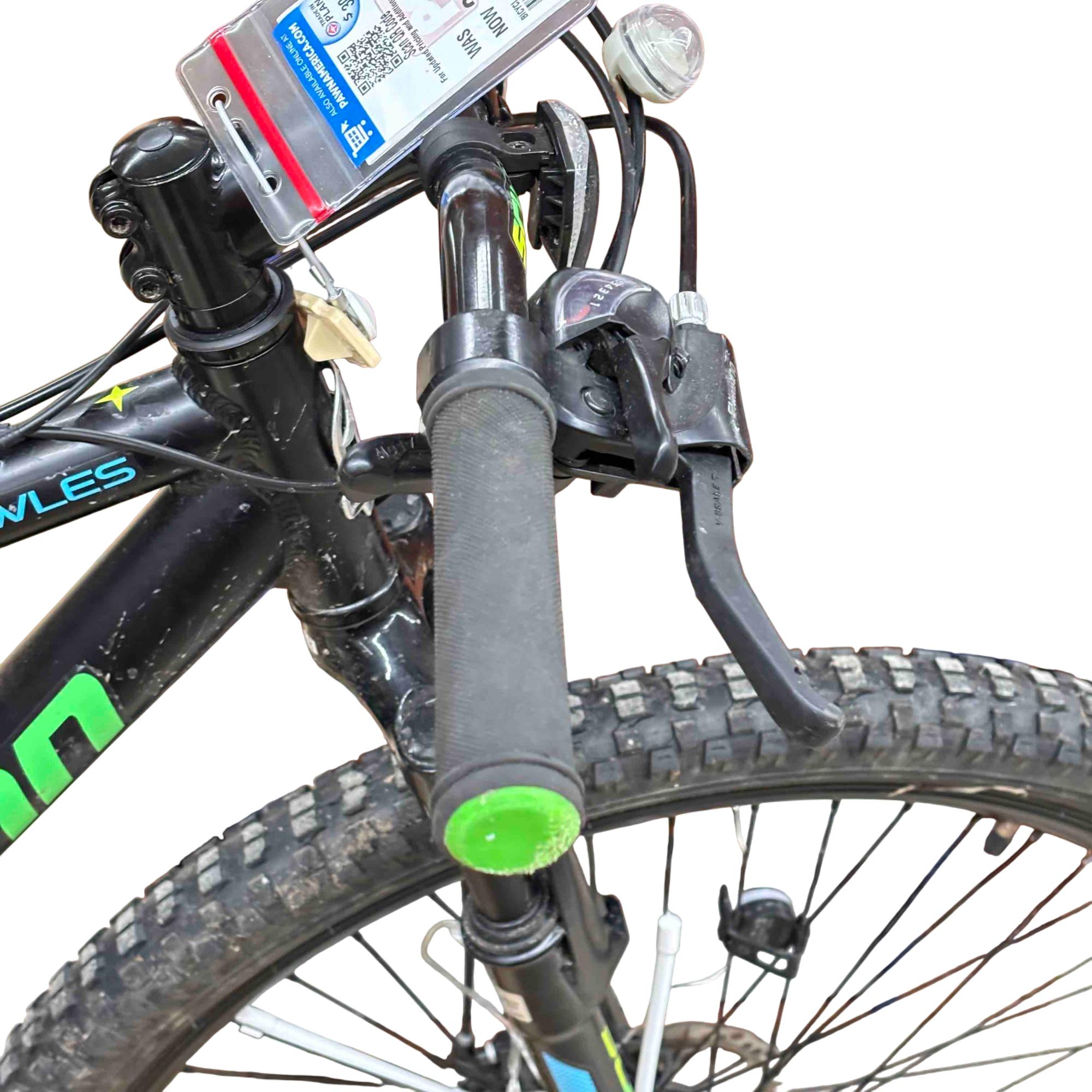 High profile alloy rims provide lightweight strength, while knobby mountain tires have the grip you need on rough terrain.
