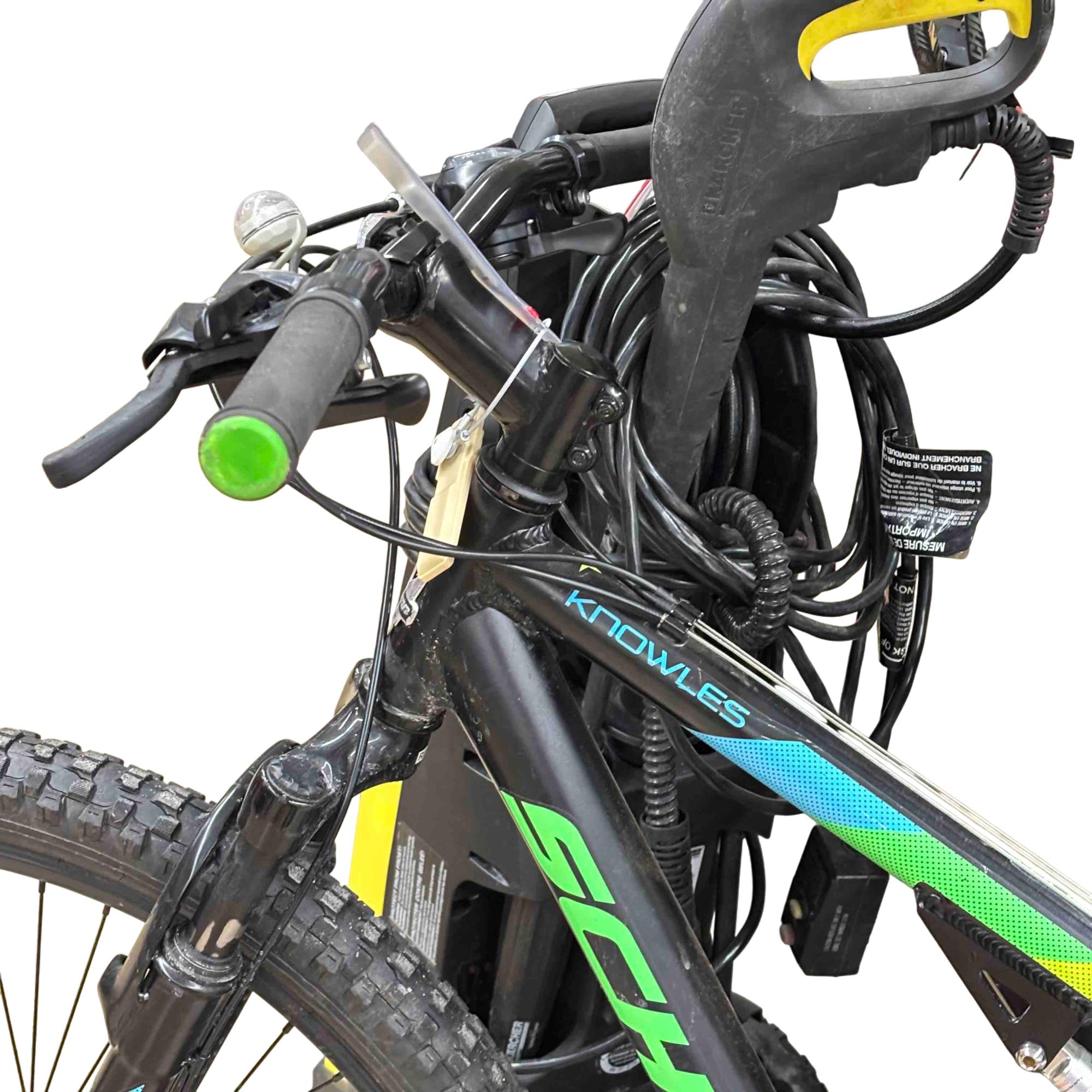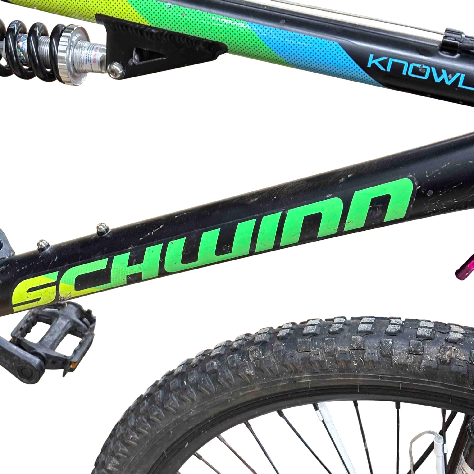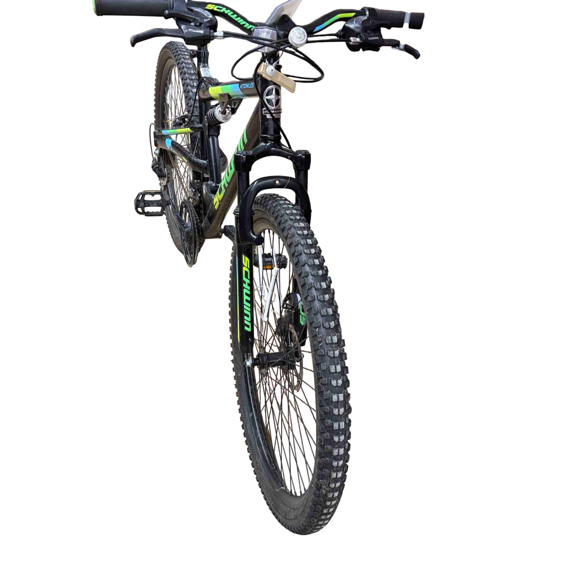 High profile alloy rims provide lightweight strength, while knobby mountain tires have the grip you need on rough terrain.