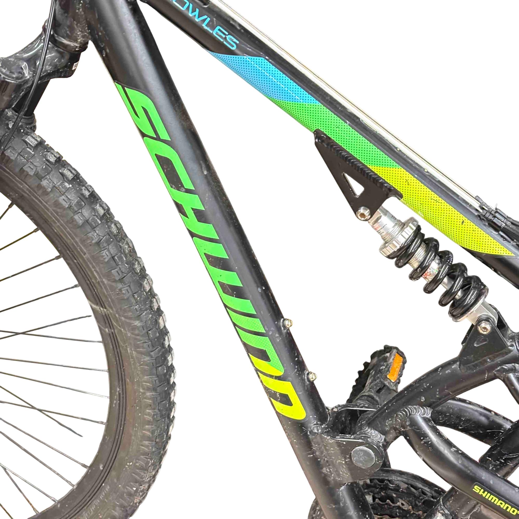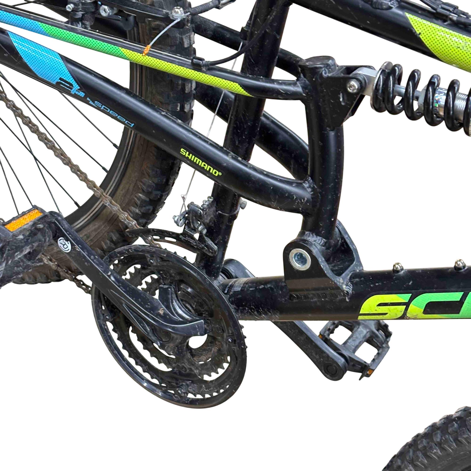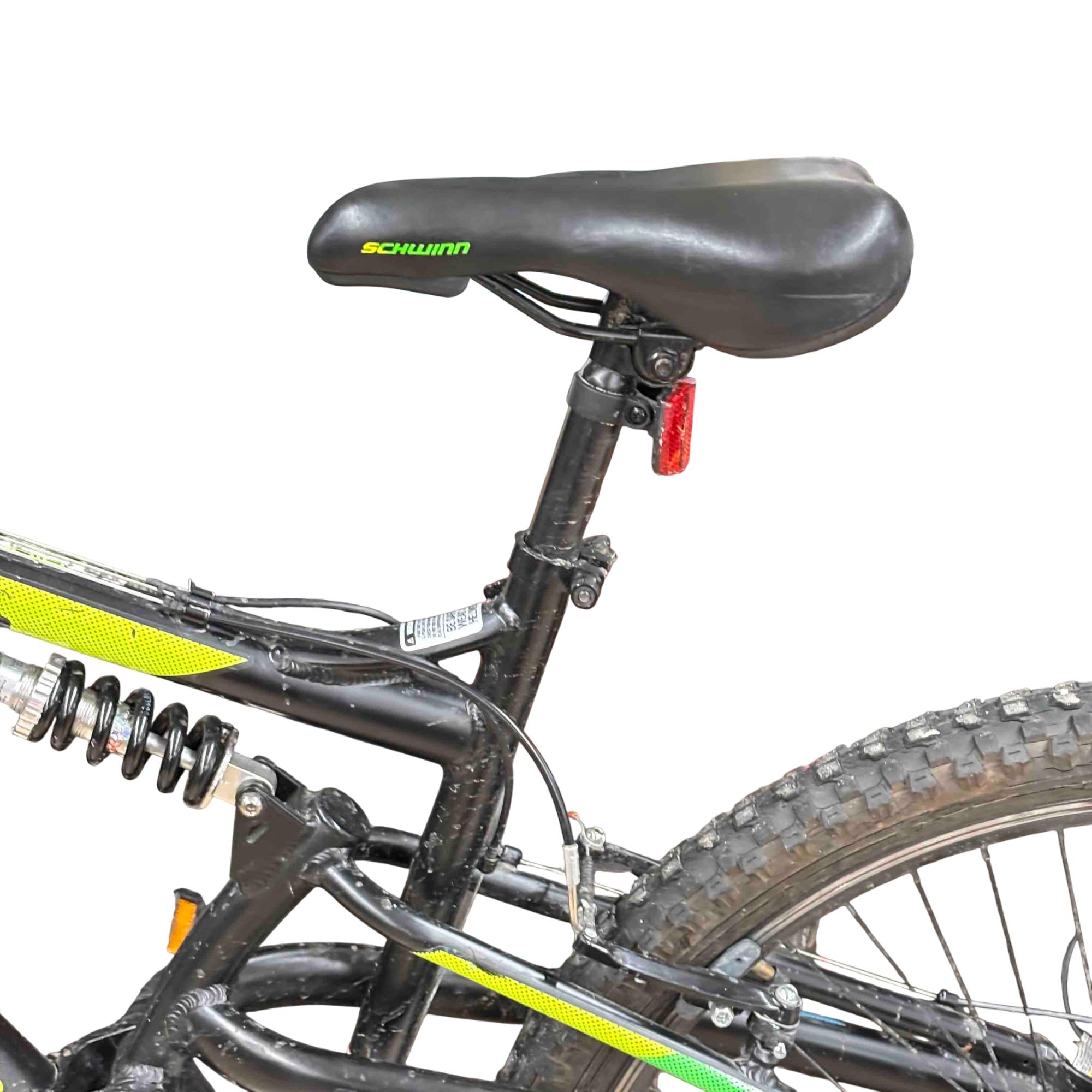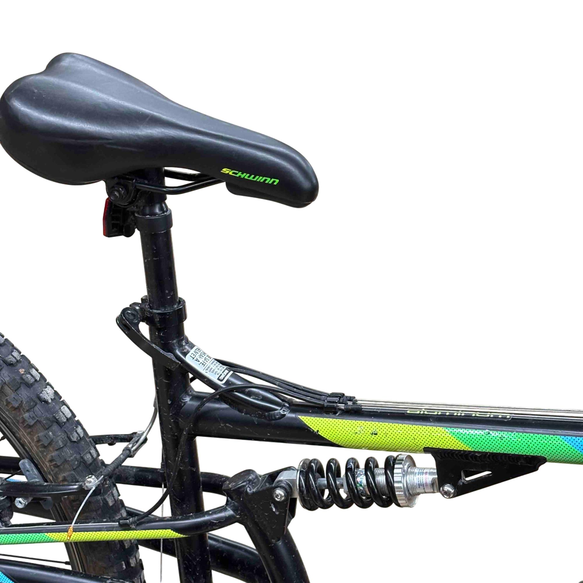 Aluminum dual suspension mountain frame and front suspension fork are ready to take on rugged trails.