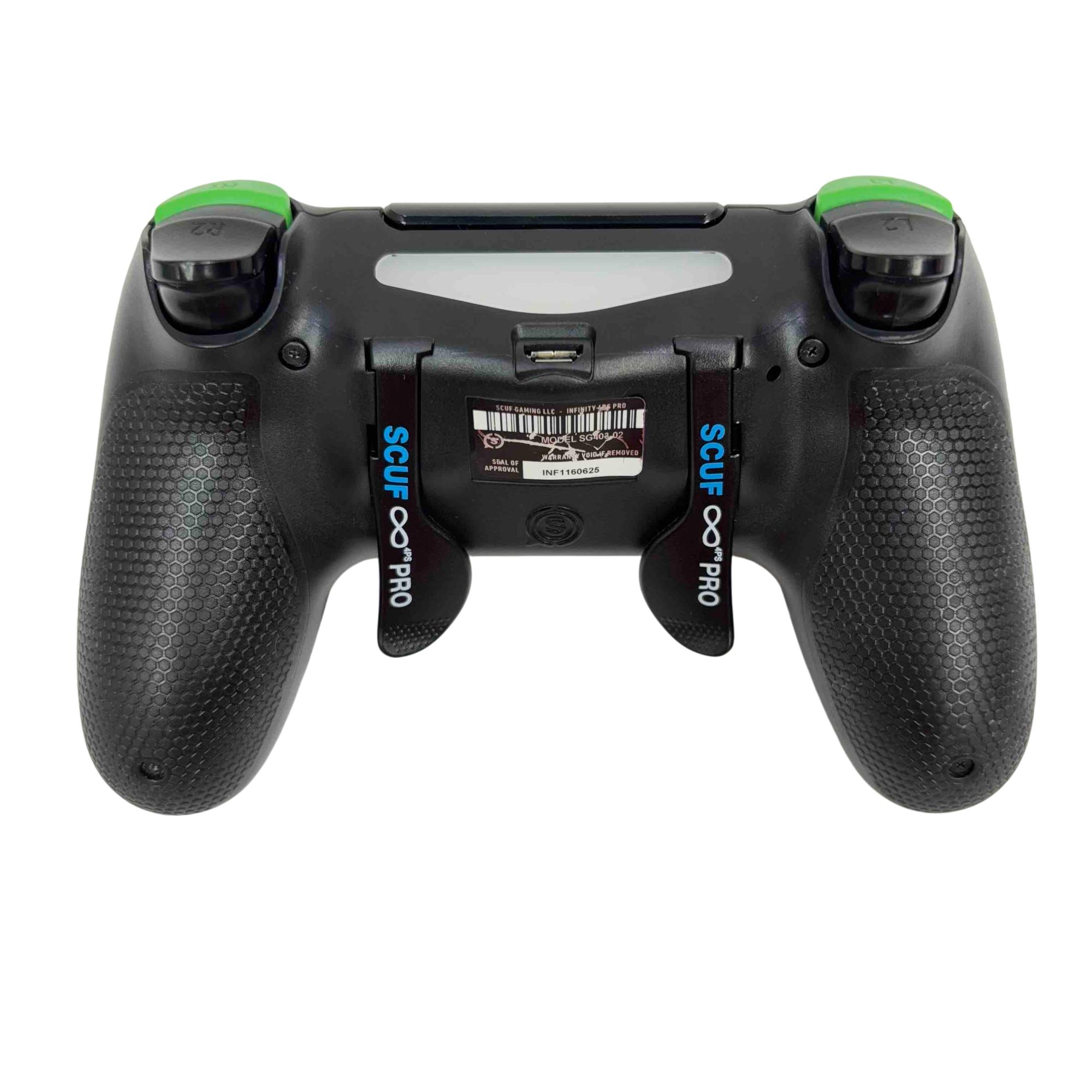 Enhance your gaming experience with the Scuf Gaming Infinity Pro. This sleek black and green customizable wireless game controller comes with a protective case, perfect for serious gamers seeking precision and comfort. Equip yourself with this elite controller and gain the competitive edge you need to dominate your gaming sessions.