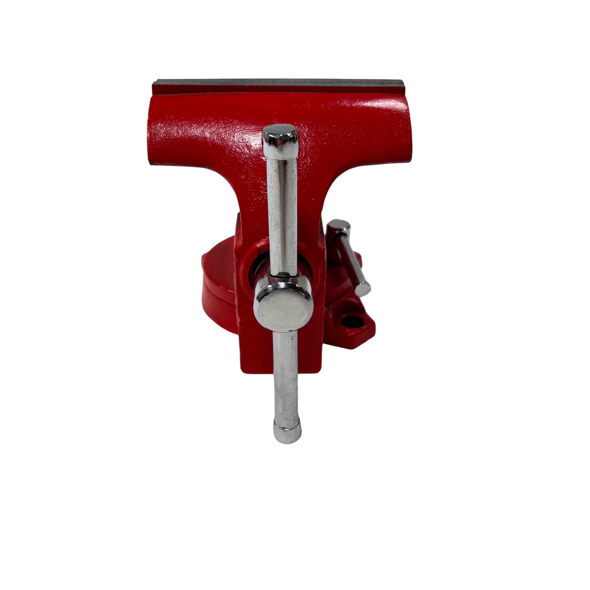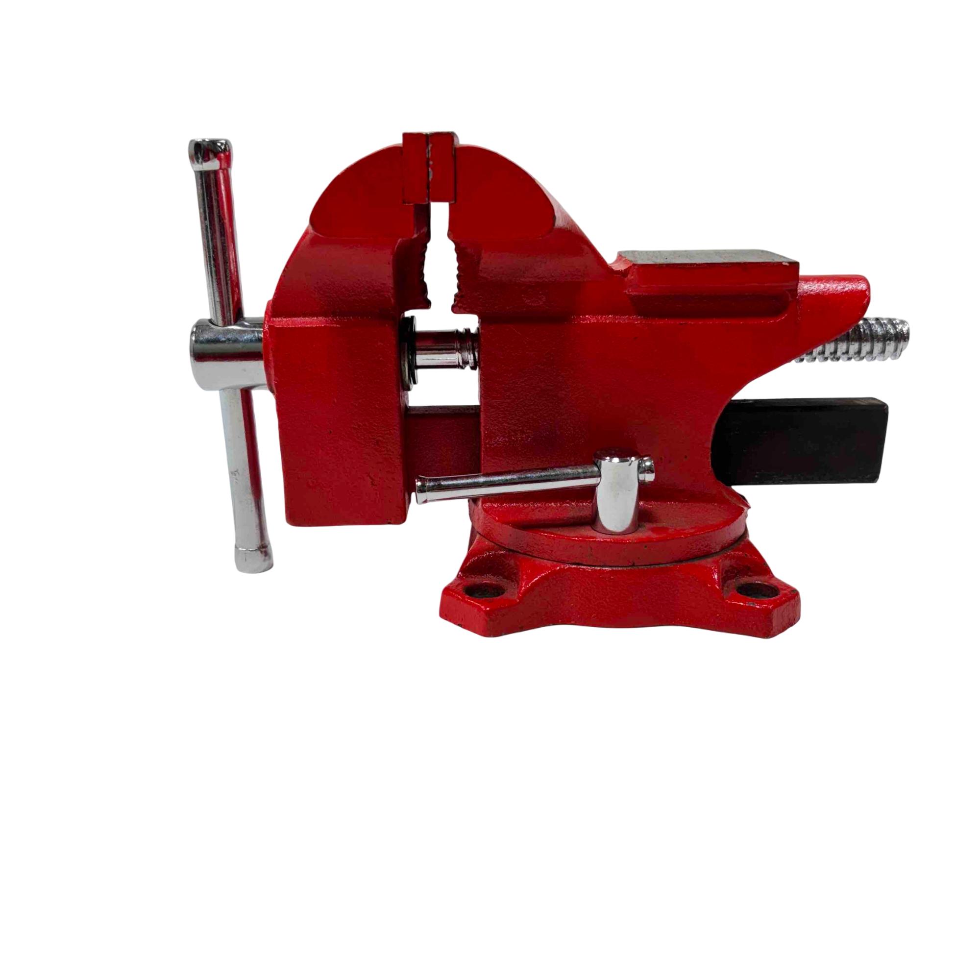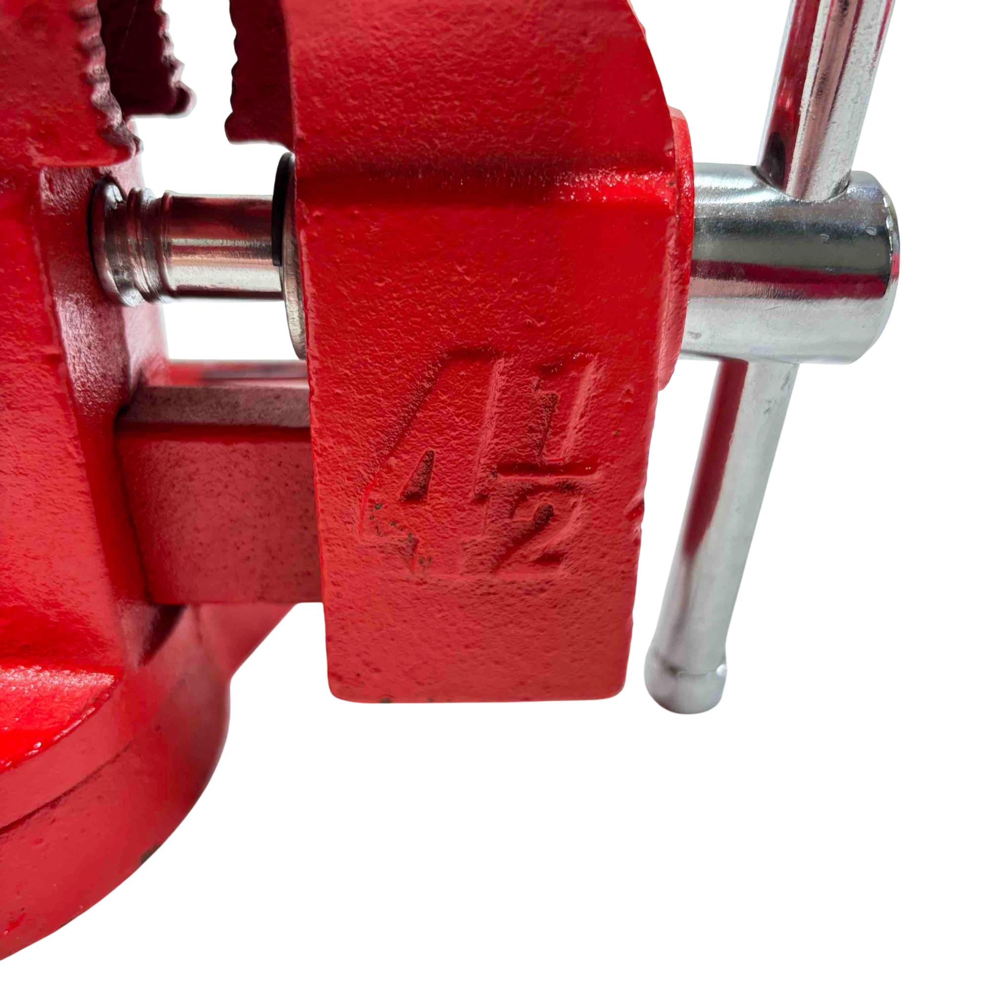 Sears 4 1/2” Swivel Bench Vise 5176 – Red features a durable red metal construction with a 4-1/2 inch jaw width , ideal for securing various materials during work. Equipped with a swivel base and a black handle for easy adjustments, this utility vise offers versatility and stability for workshop tasks.