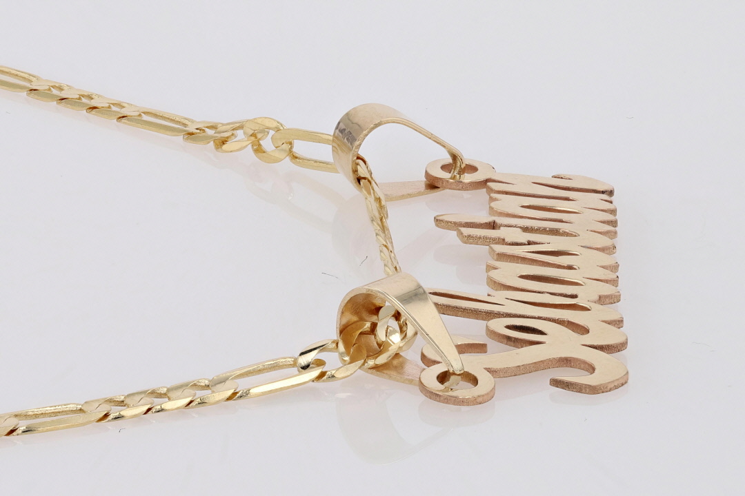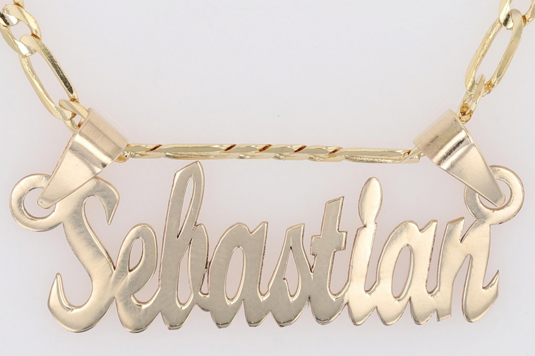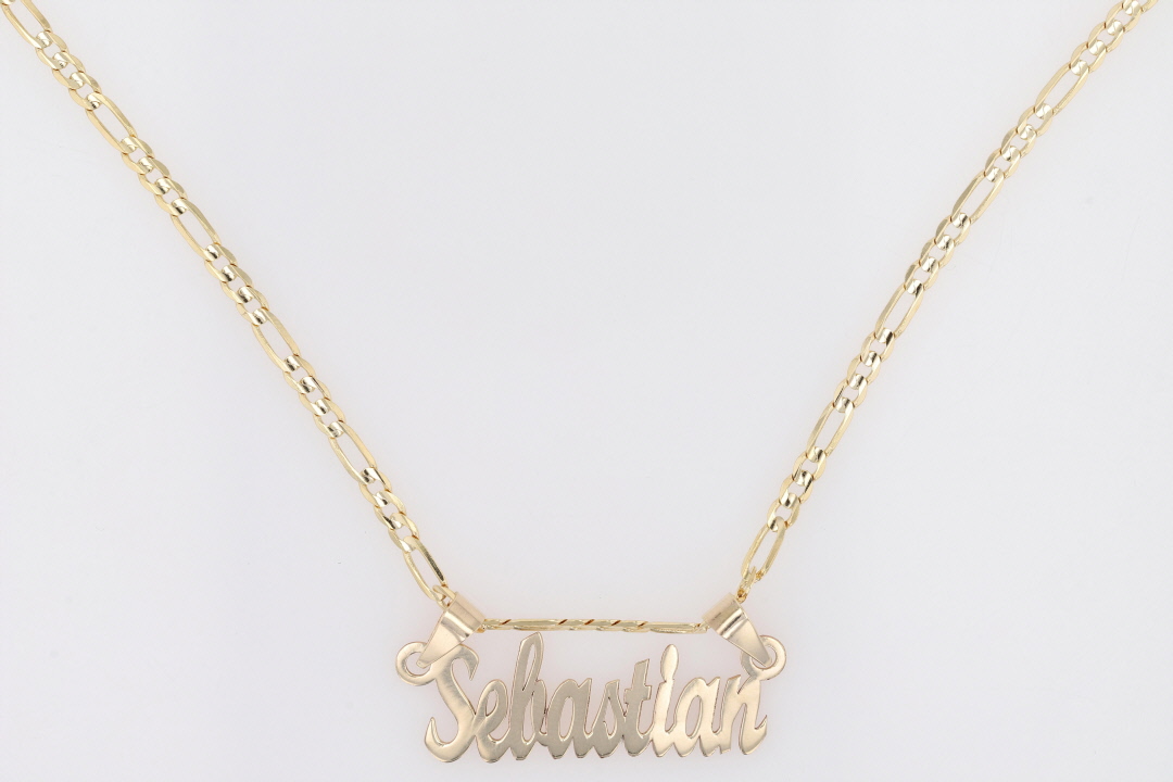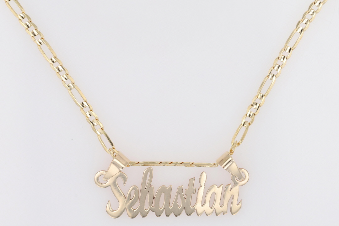 Sebastian Name Pendant on Figaro Chain 22" Necklace 14k Yellow Gold 9.70 Grams