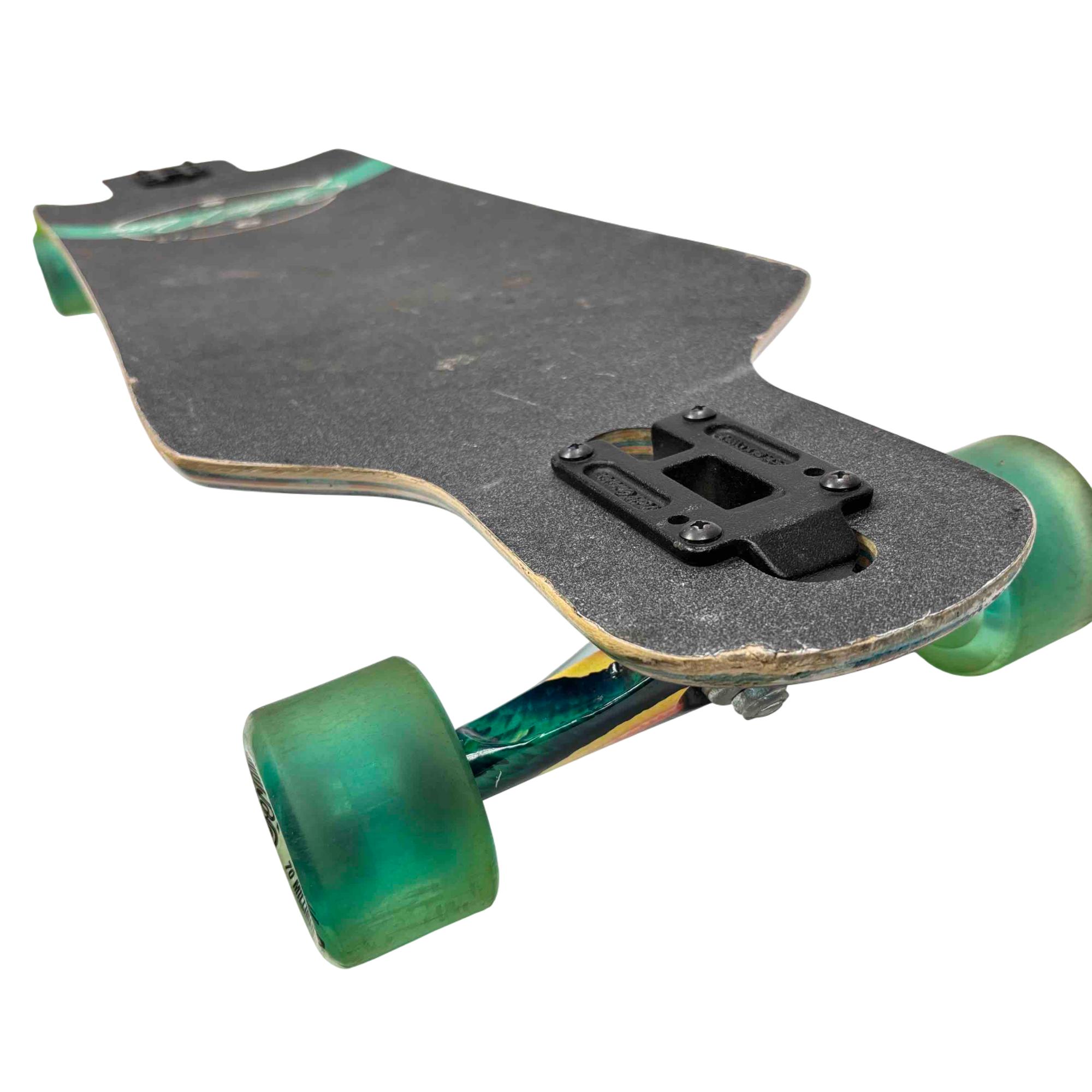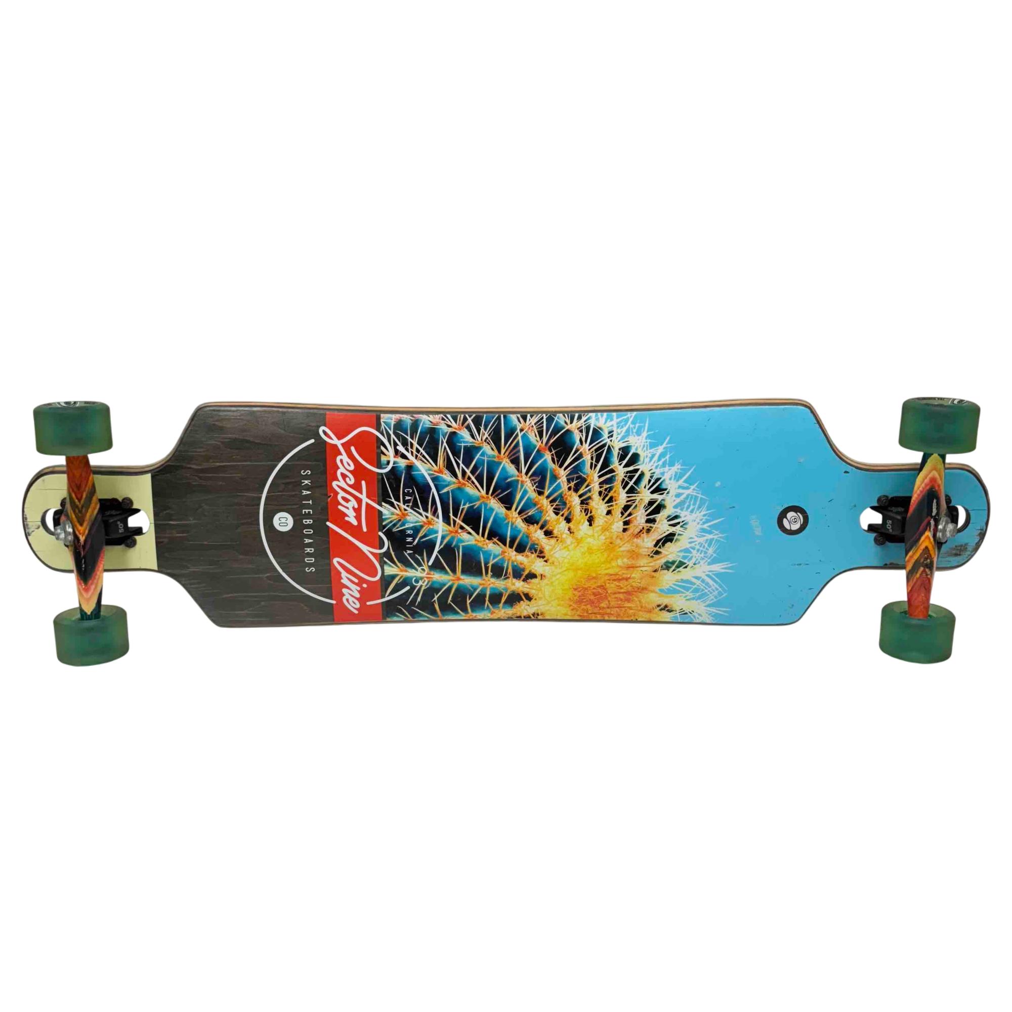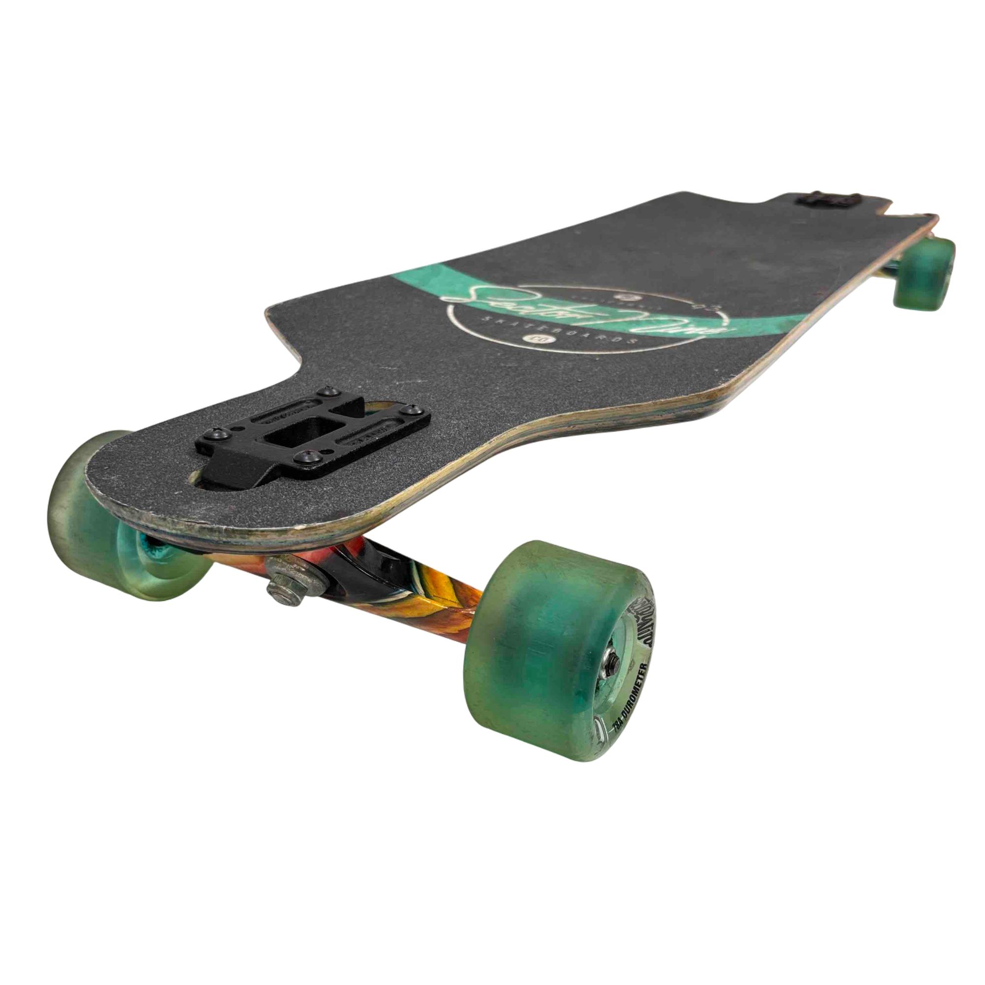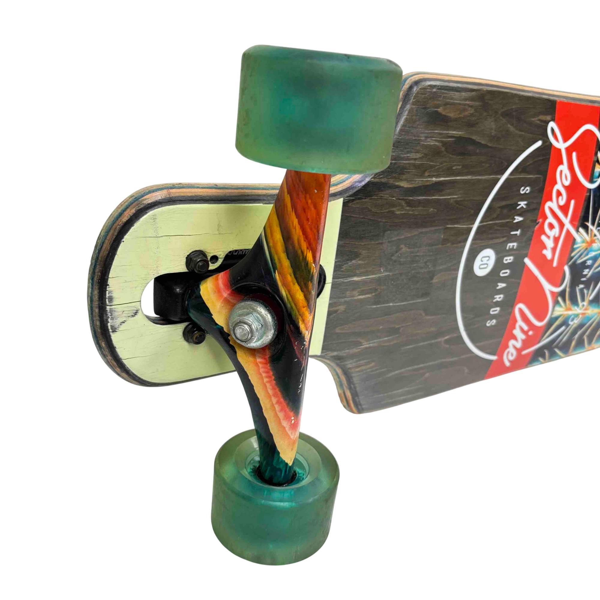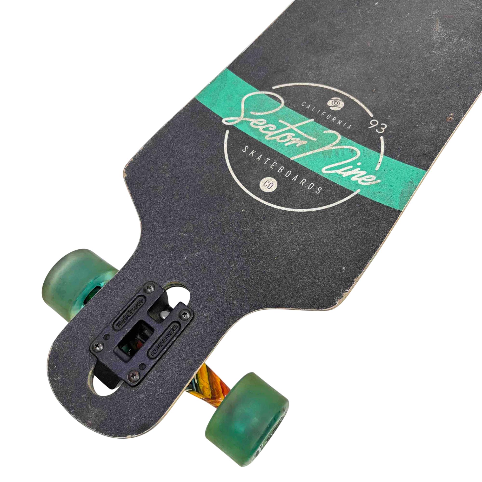 Cruise the streets in style with the Sector 9 Meridian Longboard. This high-performance board is equipped with vibrant green wheels and a stunning design, making it the perfect choice for both beginners and experienced riders who want a smooth and stable ride. Whether you're carving down hills or commuting to school, this longboard promises a top-notch experience with its durable construction and eye-catching aesthetic.