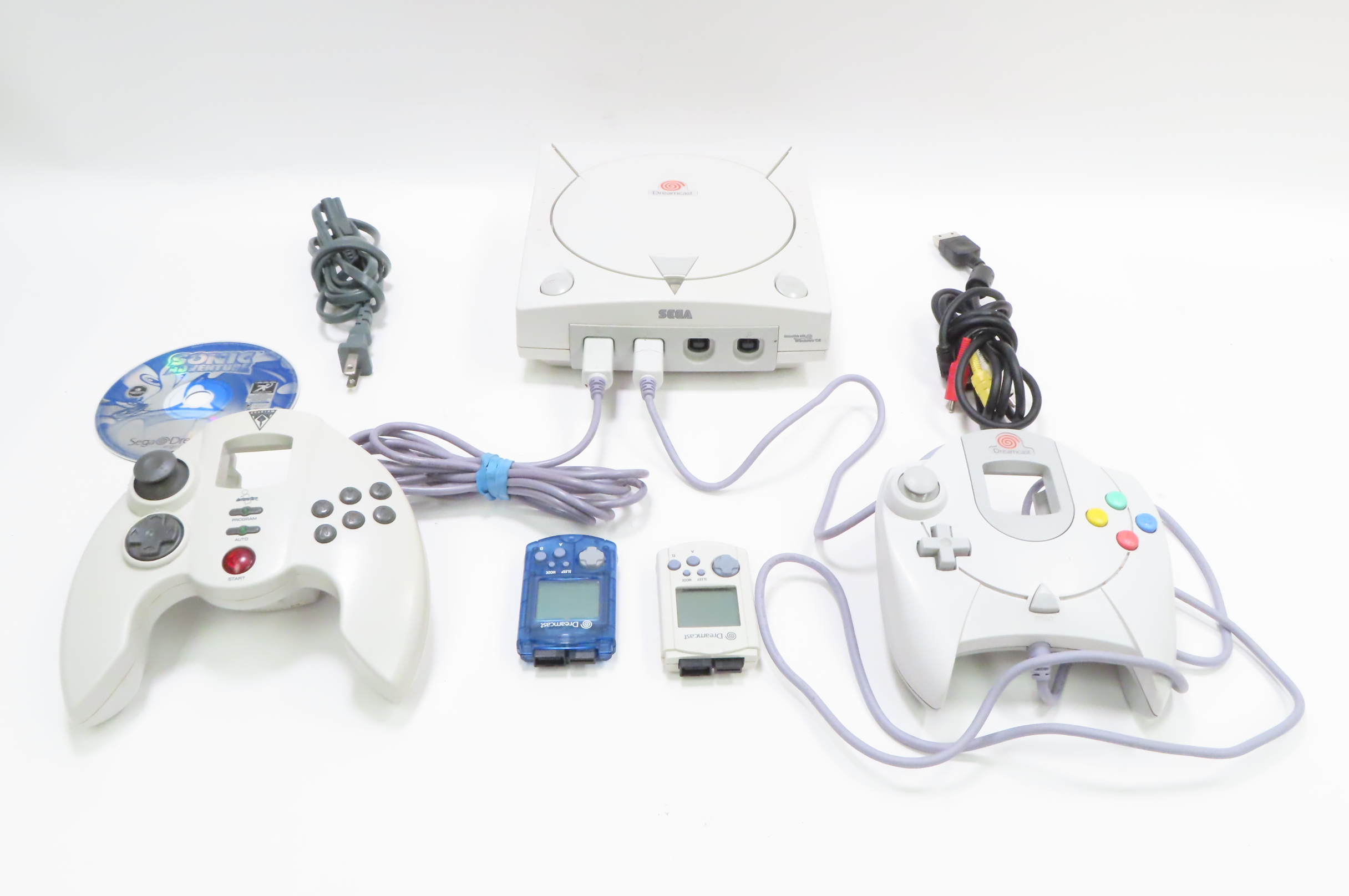 The Dreamcast system is, in a word, awesome. Fire up Soul Calibur, and instantly you'll appreciate that the graphics and gameplay are even better than in the arcade version. And Sonic Adventure, with its light-speed gameplay, is sure to wow even the most jaded gamer. Custom-made video, audio, and processor technology blows away the Nintendo 64 and PlayStation and puts Dreamcast in the same league as PS2 and Xbox. More than just a memory card, the VMU is a miniature portable game system that fits inside a controller--so its LCD screen is easily seen by you but hidden from your opponent.
