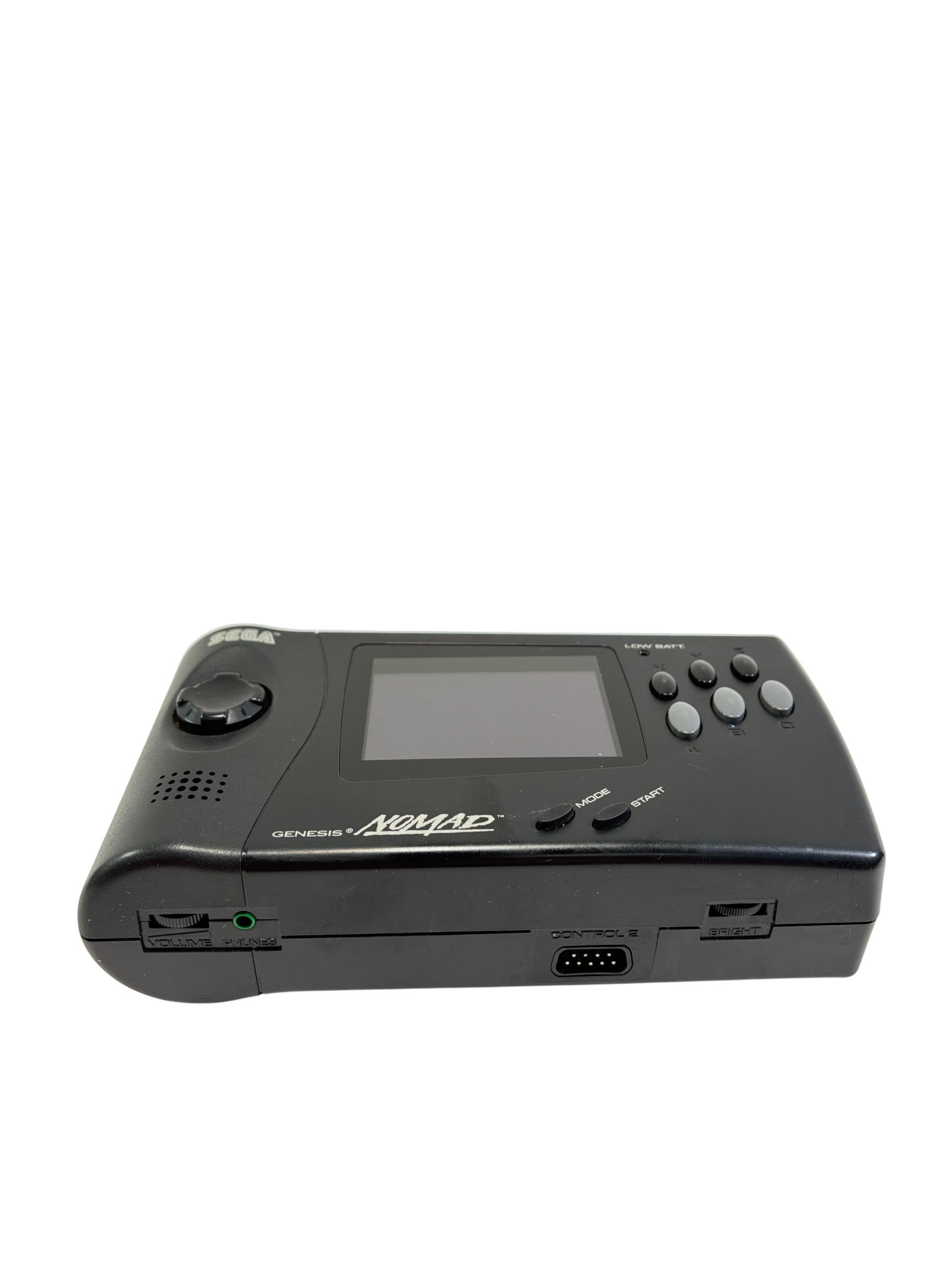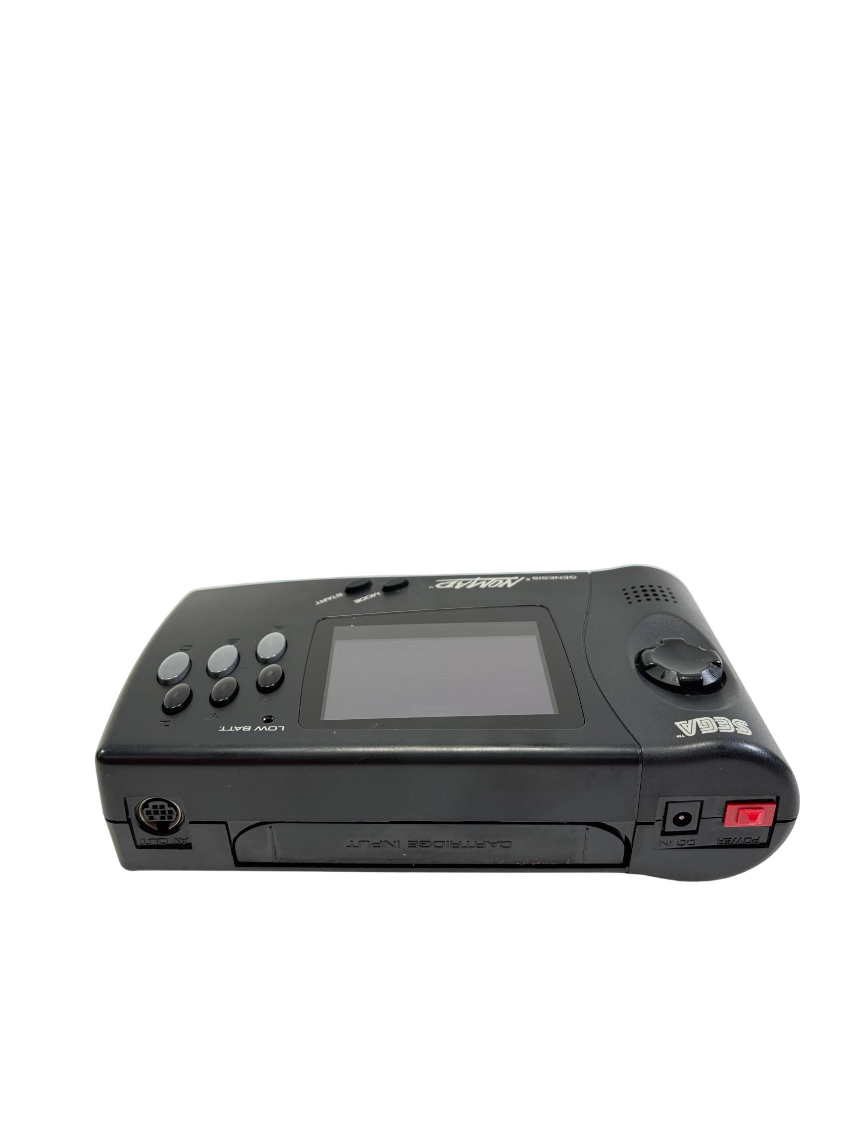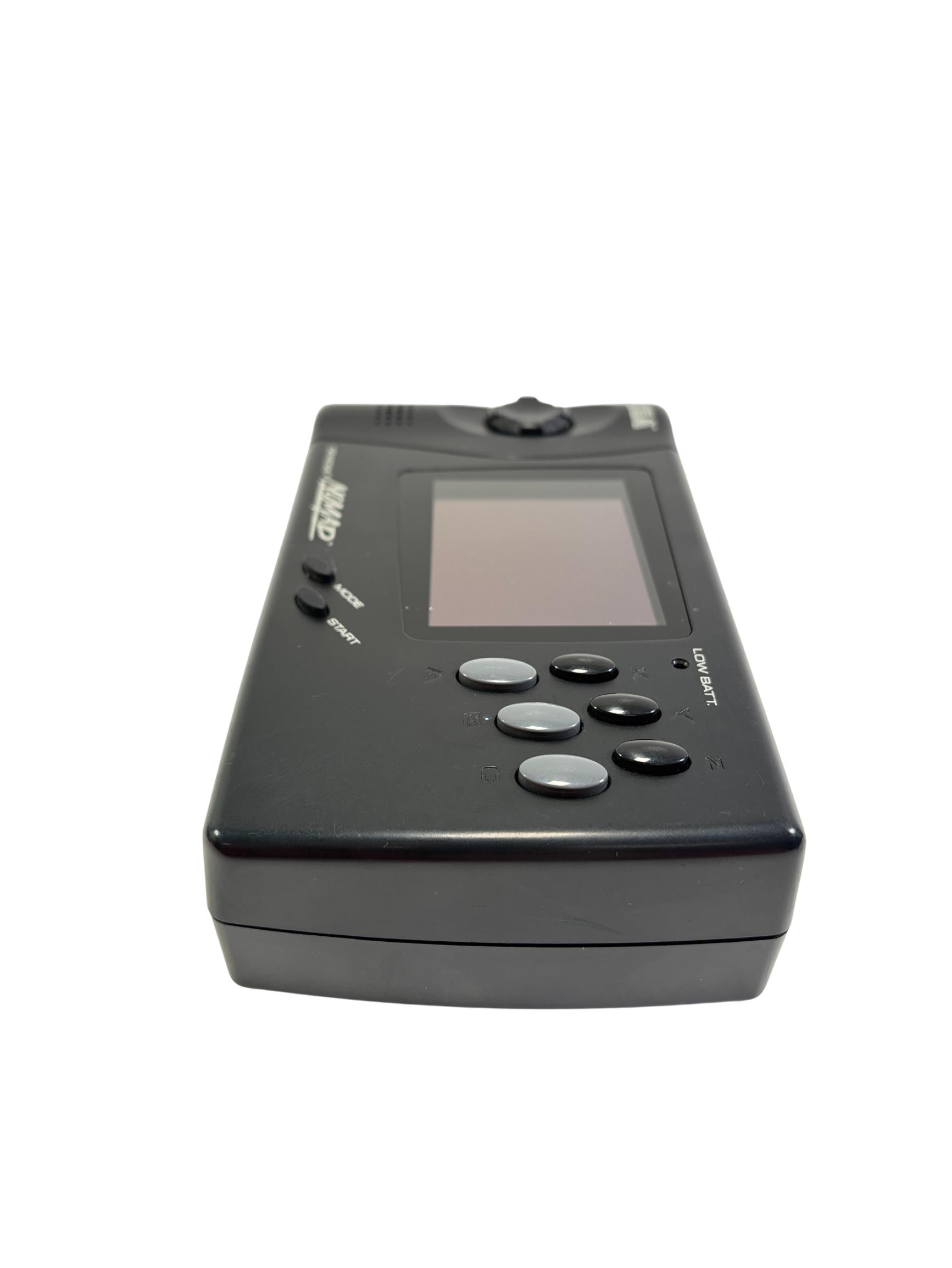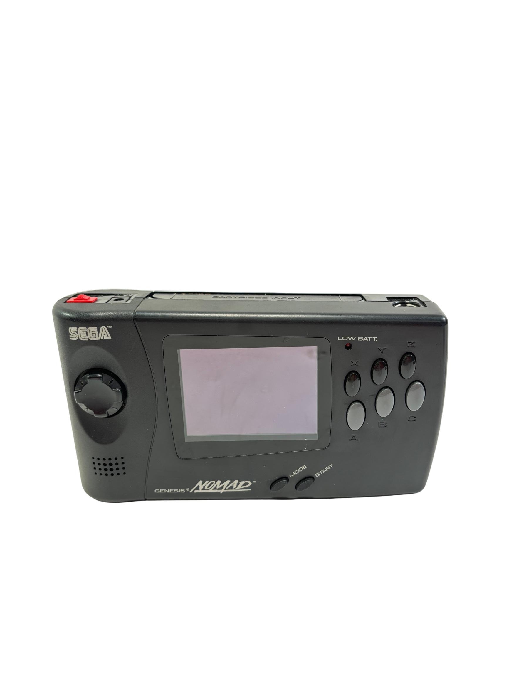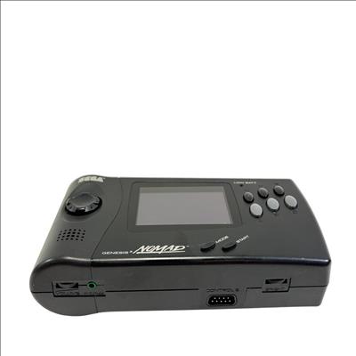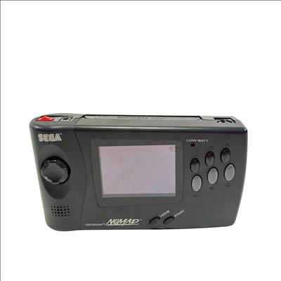 Sega Genesis Nomad MK-6100 is a black handheld gaming console featuring a full-color screen and classic control layout designed for portable play of Sega Genesis game cartridges. This device offers authentic gameplay of retro titles such as Desert Strike and Super Baseball 2020 while maintaining compatibility with the expansive Sega Genesis library. With its ergonomic design and vibrant display, the Nomad provides a nostalgic yet practical gaming experience for enthusiasts of vintage electronics.