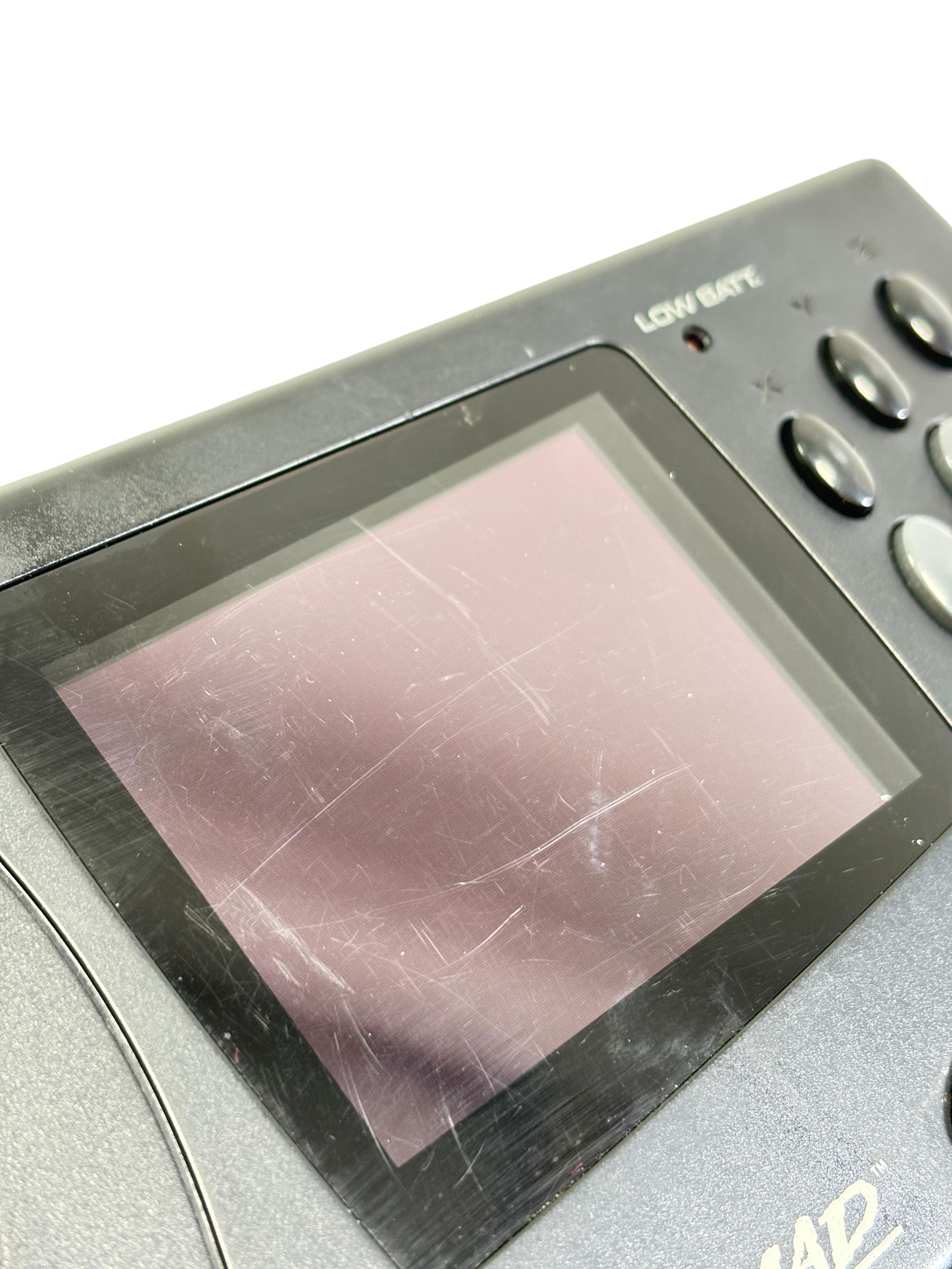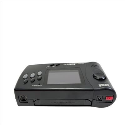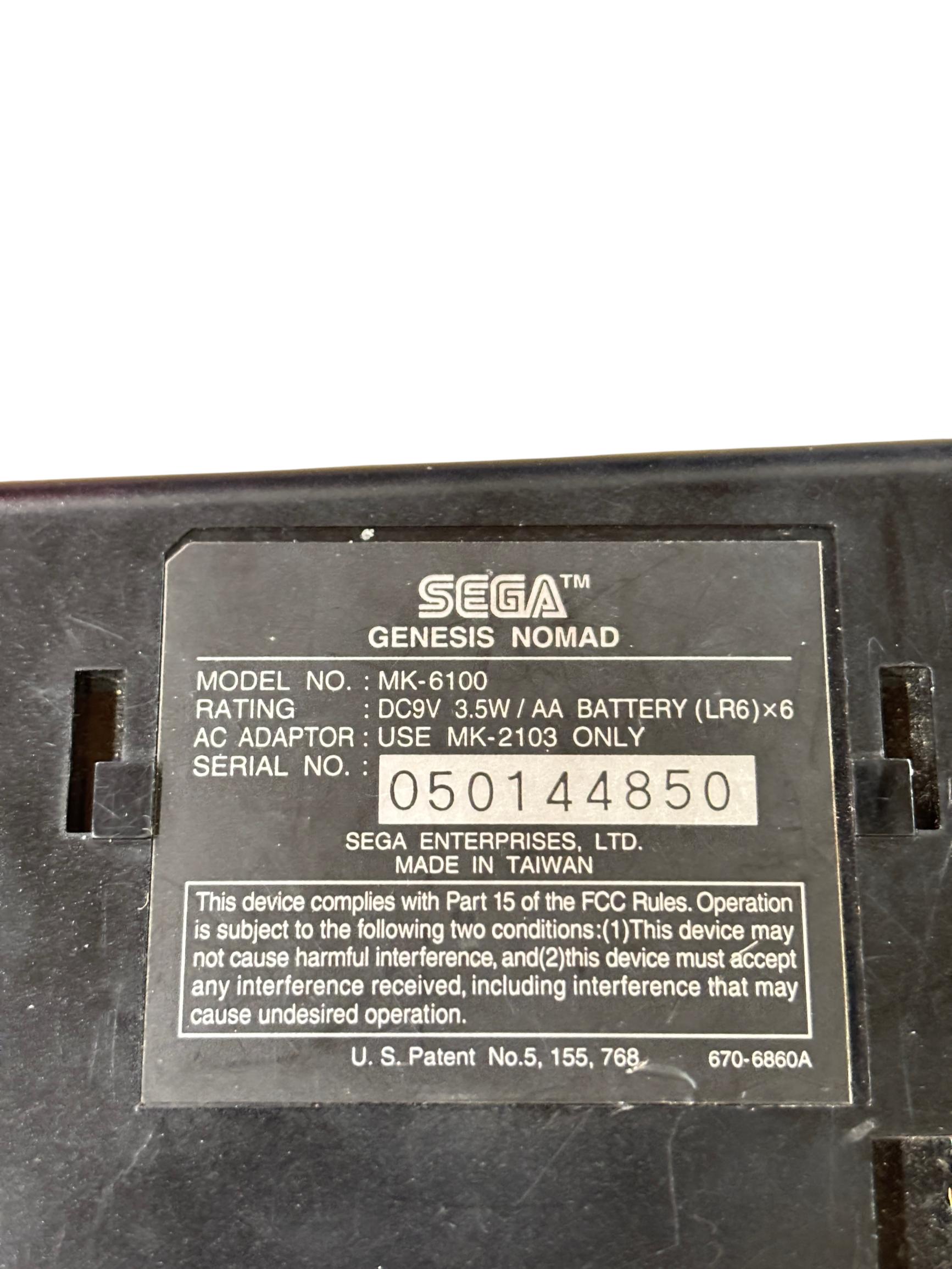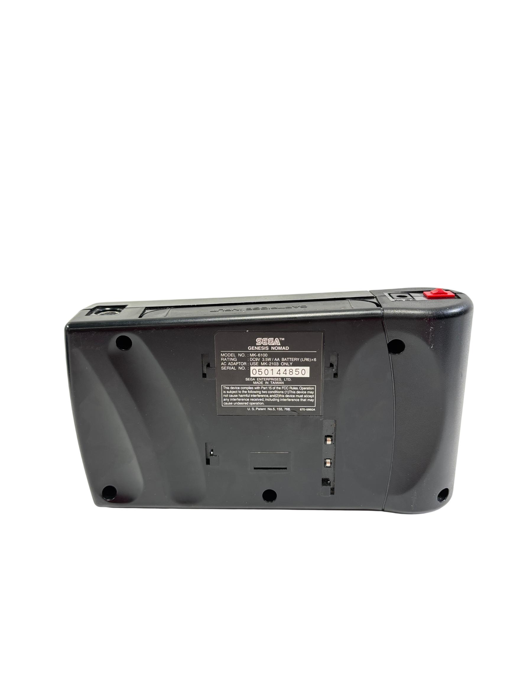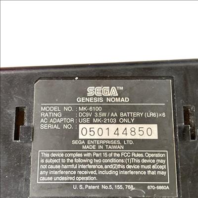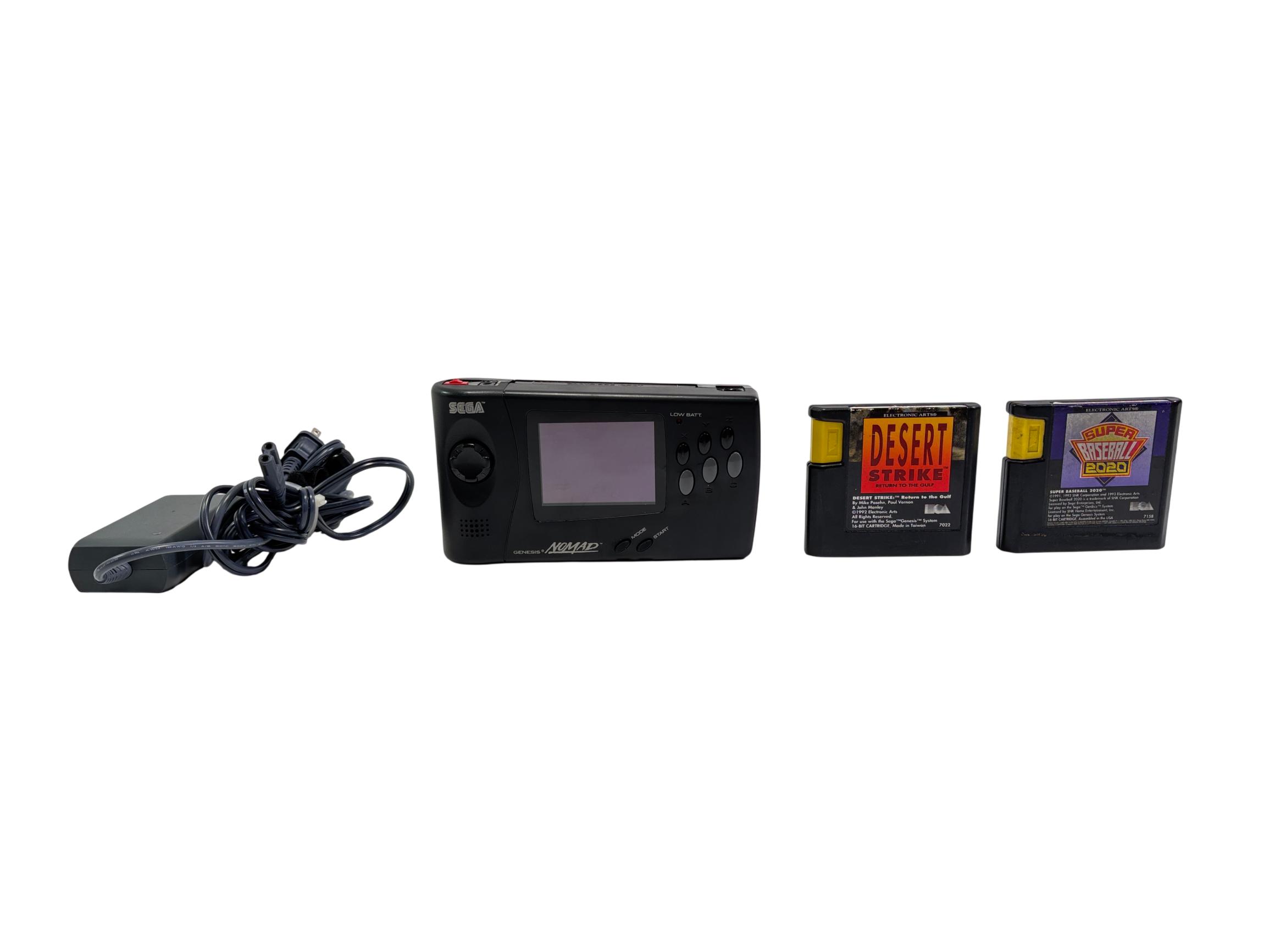 Sega Genesis Nomad MK-6100 is a black handheld gaming console featuring a full-color screen and classic control layout designed for portable play of Sega Genesis game cartridges. This device offers authentic gameplay of retro titles such as Desert Strike and Super Baseball 2020 while maintaining compatibility with the expansive Sega Genesis library. With its ergonomic design and vibrant display, the Nomad provides a nostalgic yet practical gaming experience for enthusiasts of vintage electronics.