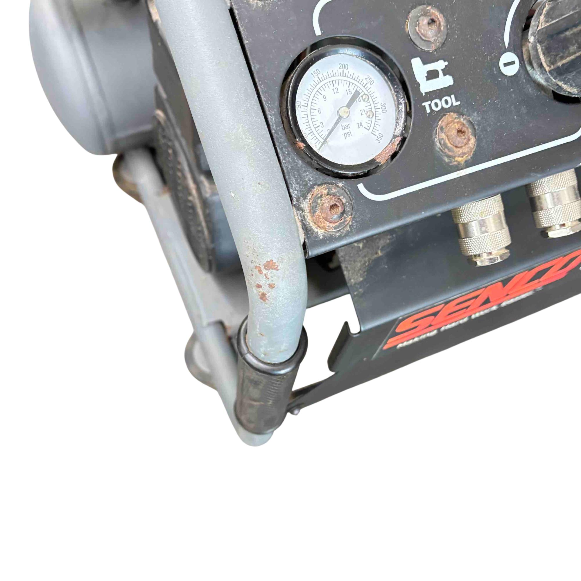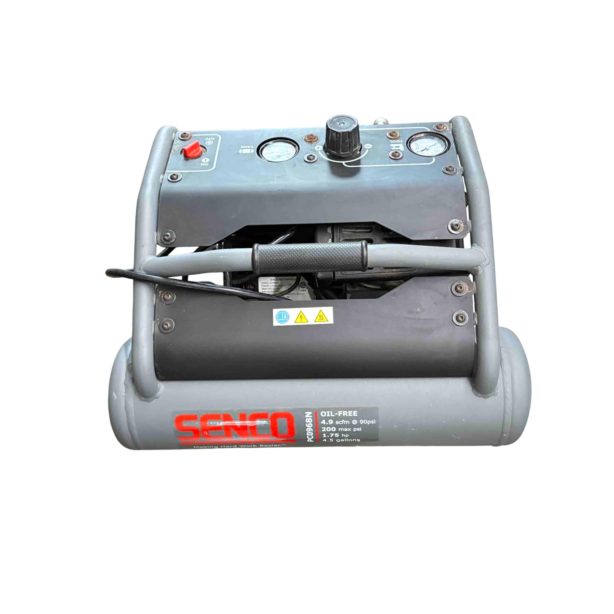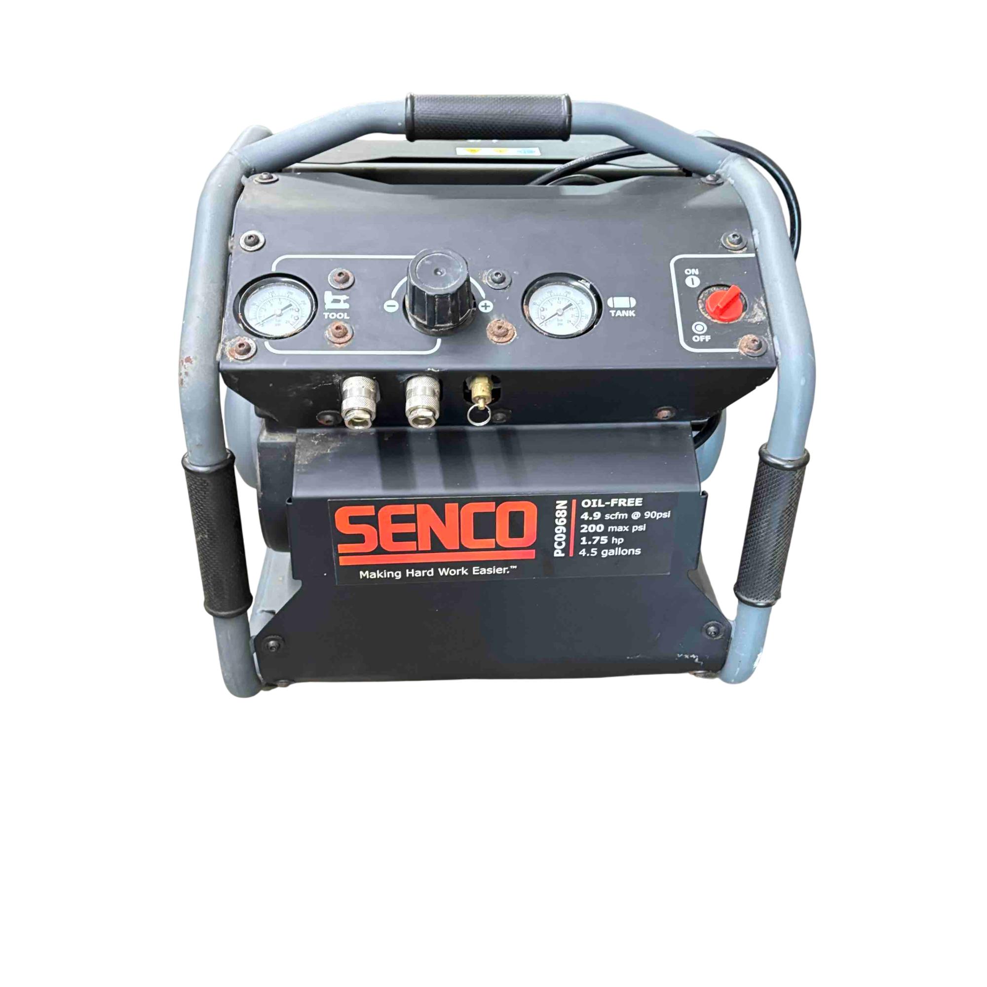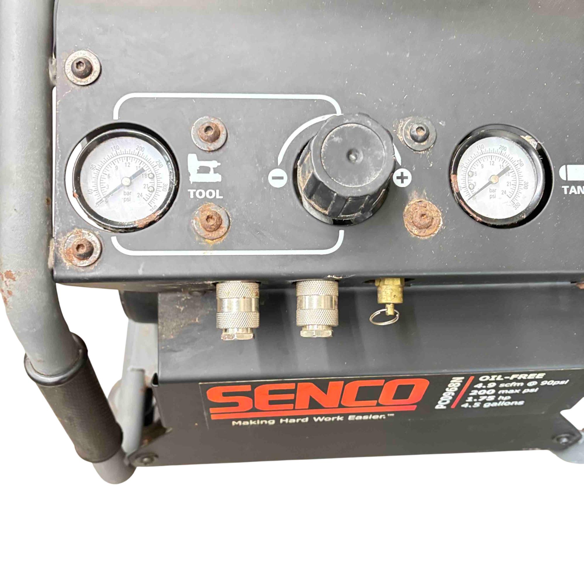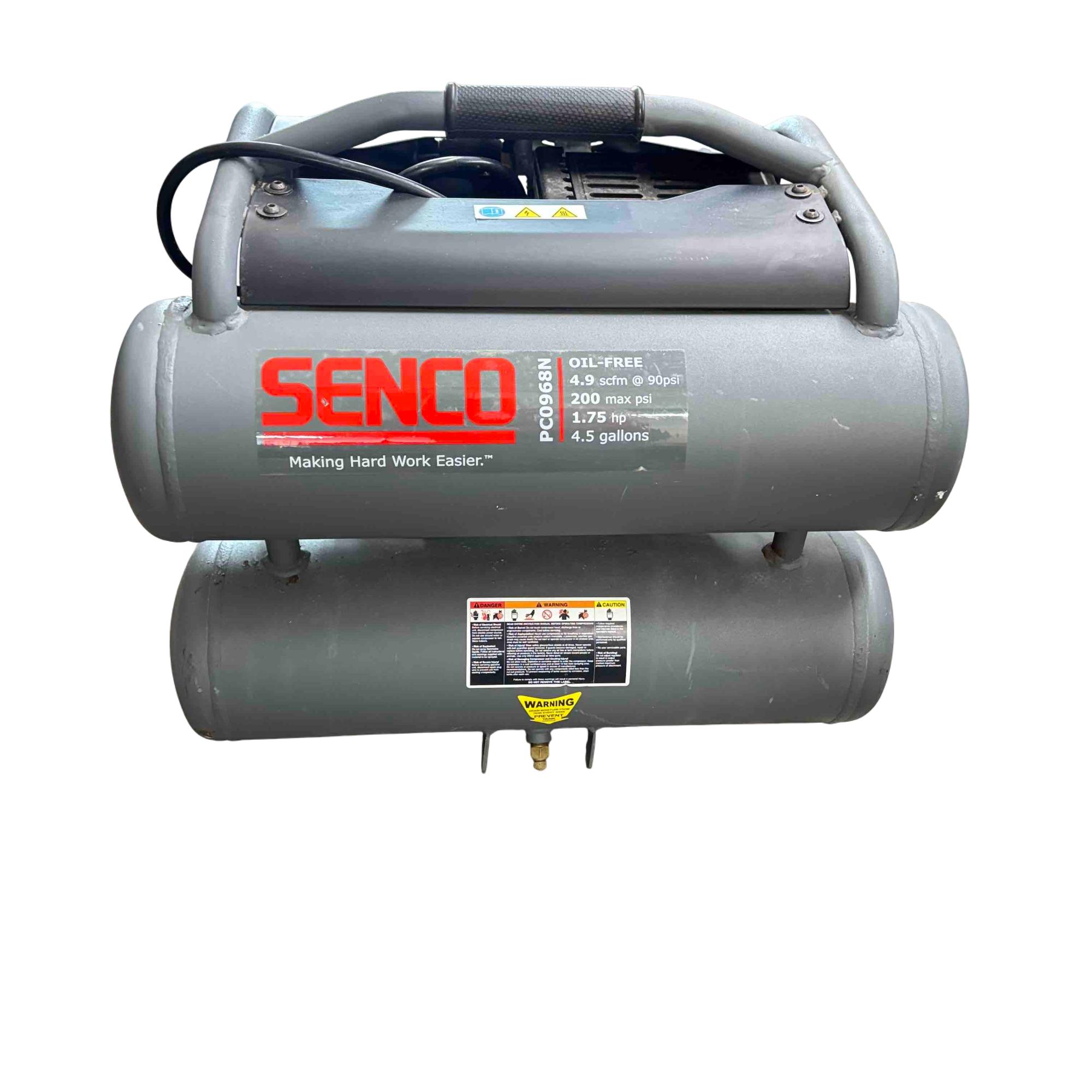 Introducing the powerful Senco PC0968N 4.5 Gallon Air Compressor, engineered for high performance with its 200 PSI capability and 1.75 HP oil-free motor. Whether you're tackling home projects or professional tasks, this robust and compact twin stack compressor ensures a reliable supply of compressed air, making hard work easier. Ideal for both enthusiasts and professionals, it combines durability with efficiency, ensuring you get the job done right.