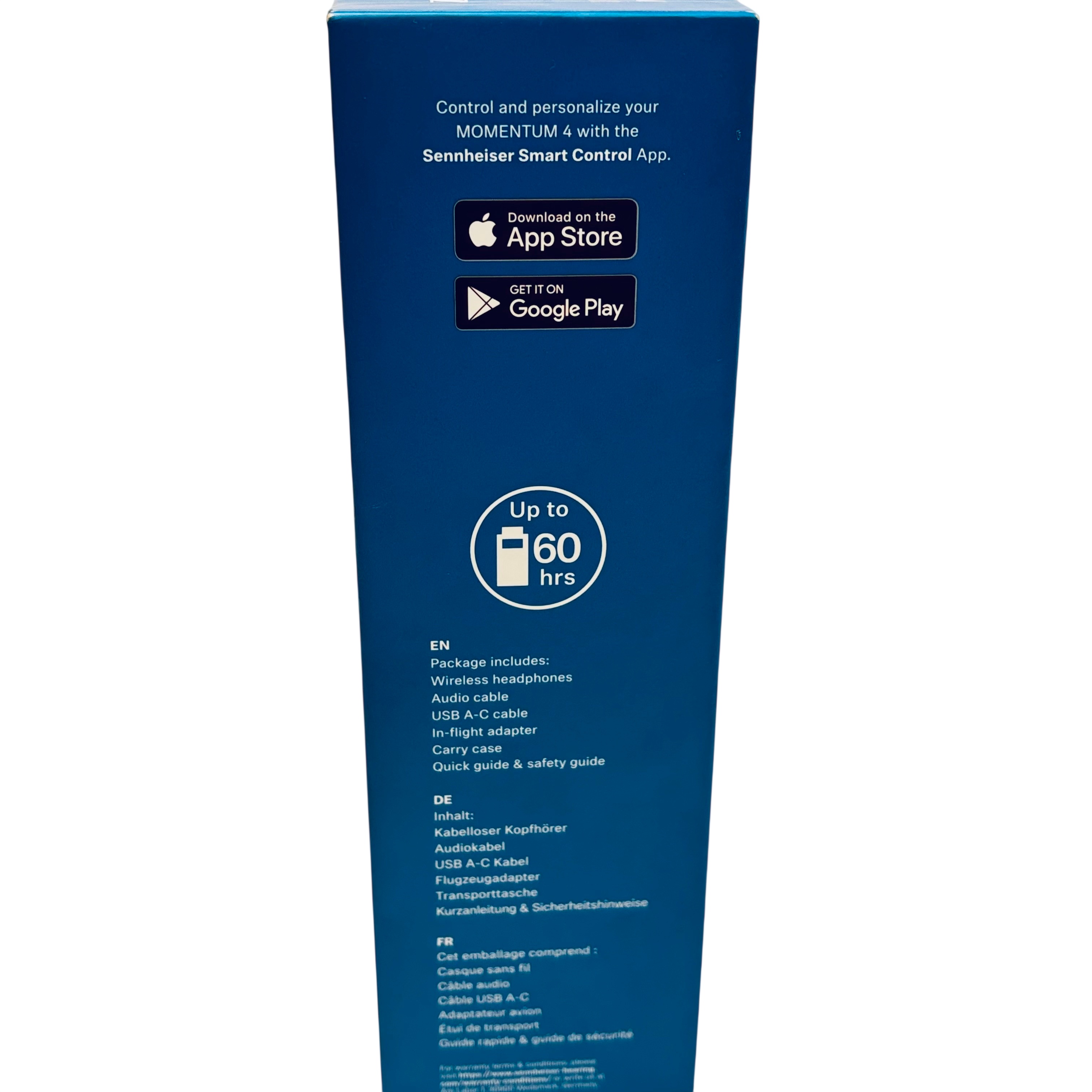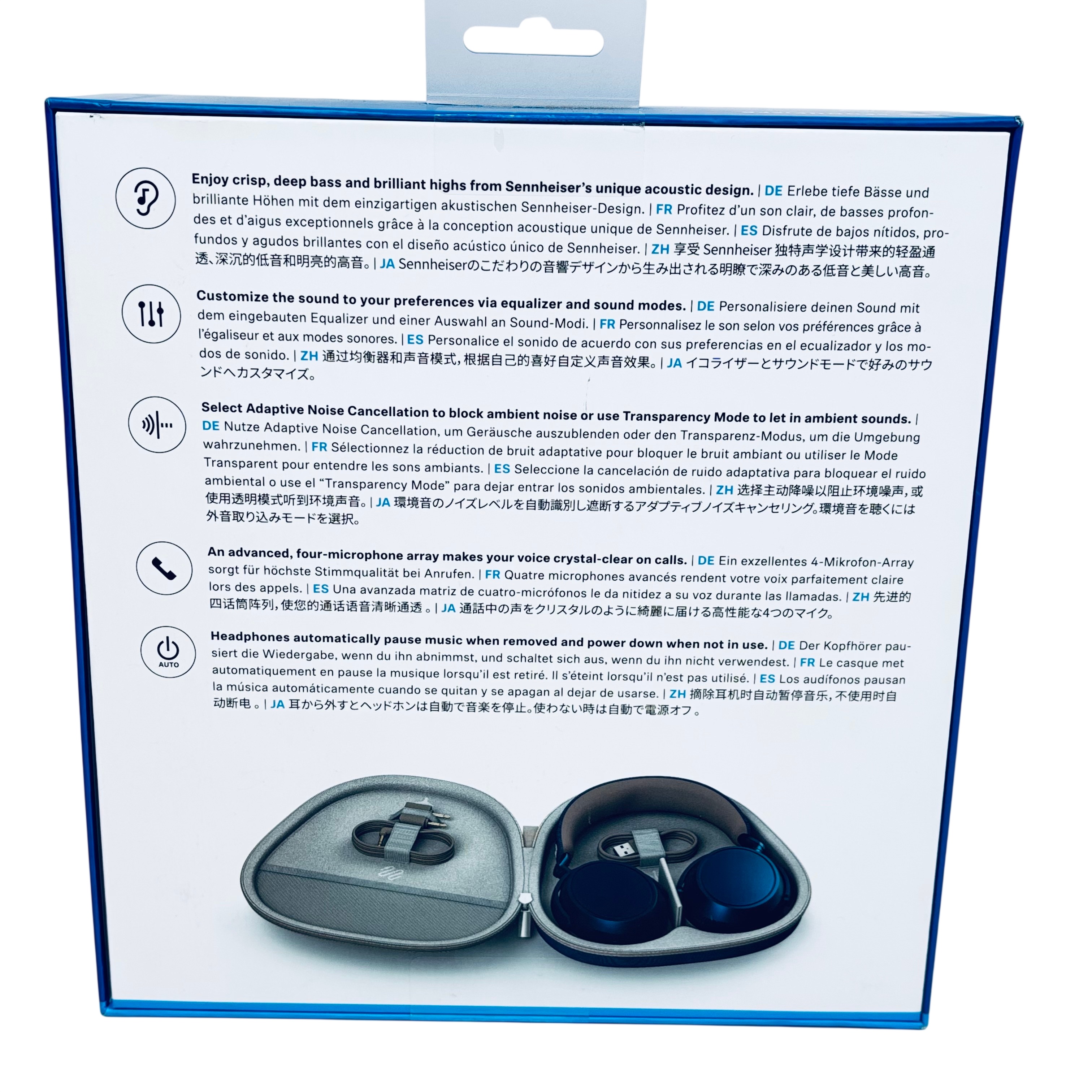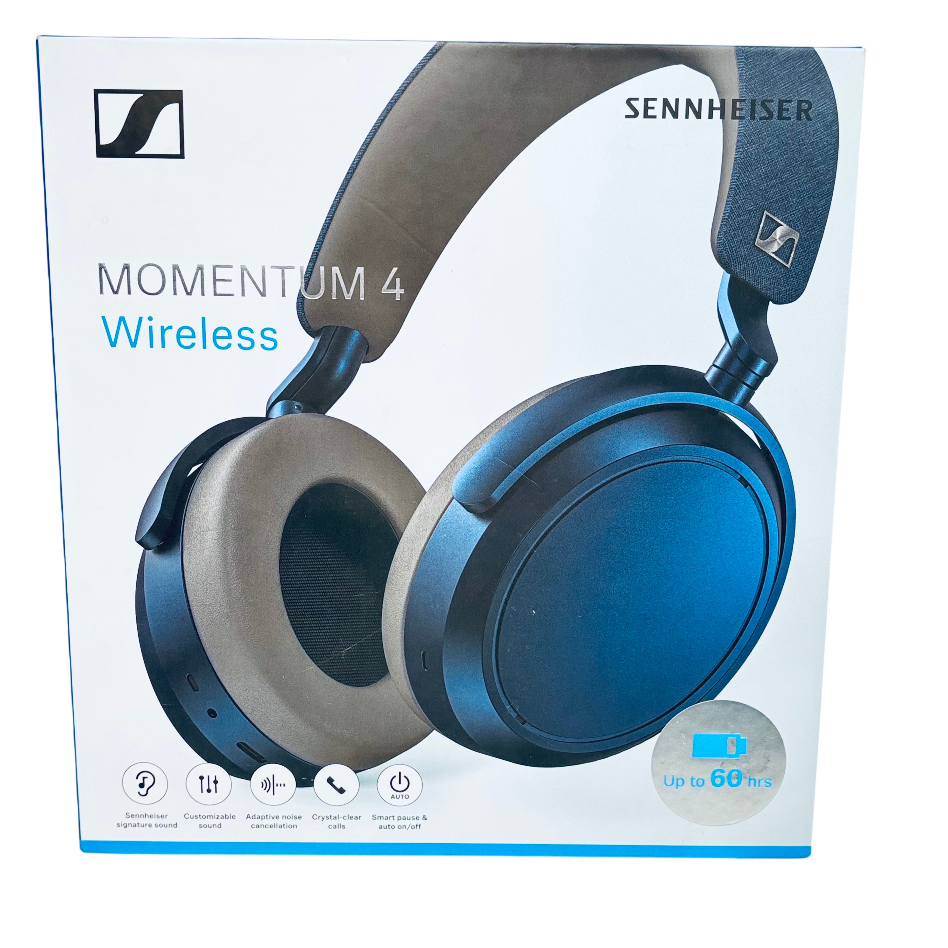 Sennheiser Momentum 4 Wireless (Model M4AEBT) delivers up to 60 hours of battery life with advanced adaptive noise cancellation for an immersive listening experience. Featuring a four-microphone array, these headphones ensure crystal-clear calls and customizable sound via an integrated equalizer and sound modes. The denim-colored over-ear design includes smart features such as automatic music pause when removed and a transparency mode to let in ambient sounds. This set includes the headphones, a carrying case, and a USB charging cable, making it ideal for daily use and travel.