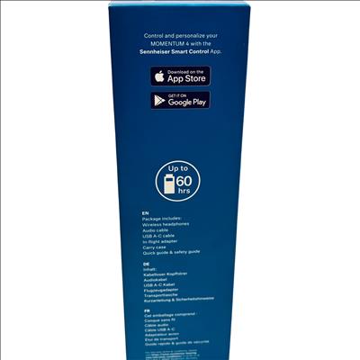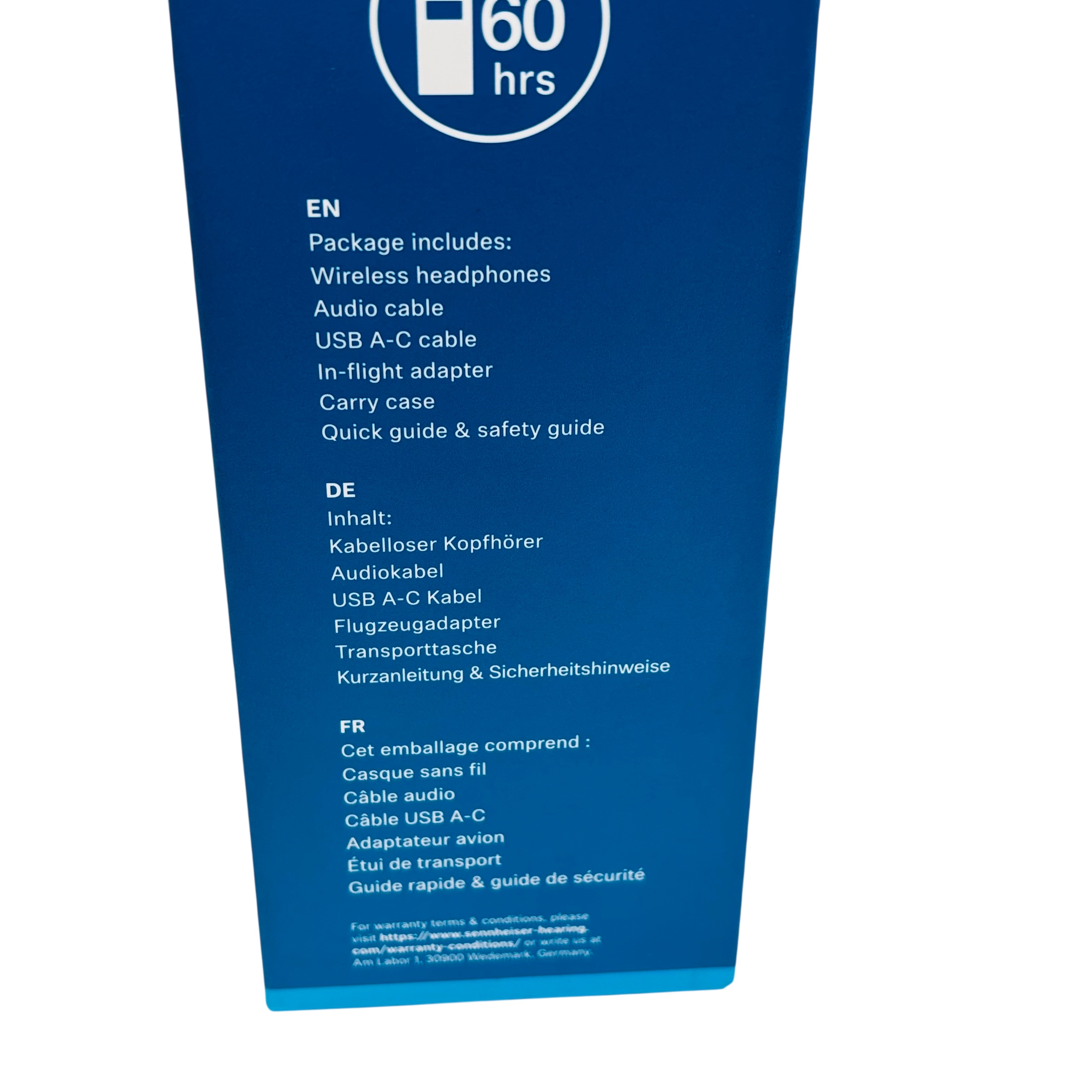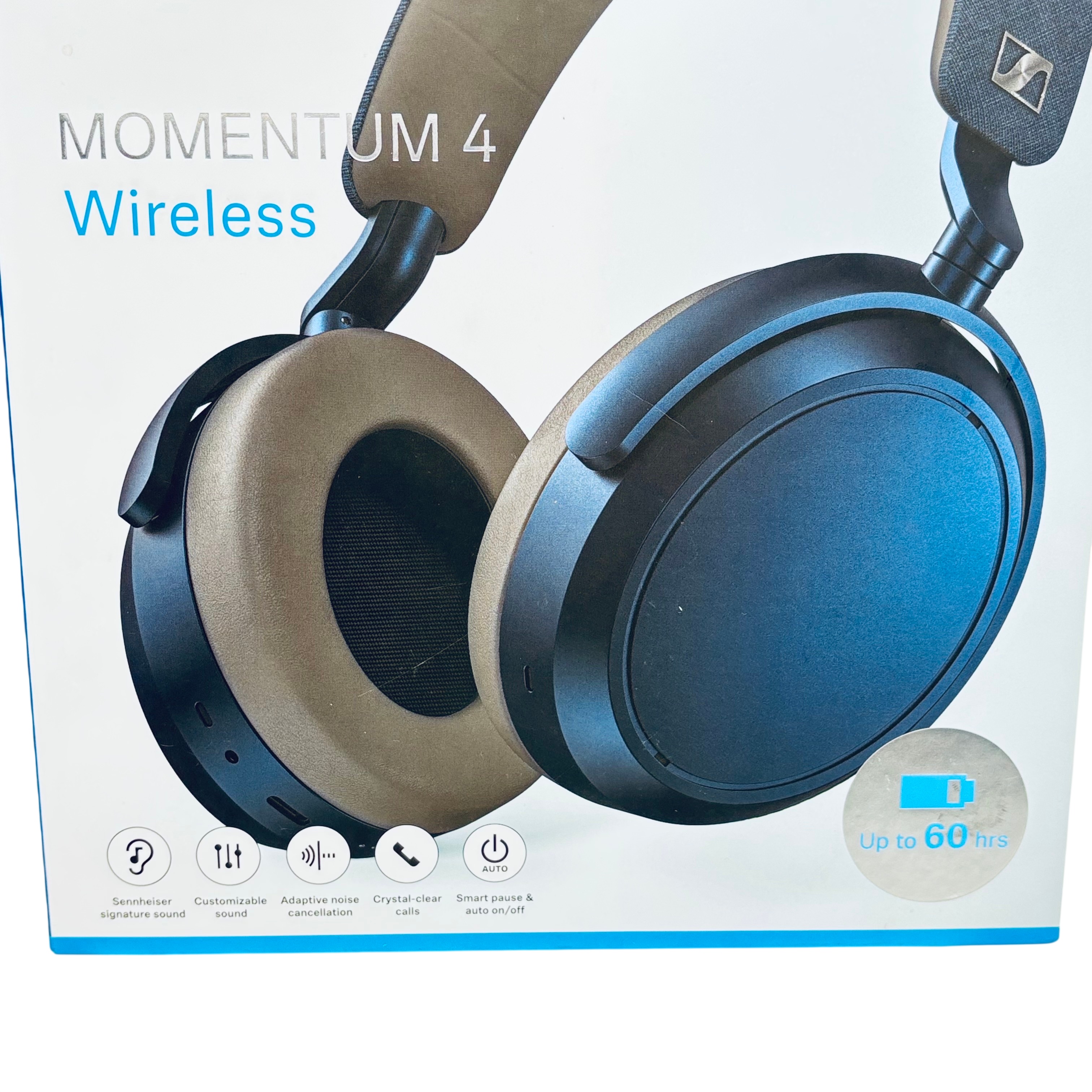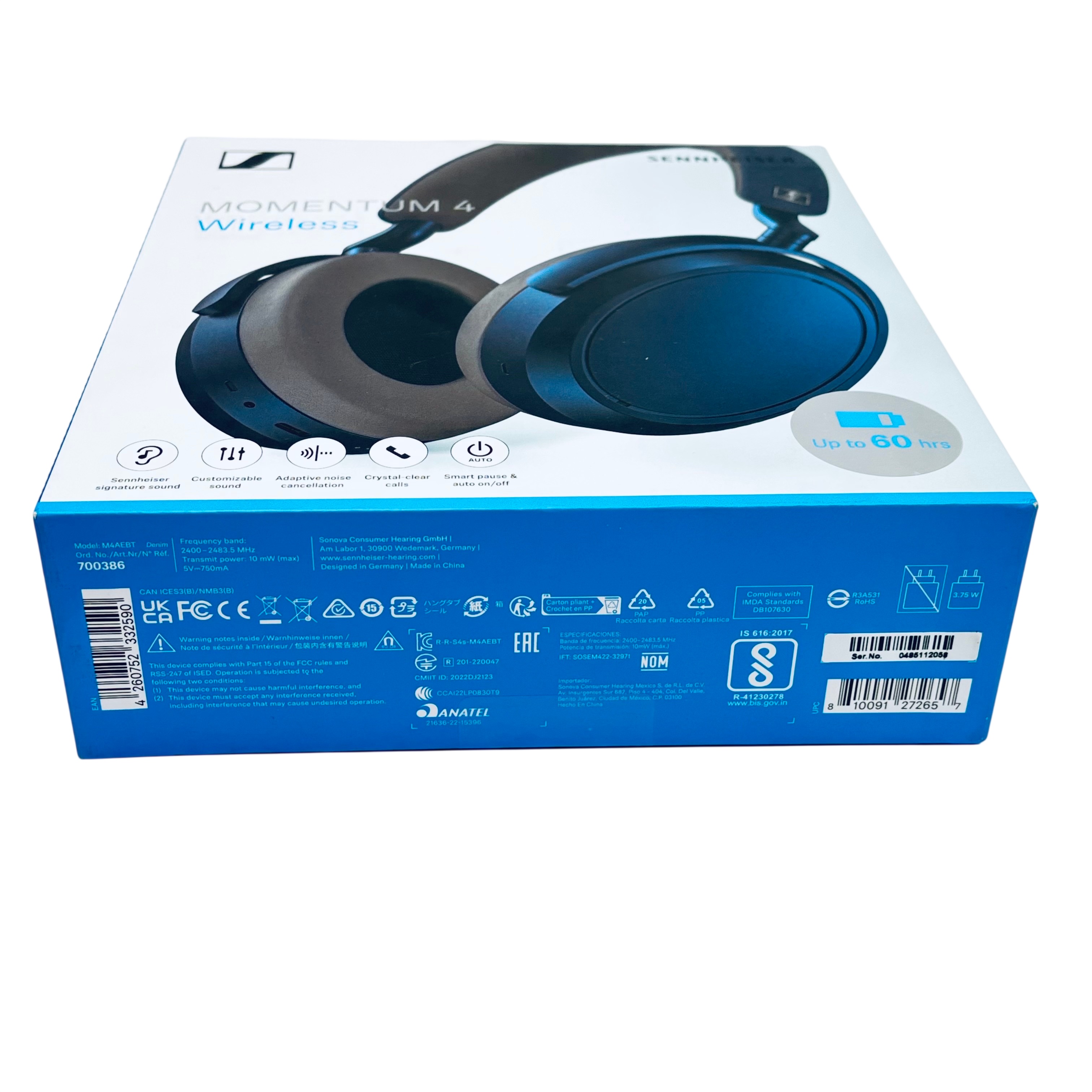Sennheiser Momentum 4 Wireless (Model M4AEBT) delivers up to 60 hours of battery life with advanced adaptive noise cancellation for an immersive listening experience. Featuring a four-microphone array, these headphones ensure crystal-clear calls and customizable sound via an integrated equalizer and sound modes. The denim-colored over-ear design includes smart features such as automatic music pause when removed and a transparency mode to let in ambient sounds. This set includes the headphones, a carrying case, and a USB charging cable, making it ideal for daily use and travel.