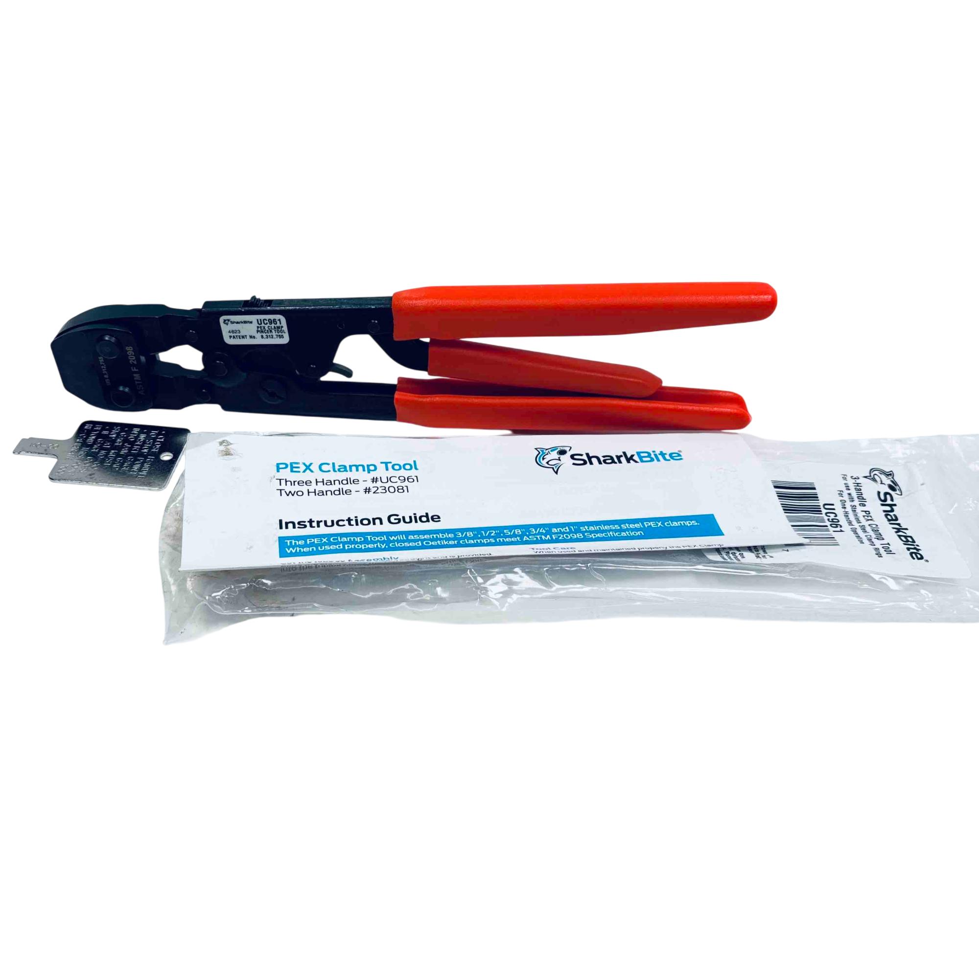 Introducing the SharkBite UC961 PEX Clamp Tool, a durable and efficient tool perfect for all your plumbing needs. Designed with three handles for enhanced grip and one-handed operation, this tool ensures precision and ease when working with stainless steel clamp rings. Whether youre a professional plumber or a DIY enthusiast, this highly reliable tool is a great addition to your toolkit.