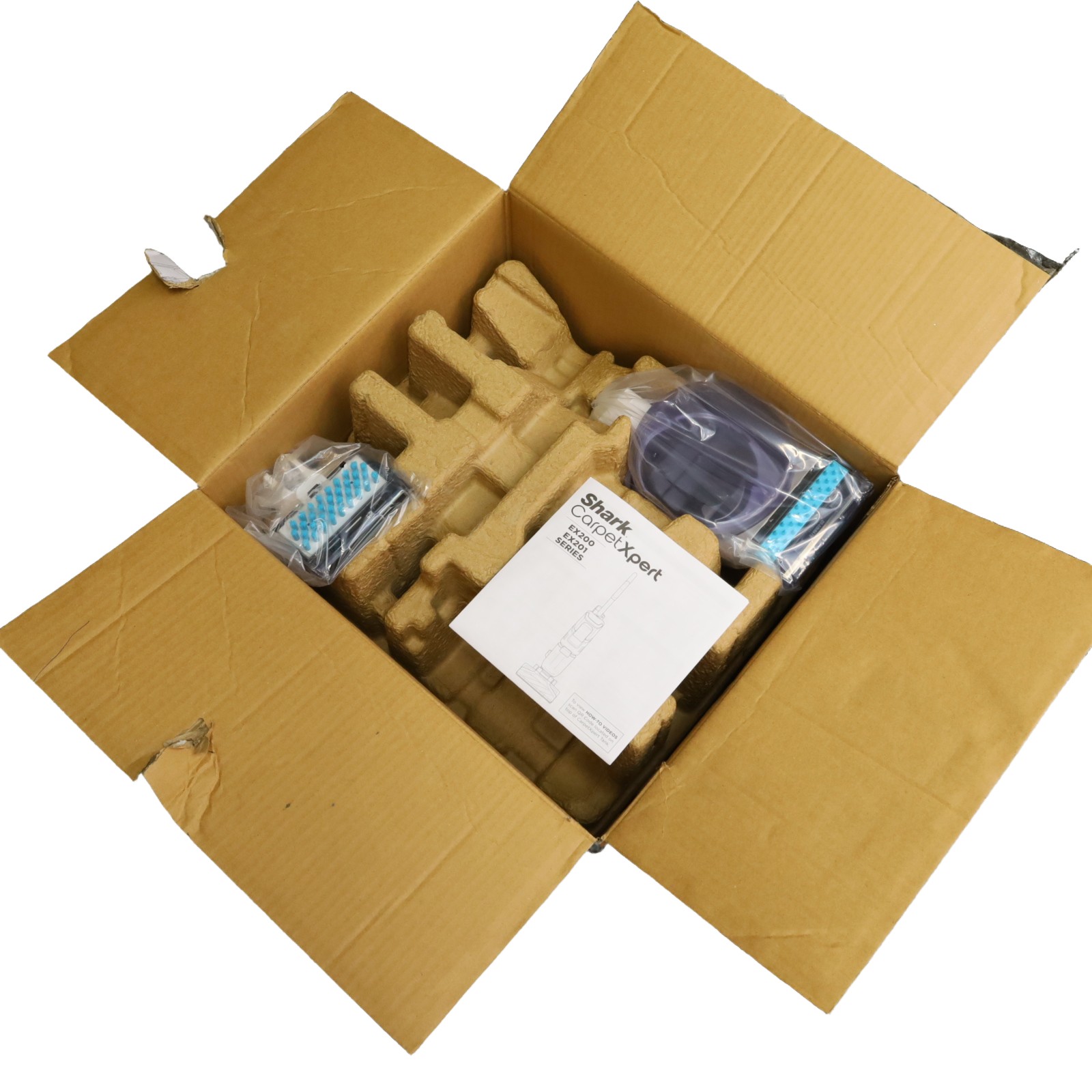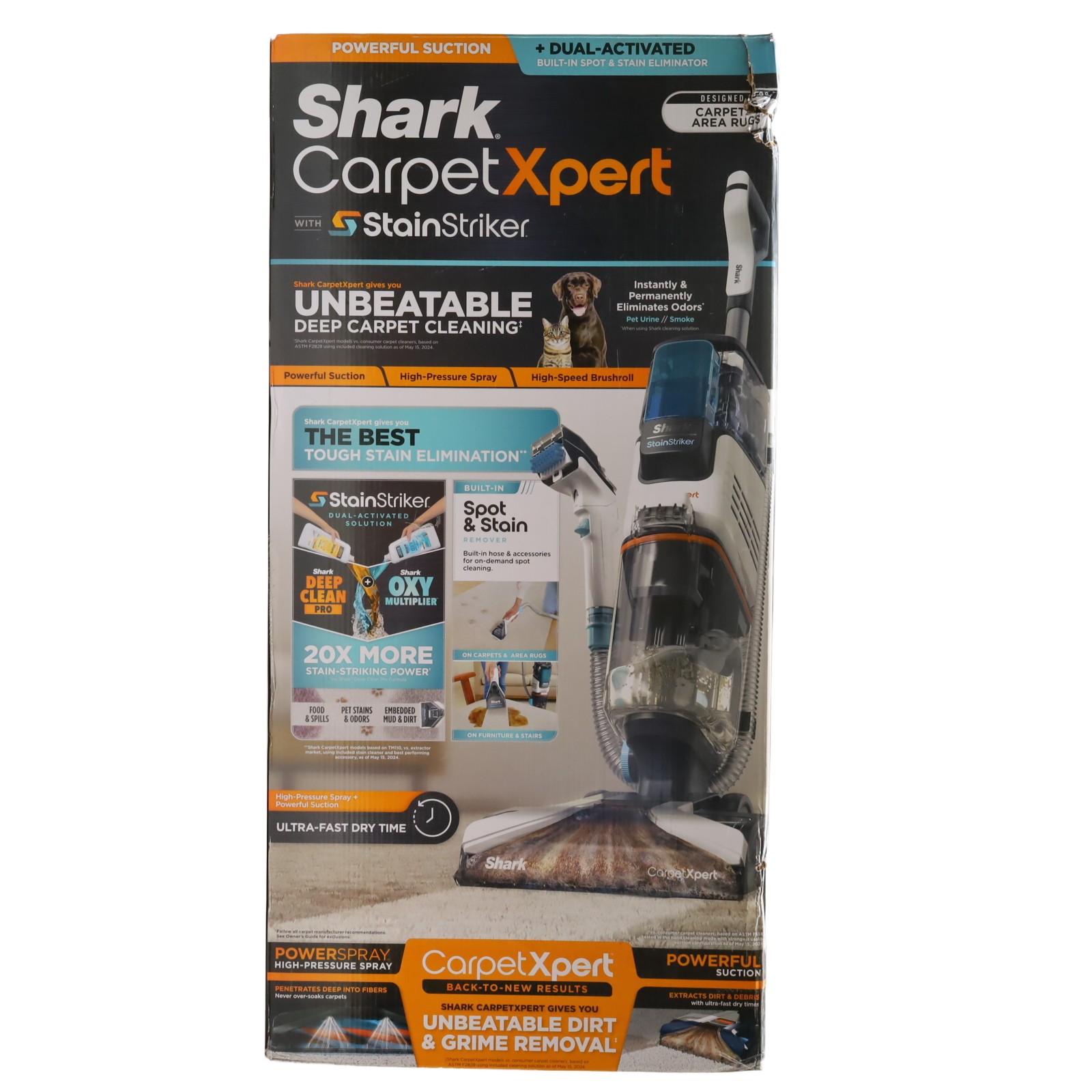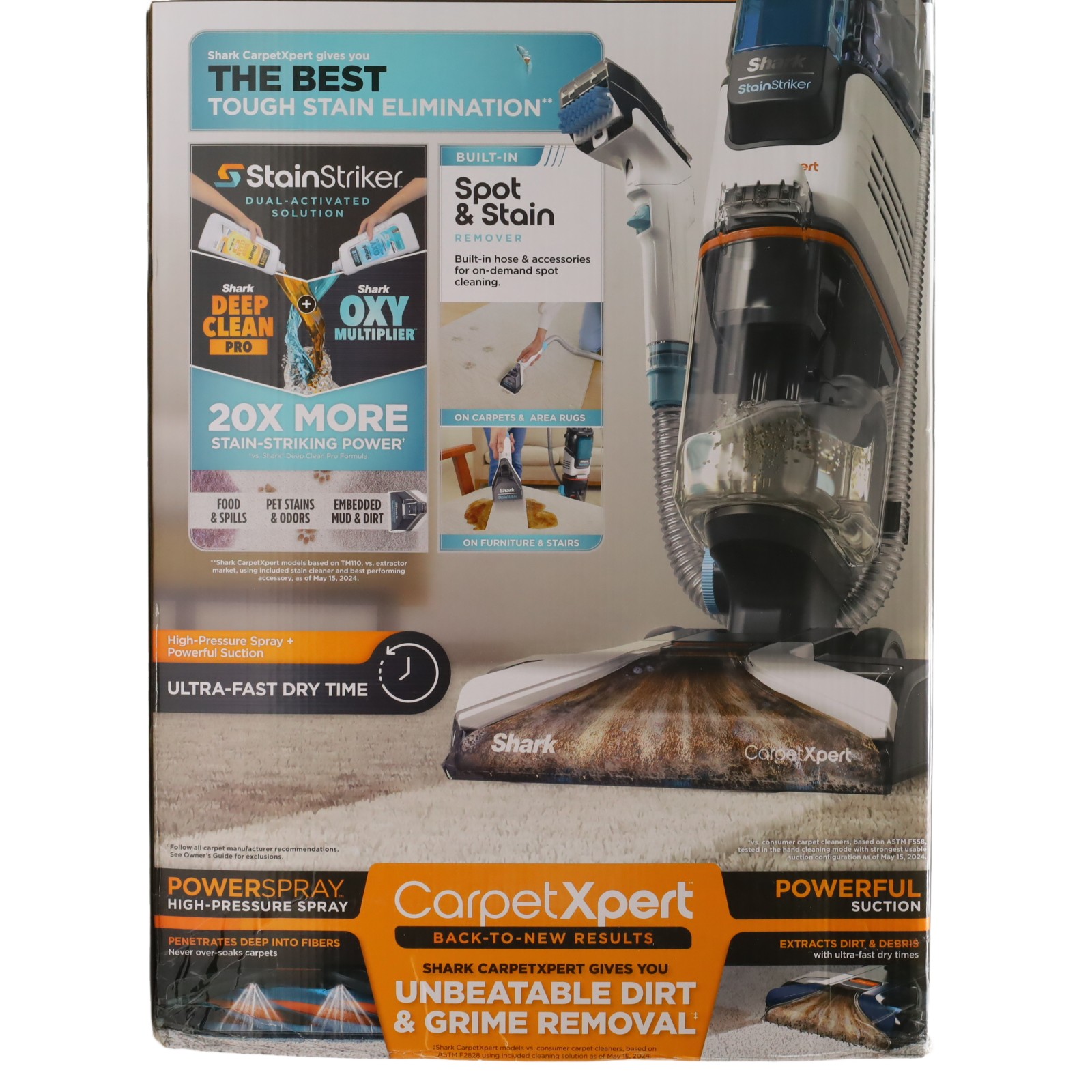 Functions as a two-in-one unit combining carpet cleaning capabilities with a handheld spot and stain eliminator. The device utilizes powerful suction and a high-pressure spray system to remove dirt and grime from carpets. A built-in tool mixes two unique chemicals on contact to deliver effective stain-striking power without the need for premixing formulas. Additional features include a high-speed brushroll integrated into the carpet cleaning process. The unit is capable of eliminating pet odors such as urine and smoke while providing fast dry times to prevent oversoaking carpets.