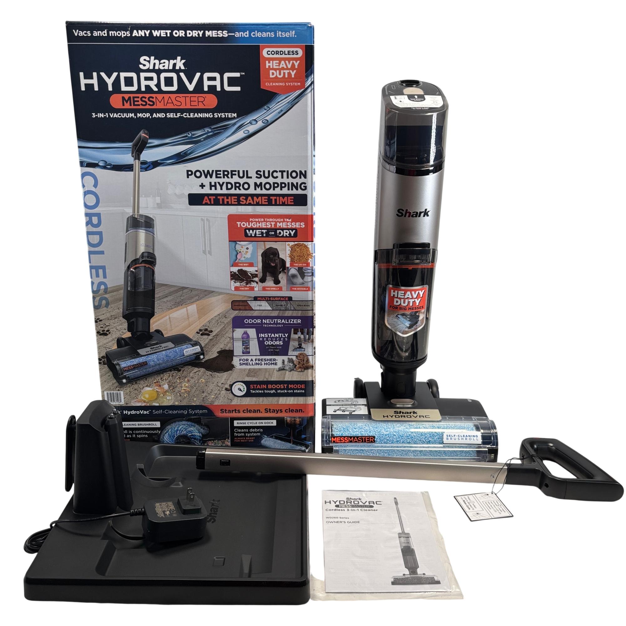 The Shark HydroVac MessMaster Cordless 3-in-1 Wet/Dry Vacuum Cleaner WD261 delivers powerful suction combined with hydro mopping technology to tackle both wet and dry messes on multiple floor types. Designed for heavy-duty cleaning, this versatile cordless vacuum features a self-cleaning brushroll and stain boost mode to efficiently clean tough, stuck-on debris while neutralizing odors instantly.