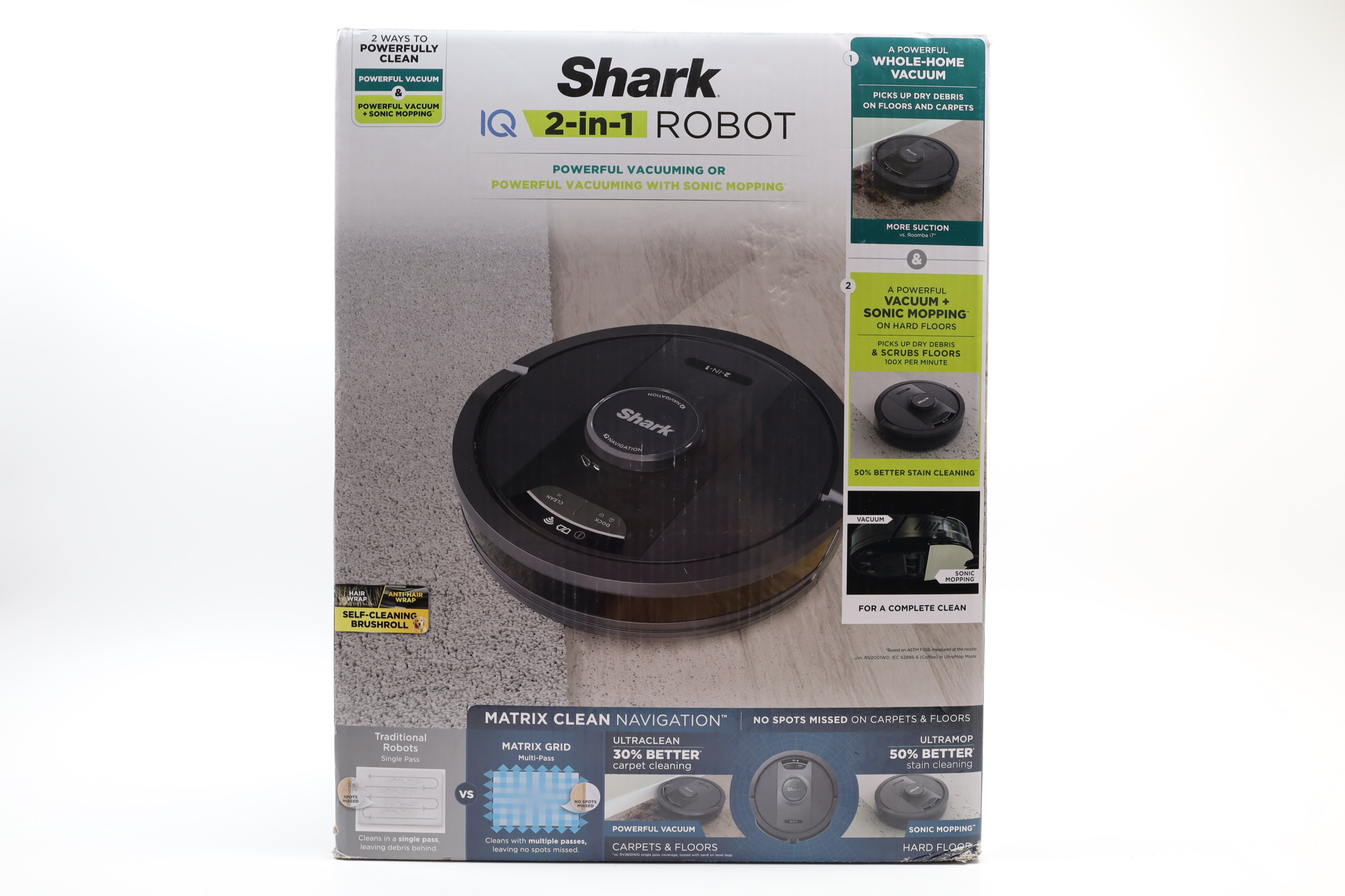 Combines vacuuming and sonic mopping capabilities to offer a comprehensive cleaning solution for homes. This device features powerful suction suitable for both hard floors and rugs, and it can simultaneously mop hard surfaces with sonic technology for a thorough clean. Its Matrix Clean Navigation ensures precise movement and coverage, making sure no spots are missed by cleaning in a systematic grid and taking multiple passes over dirt and debris. The vacuum also includes advanced home mapping with 360 LiDAR vision for efficient navigation, avoiding obstacles and adapting to changes in your home environment. With voice control compatibility with Amazon Alexa and Google Assistant, users can easily set schedules, start cleanings, or designate no-go zones. Additionally, its self-cleaning brushroll makes it especially effective for homes with pets, handling hair and stuck-on messes with ease.