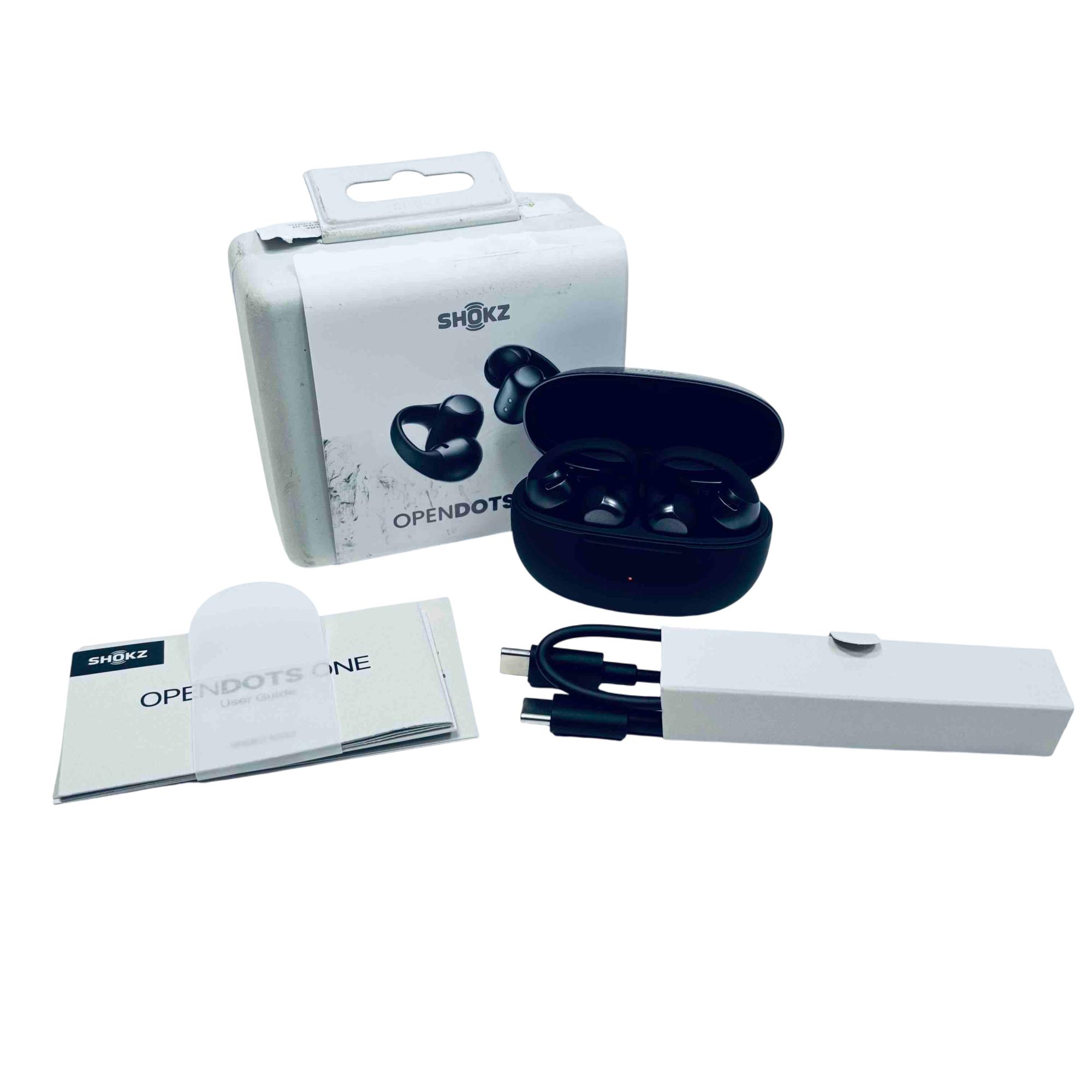 Experience premium, open-ear listening with the Shokz OpenDots ONE, designed for superior comfort and safety. These wireless earbuds offer an ultra-lightweight fit, secure clip-on design, and advanced Dolby audio quality, ideal for active lifestyles. Enjoy sweat/water resistance, fast USB-C charging, and long-lasting battery life for music, calls, and workouts.