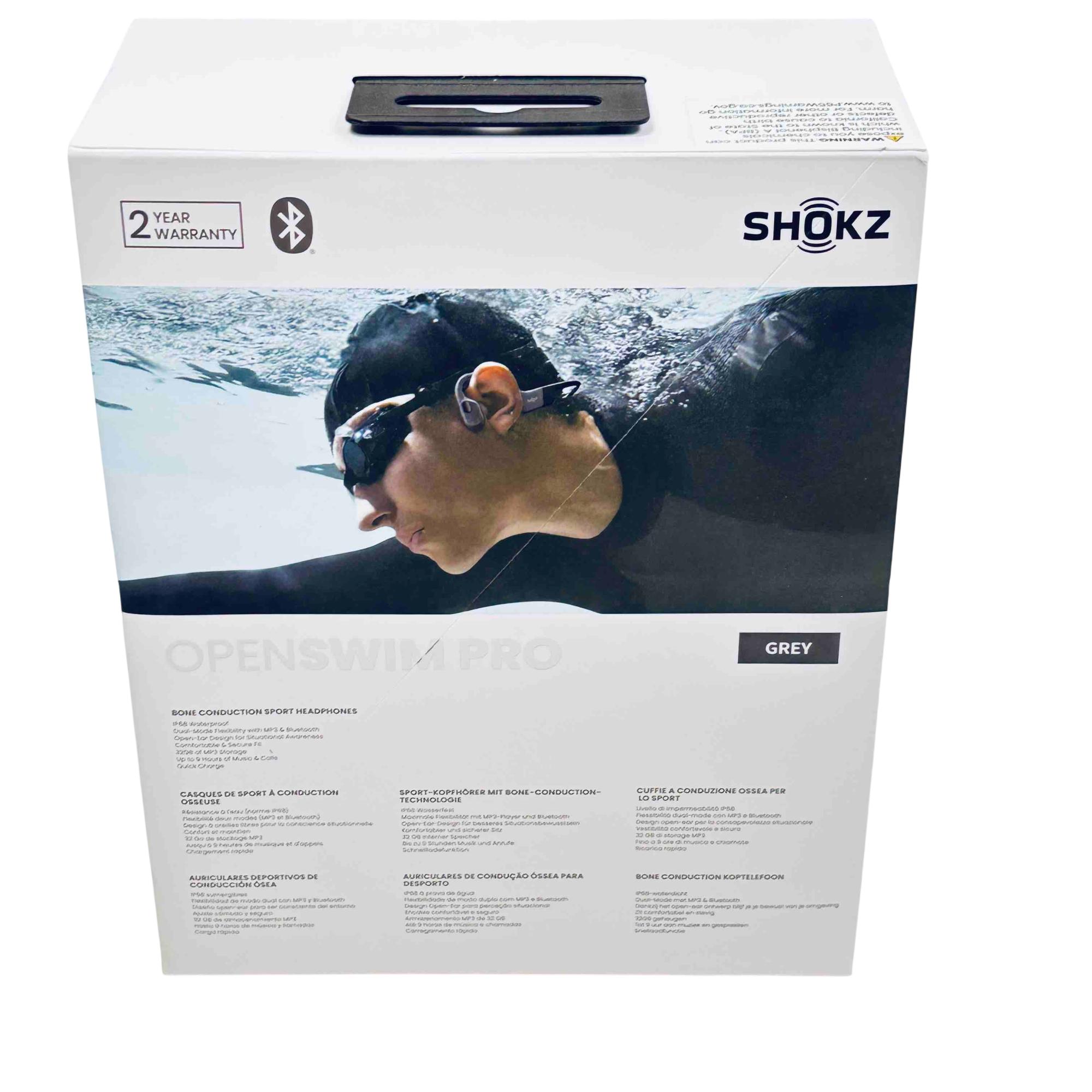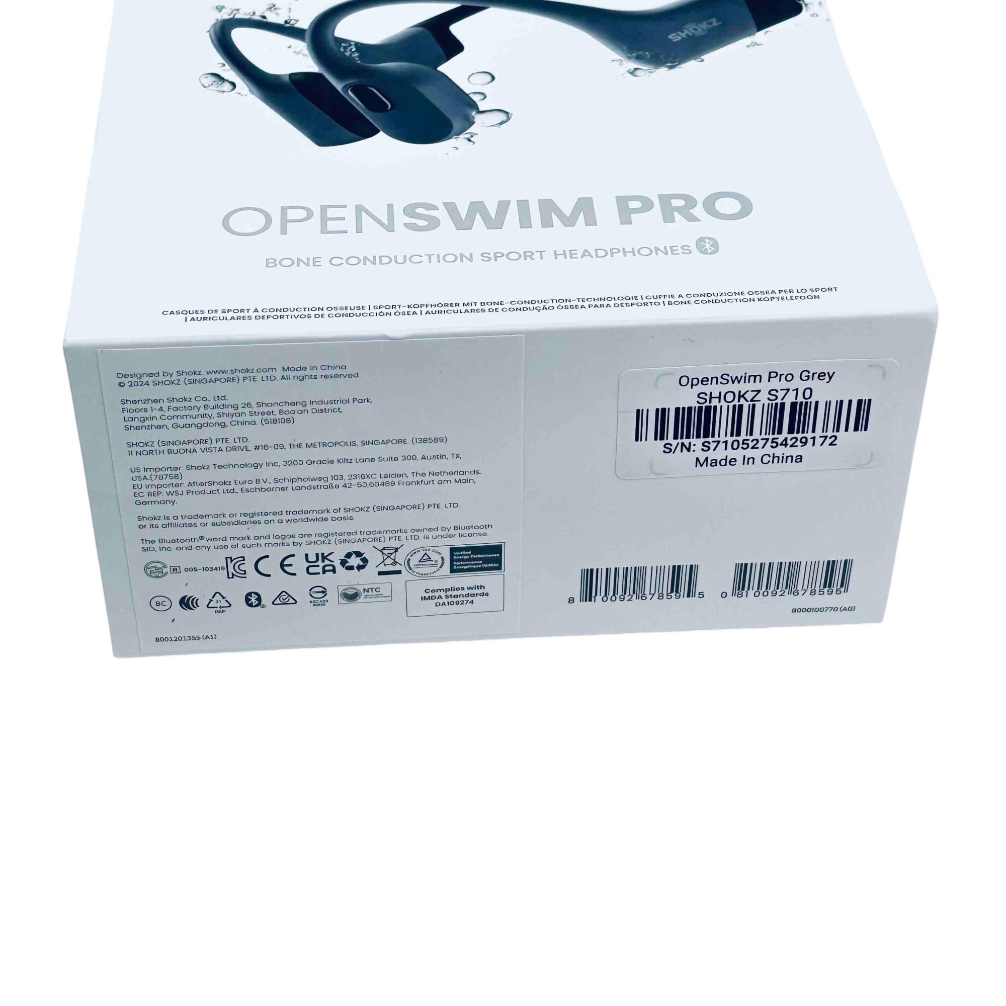 Experience superior underwater audio with the Shokz OpenSwim Pro, model S710, in sleek grey. Designed for athletes, these bone conduction sport headphones deliver clear sound and comfortable wear for swimming or intense workouts. Take your training to the next level with the trusted innovation of Shokz.