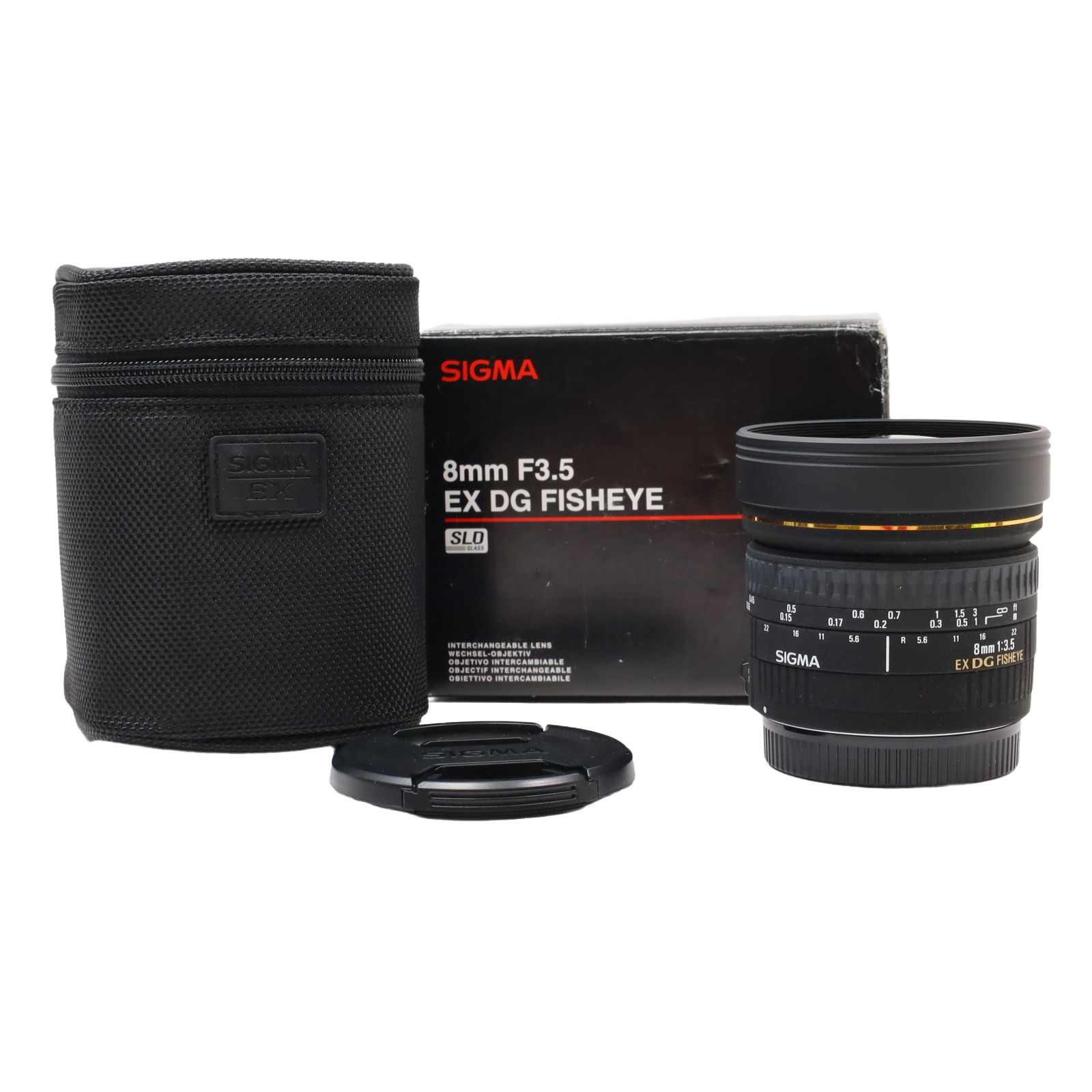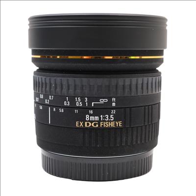 A Canon EF-mount lens designed for full-frame cameras, offering an 180° angle of view that produces circular, distorted images within a black frame. Its optical design incorporates one SLD glass element to minimize chromatic aberrations and color fringing, while a Super Multi-Layer Coating reduces flare and ghosting for enhanced contrast and color accuracy. The lens features an aperture range of f/3.5 to f/22 and a 6-blade diaphragm, providing control over depth of field and bokeh. With a minimum focusing distance of 5.3 inches and a 1:4.6 magnification ratio, it supports close-up photography. Compatible with APS-C cameras, it offers an equivalent focal length of 12.8mm, maintaining its creative fisheye effect.