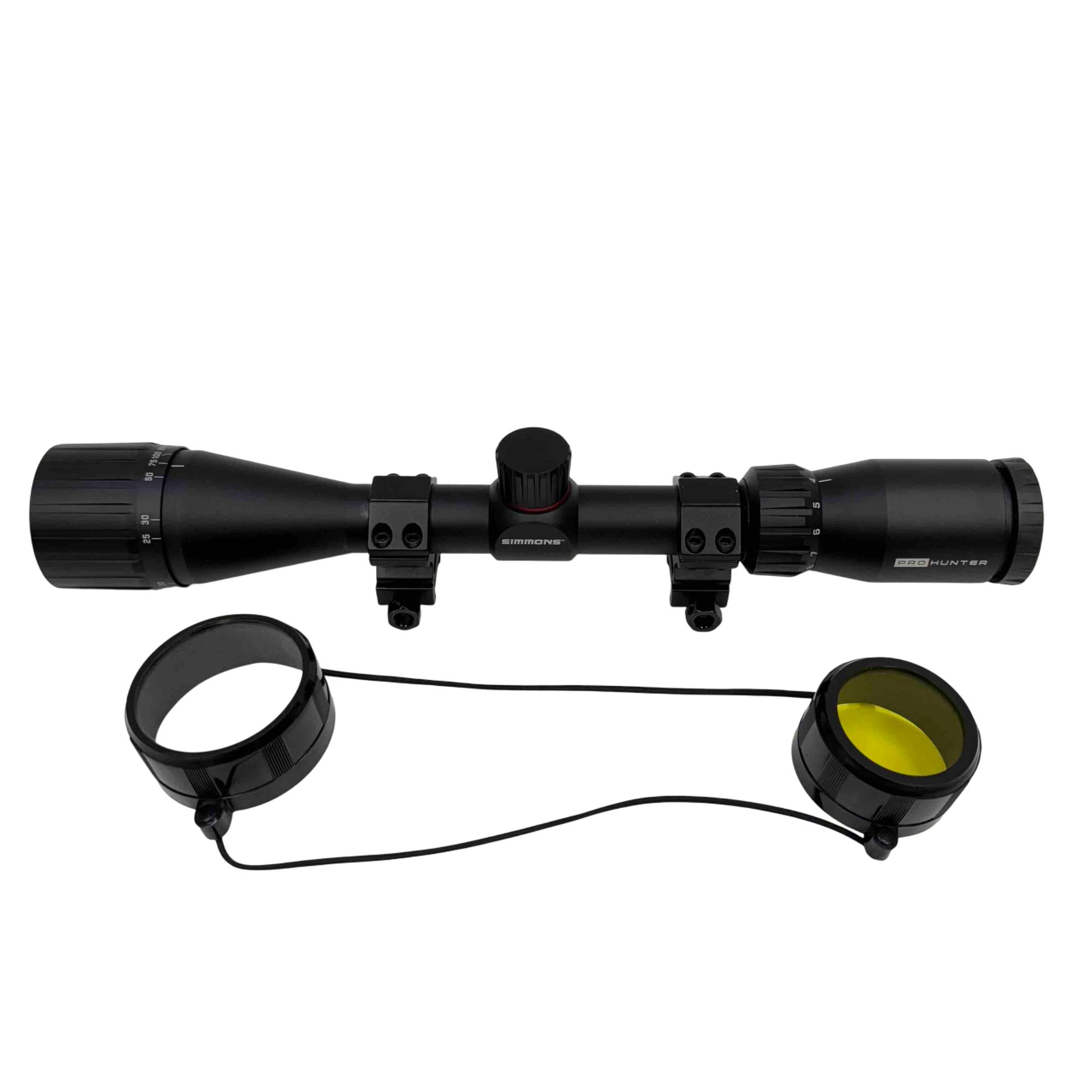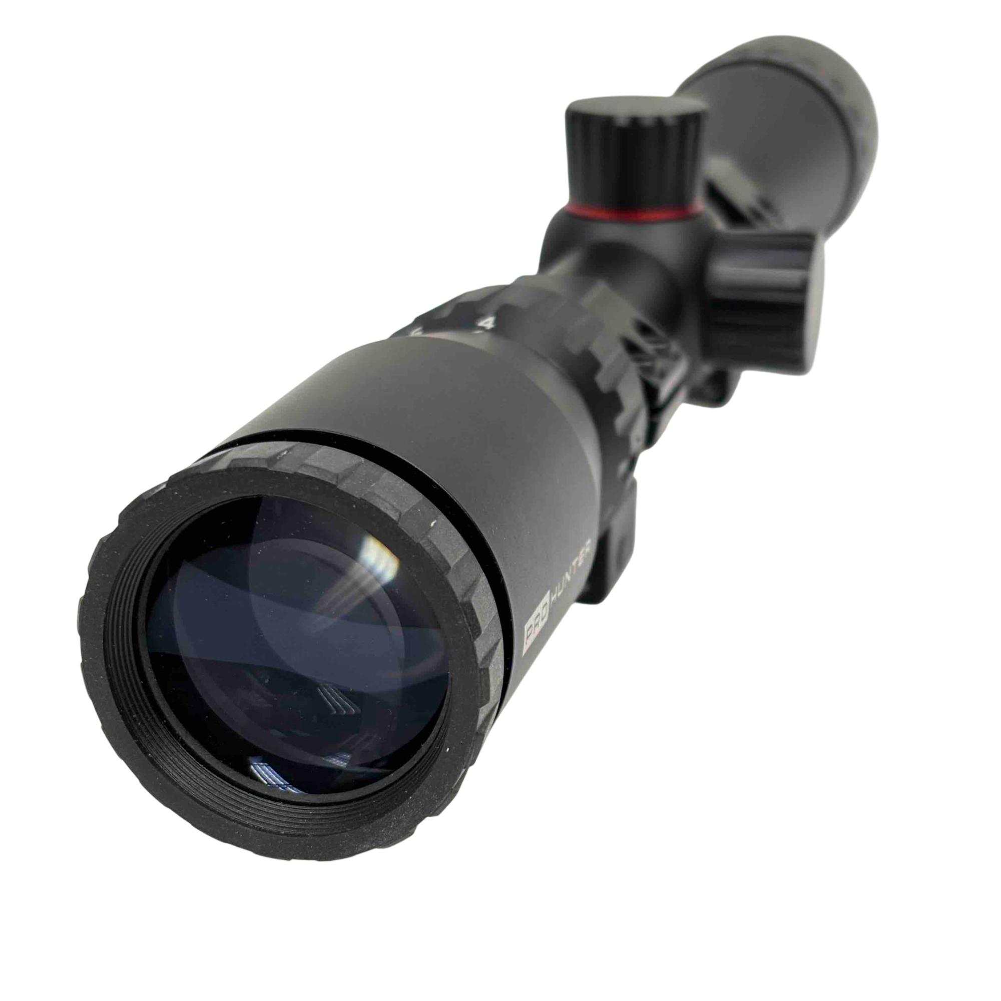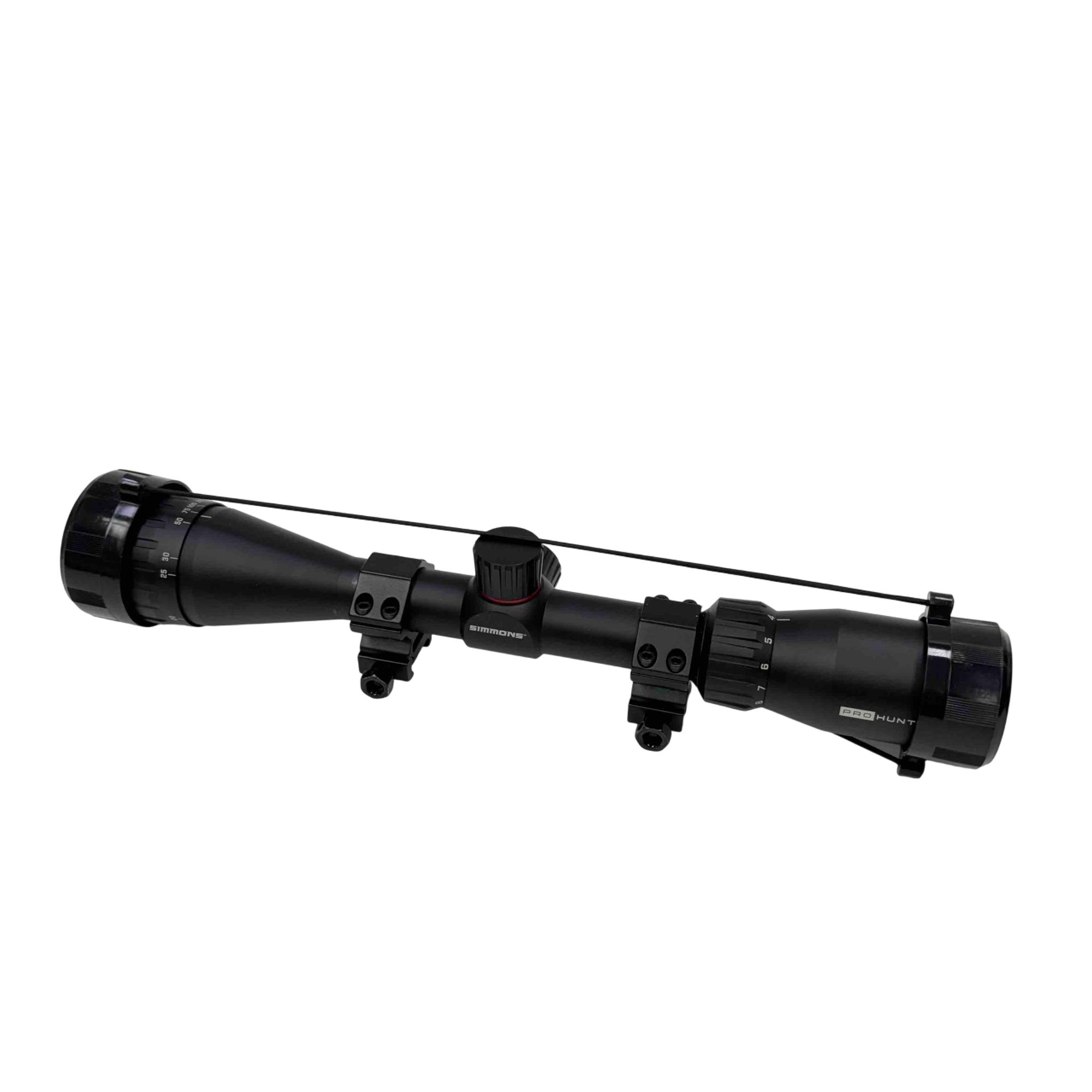 Enhance your shooting accuracy with the Simmons Prohunter 4-12x40 Riflescope, featuring a crystal-clear blue lens and precision red knob for easy adjustments. This optical instrument offers superior range and clarity, making it the perfect choice for hunting enthusiasts seeking both performance and reliability.