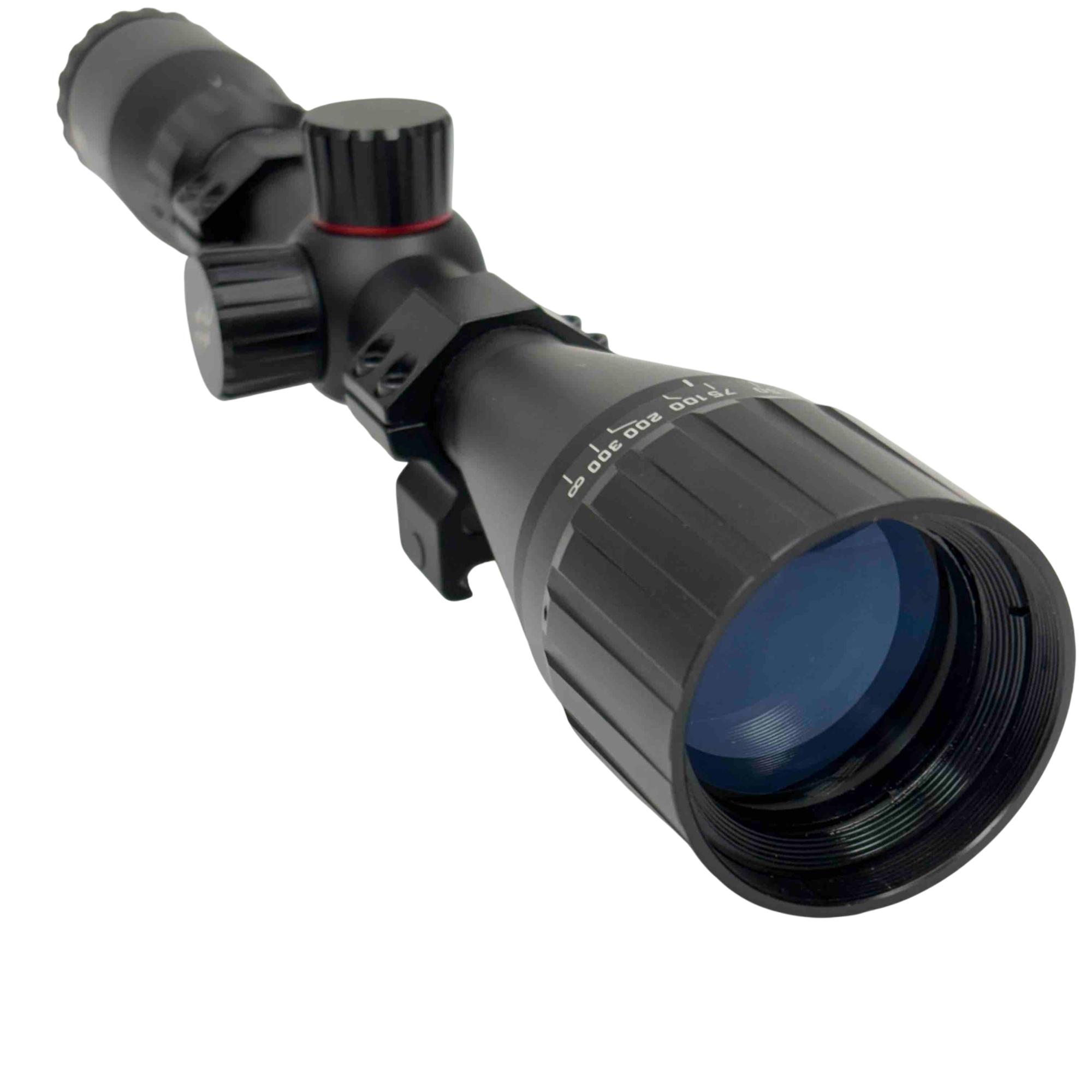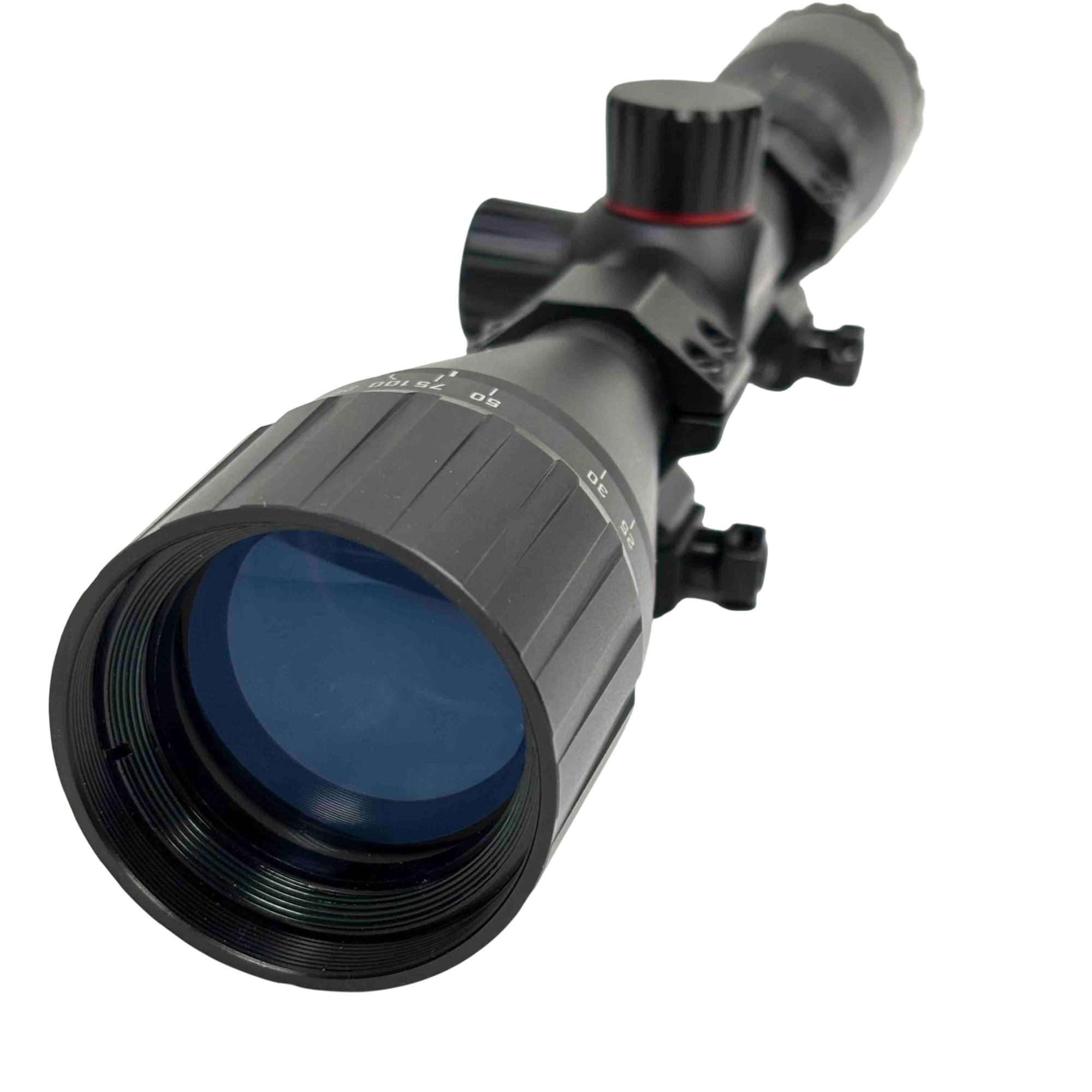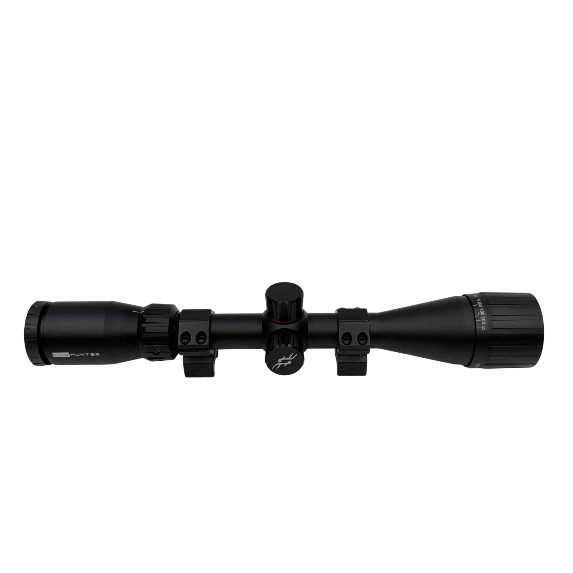 Enhance your shooting accuracy with the Simmons Prohunter 4-12x40 Riflescope, featuring a crystal-clear blue lens and precision red knob for easy adjustments. This optical instrument offers superior range and clarity, making it the perfect choice for hunting enthusiasts seeking both performance and reliability.