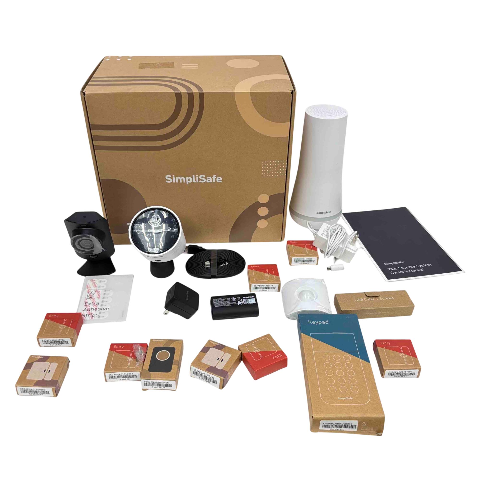 Protect your home with this SimpliSafe Gen 3 Home Security System Kit, featuring a sleek wireless base station, keypad, entry sensors, motion detector, HD security camera, and essential accessories for easy installation. Enjoy award-winning, customizable security with rapid setup, smart device integration, and professional-grade reliability to keep your property safe. Perfect for anyone seeking a trusted, expandable solution with hassle-free monitoring and straightforward controls.