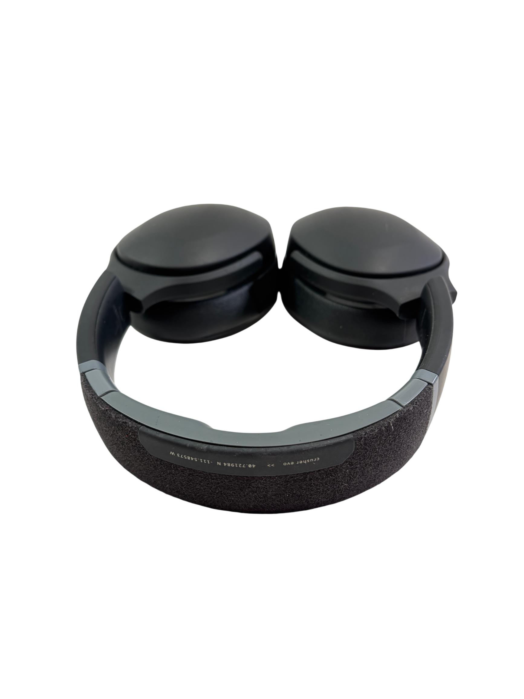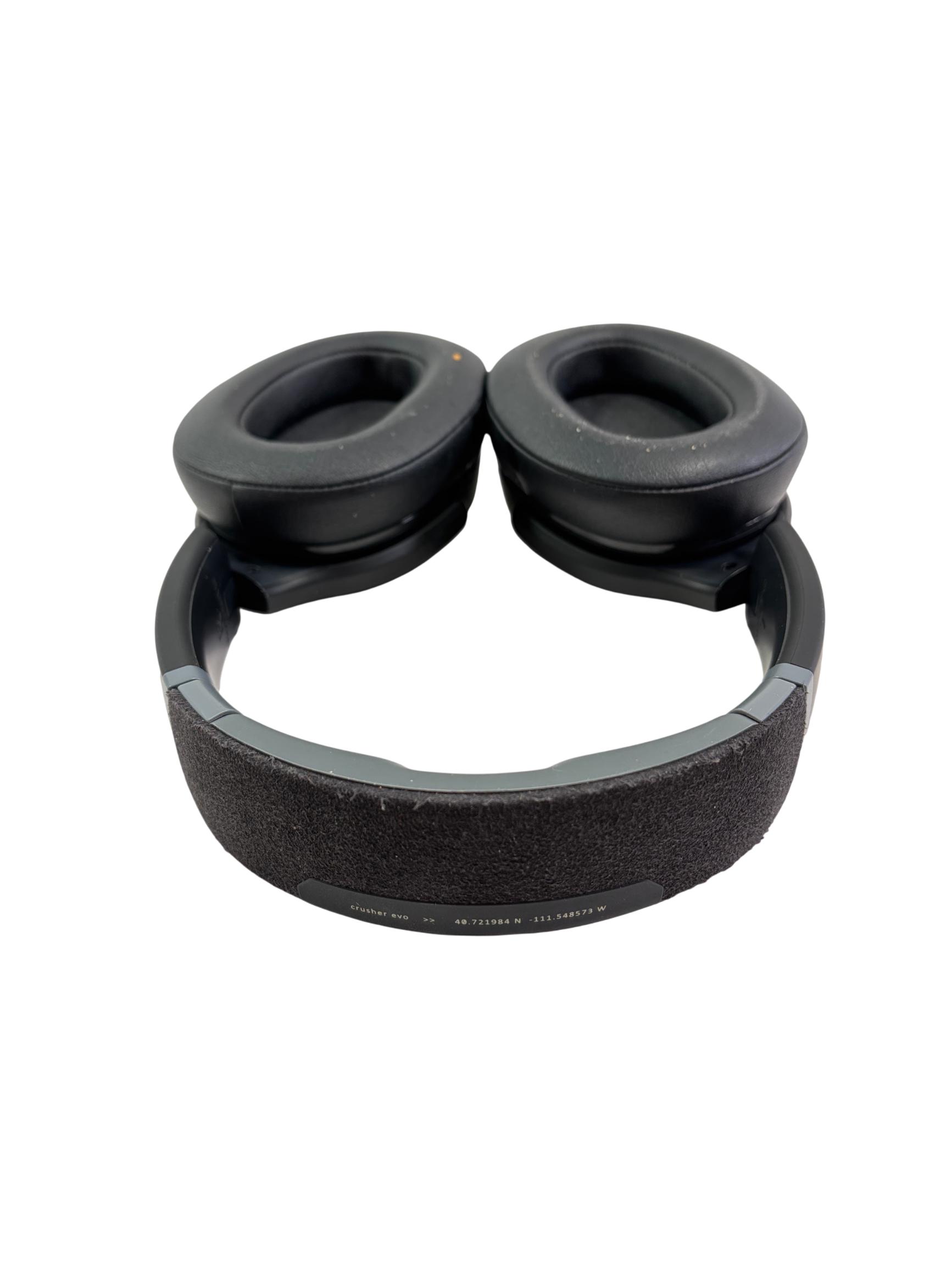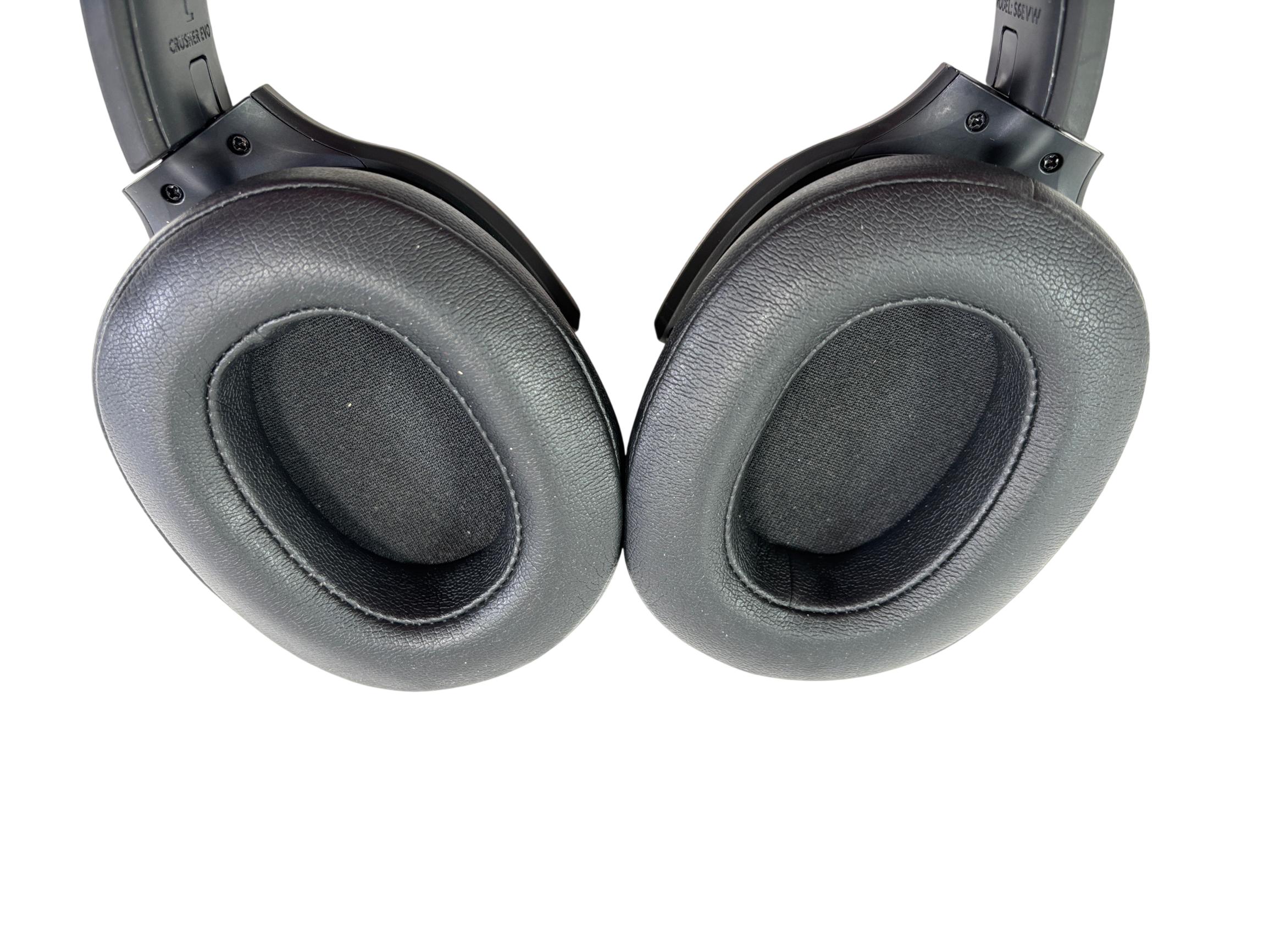 Skullcandy Crusher Evo S6EVW Wireless Over-Ear Headphones feature a sleek black design with plush ear cushions for comfortable extended wear. These headphones deliver powerful sensory bass and custom-tuned drivers, providing immersive high-fidelity sound. Designed with intuitive controls and durable materials, they offer a premium listening experience for both casual and audiophile users.