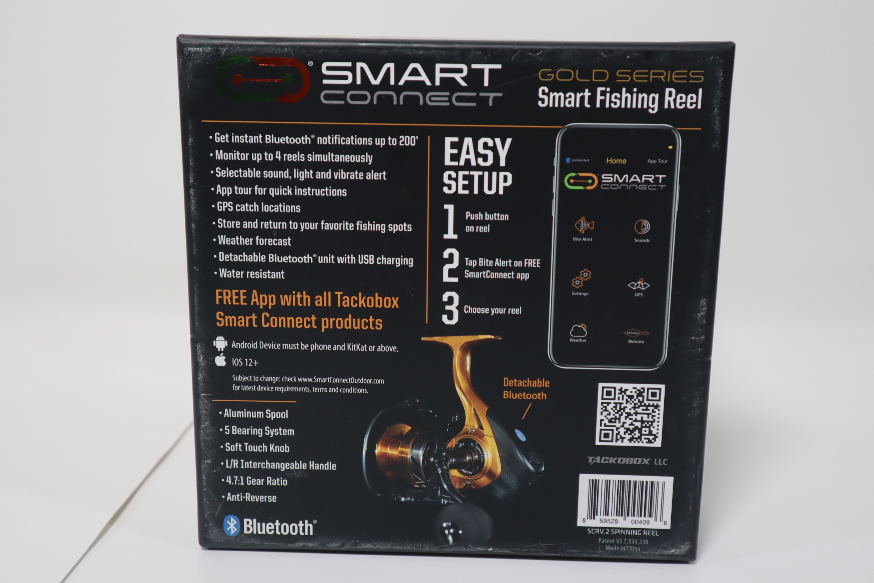 1-way clutch instant anti-reverse bearing 4+1 BB Gear ratio 4.7:1 CNC machine cut collapsible handle, Left / right interchangeable. Aluminum spool Large Rugged 6000 Series Size Streamlined composite designed body Easy connection to IOS and Android phones - Free downloadable app Monitor up to 4 reels simultaneously Perfect tool for Recreational fishing Rechargeable USB Quick Disconnect for Charging Rechargeable battery 3.7V ~4.2V (utlizes mini-USB connector) 40 Hour Operation Full Charge New Packaging Design Experience for Easy Recognition of Bluetooth Technology and FREE APP IOS and Android New website experience with software updates, product information Water resistant electronics Local Weather via Smart Connect App Display Text Notifications Easy Setup with Free app downloadable from Apple App Store or the Google Play Store.