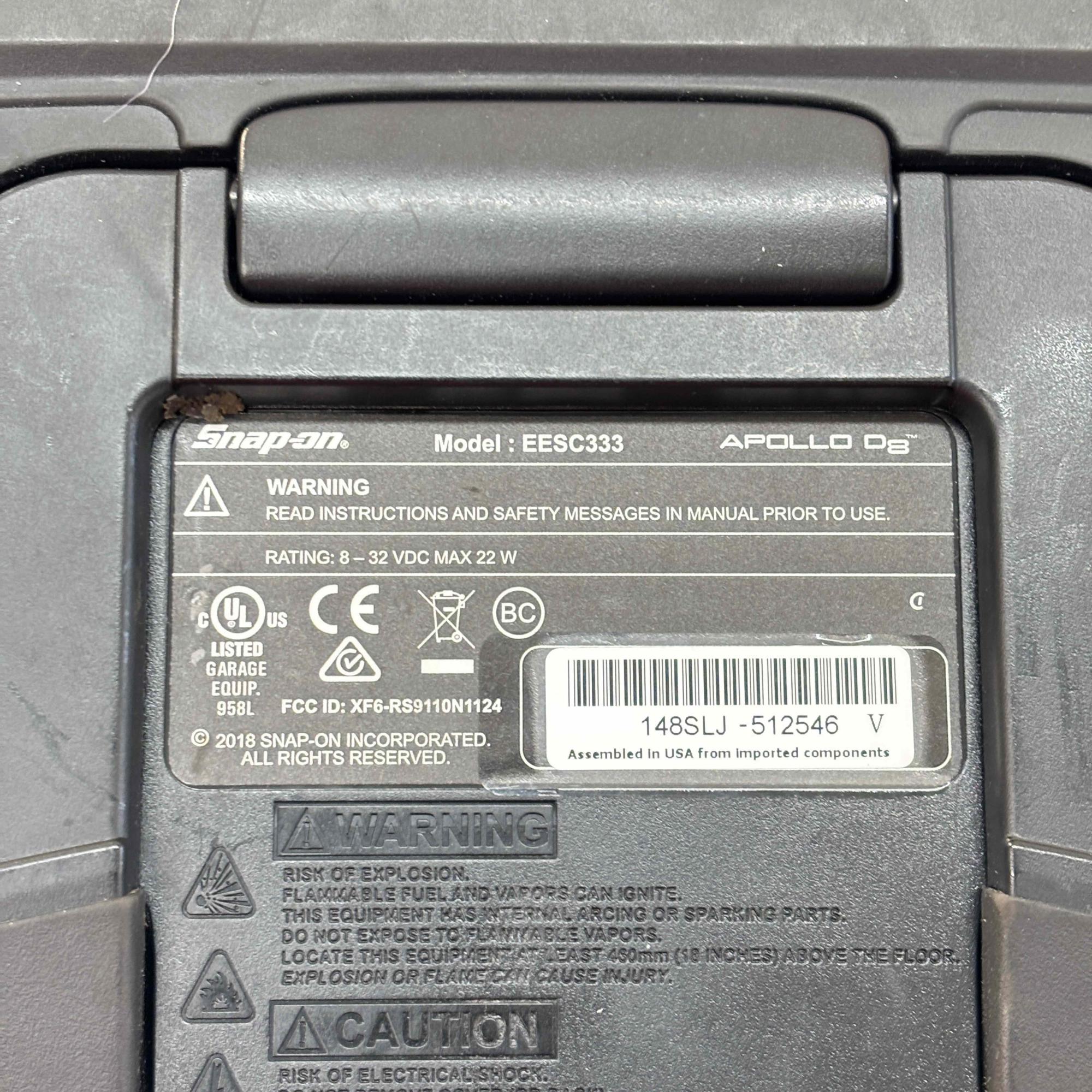 Snap-on APOLLO D8 Diagnostic Scan Tool EESC333 is a professional-grade diagnostic scanner designed for comprehensive vehicle diagnostics across multiple systems. It features a high-resolution display and supports a wide voltage range from 10 to 30 volts, providing accurate live data and fault code reading for efficient troubleshooting. This compact device is engineered to deliver reliable performance for automotive technicians and enthusiasts alike.