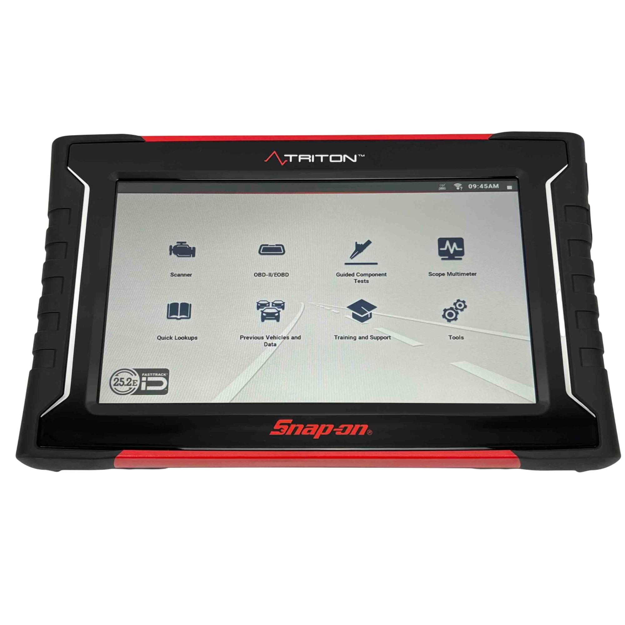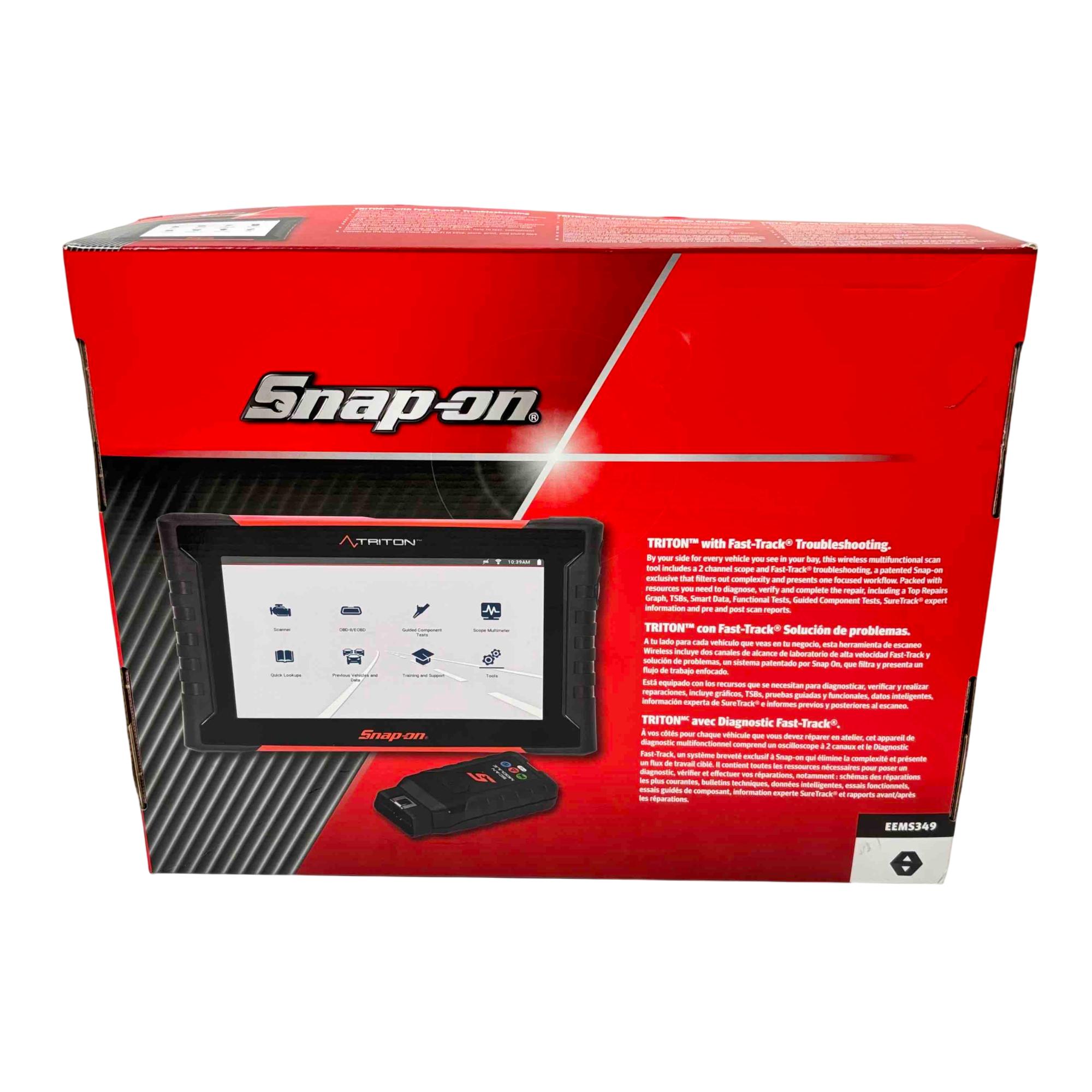 Snap-on Triton Diagnostic Scanner EEMS349A is a professional-grade automotive diagnostic tool featuring OBD-II/EOBD compatibility and a guided component testing system. It offers quick lookups, scope multimeter functions, and previous vehicle data access through a sharp touchscreen interface, making it ideal for efficient vehicle diagnostics and repairs.