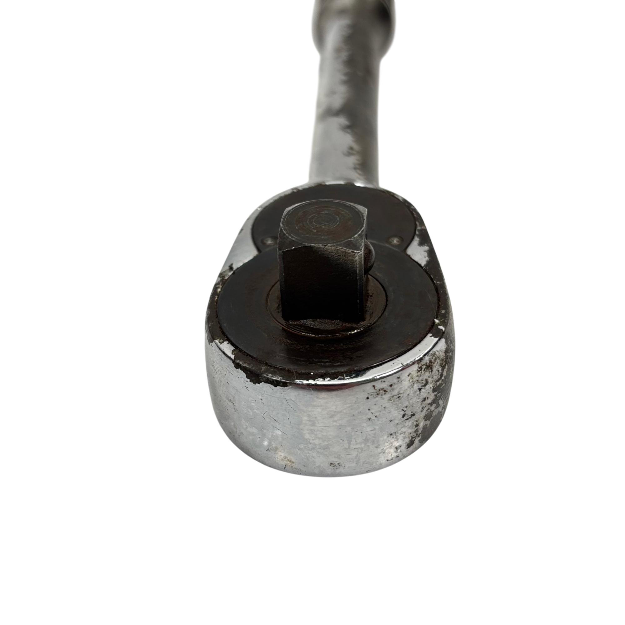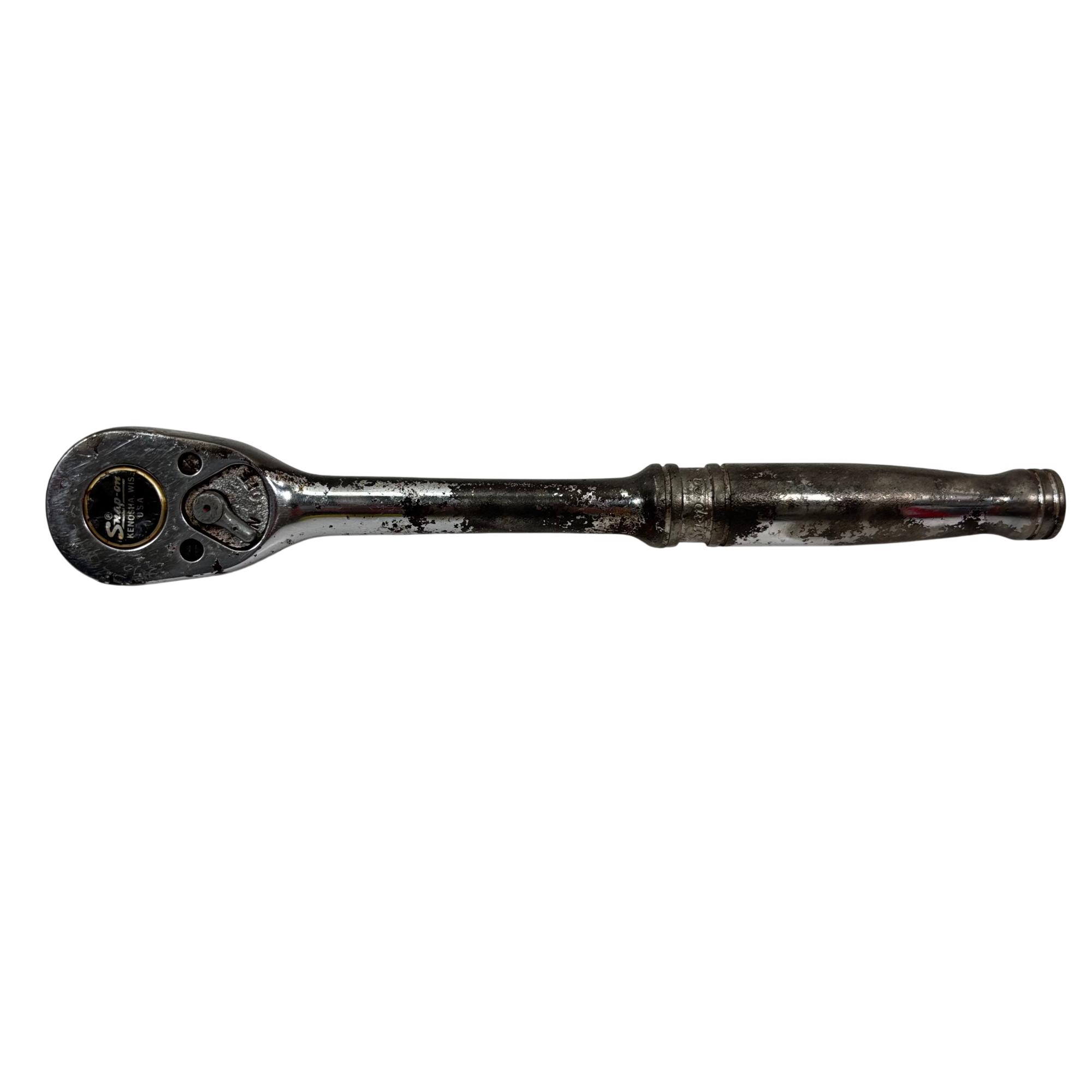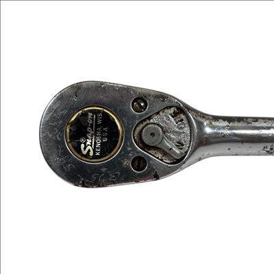 Snap-on SL710 1/2" Drive Ratchet features a durable chrome finish and a 10-inch long handle designed for industrial use. This ratchet is built for precision and heavy-duty applications, providing smooth, reliable operation with its 80-tooth mechanism. Its robust construction and ergonomic design make it an essential tool for professional mechanics and technicians.